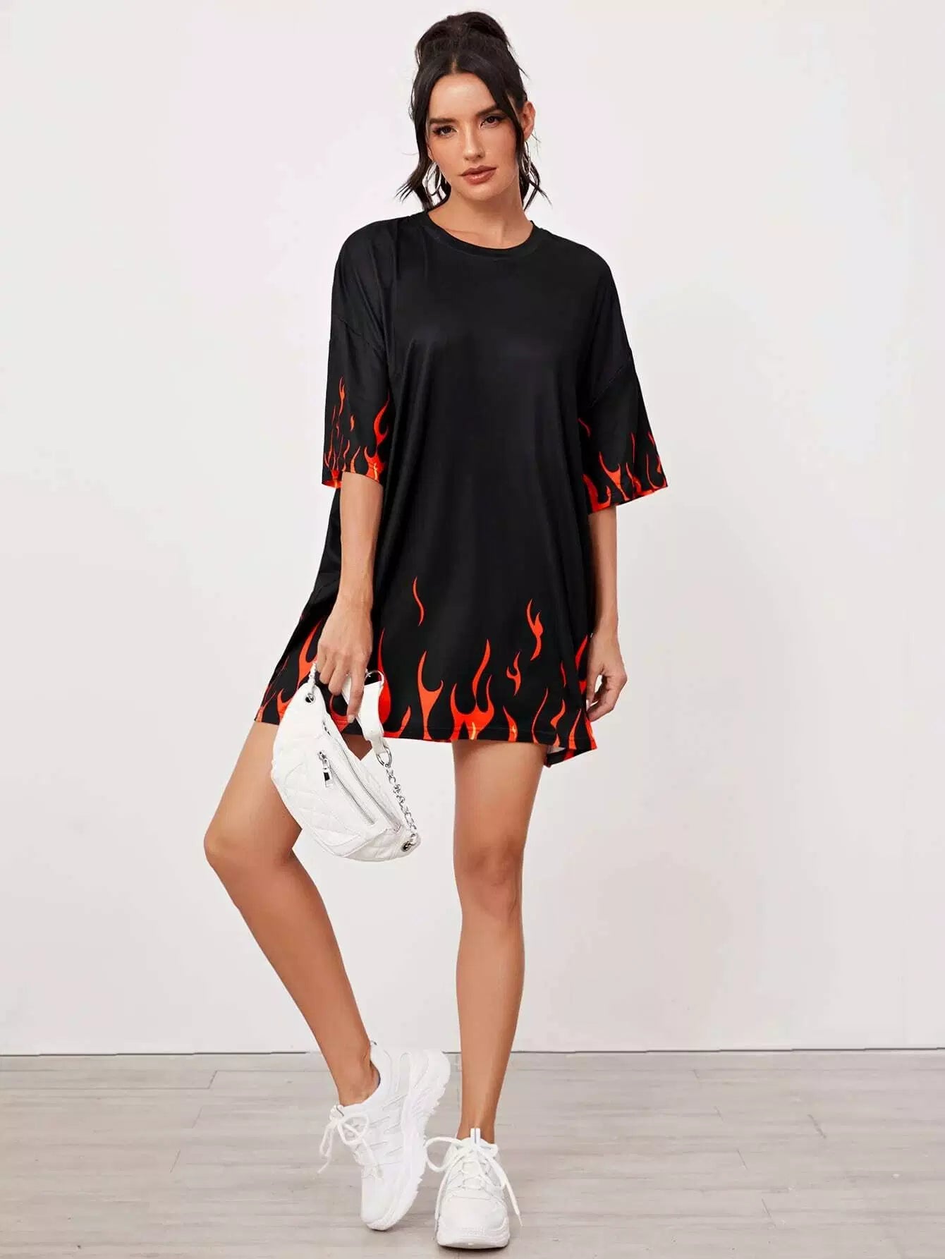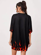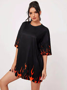 تي شيرت منسدل الكتفين مطبوع عليه طبعات النار