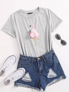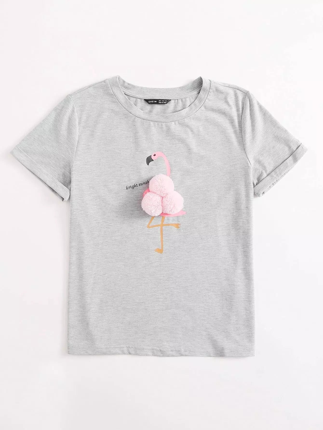 تي شيرت جرافيكي بطبعة طائر الفلامنجو