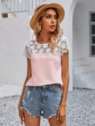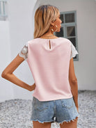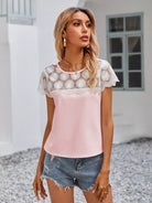 تي شيرت بلوحة شبكية مطرزة بالزهور