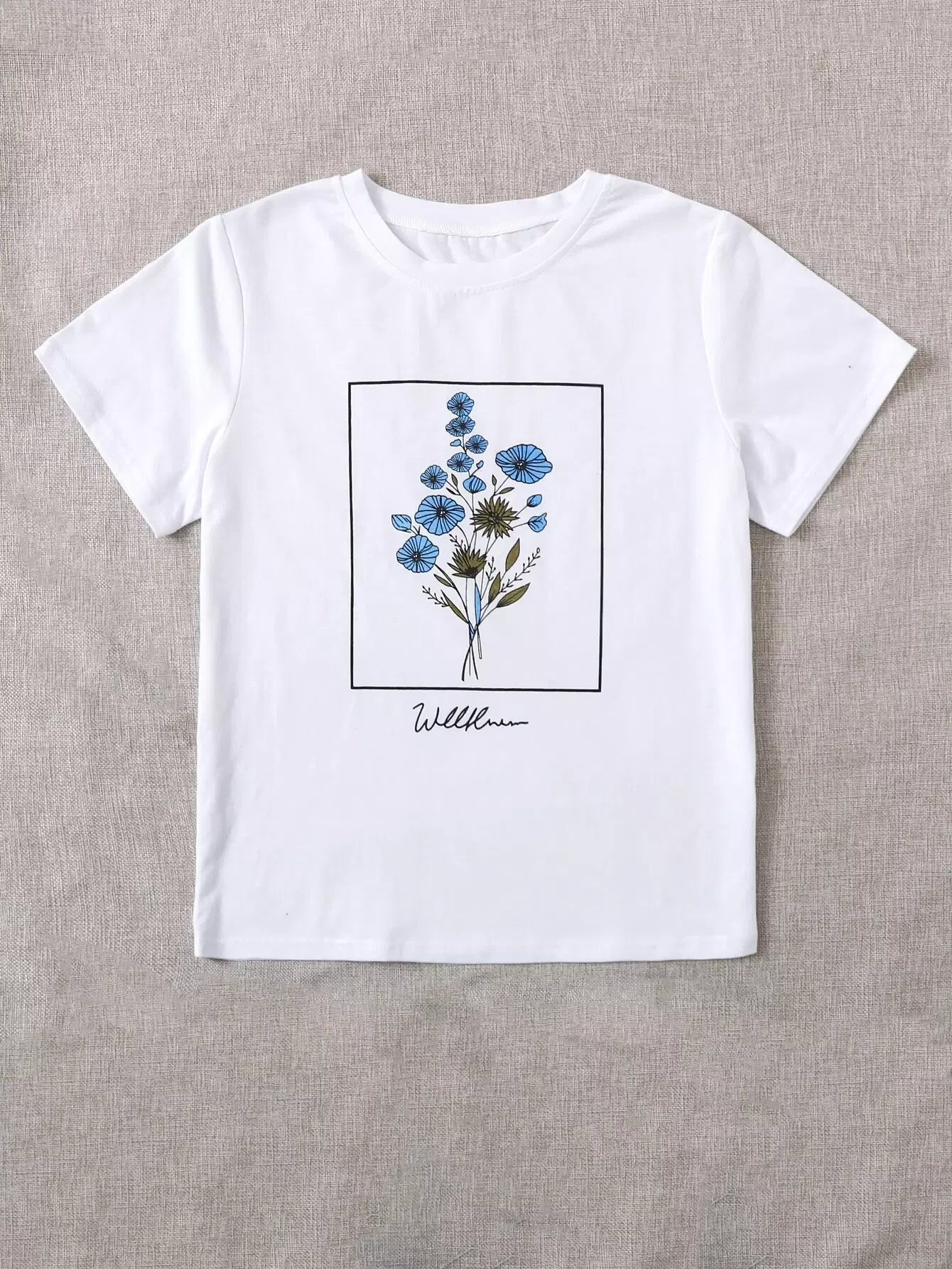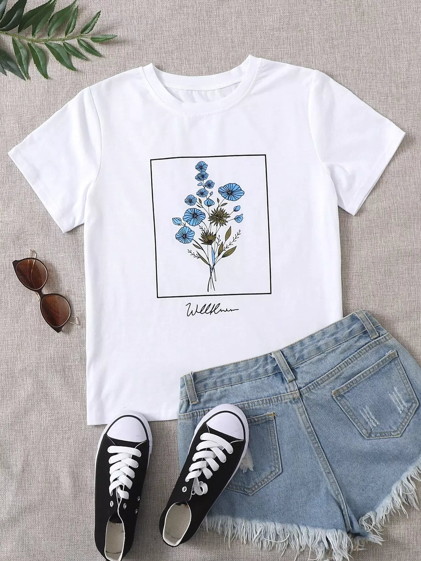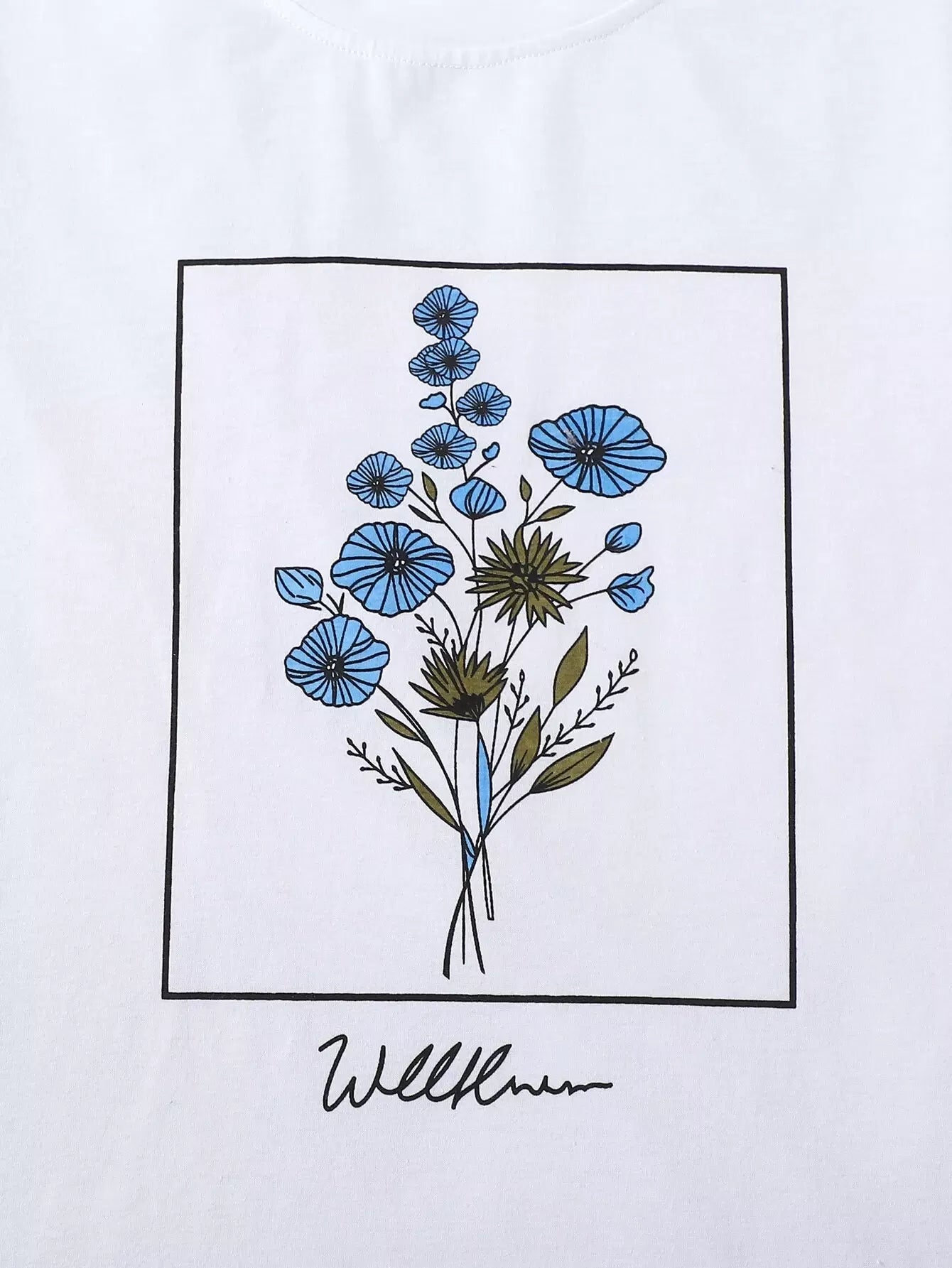 تي شيرت برسومات زهور وحروف