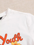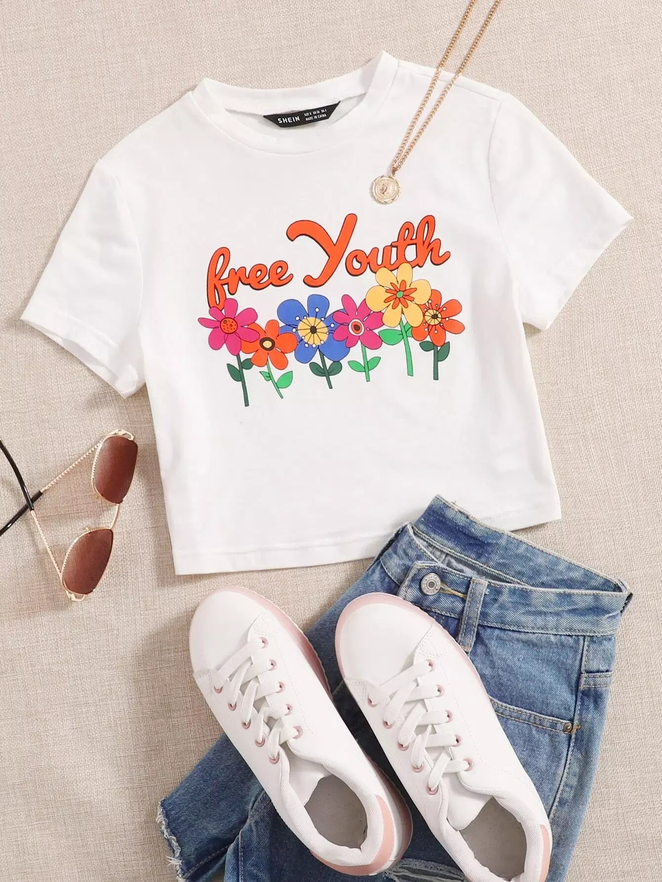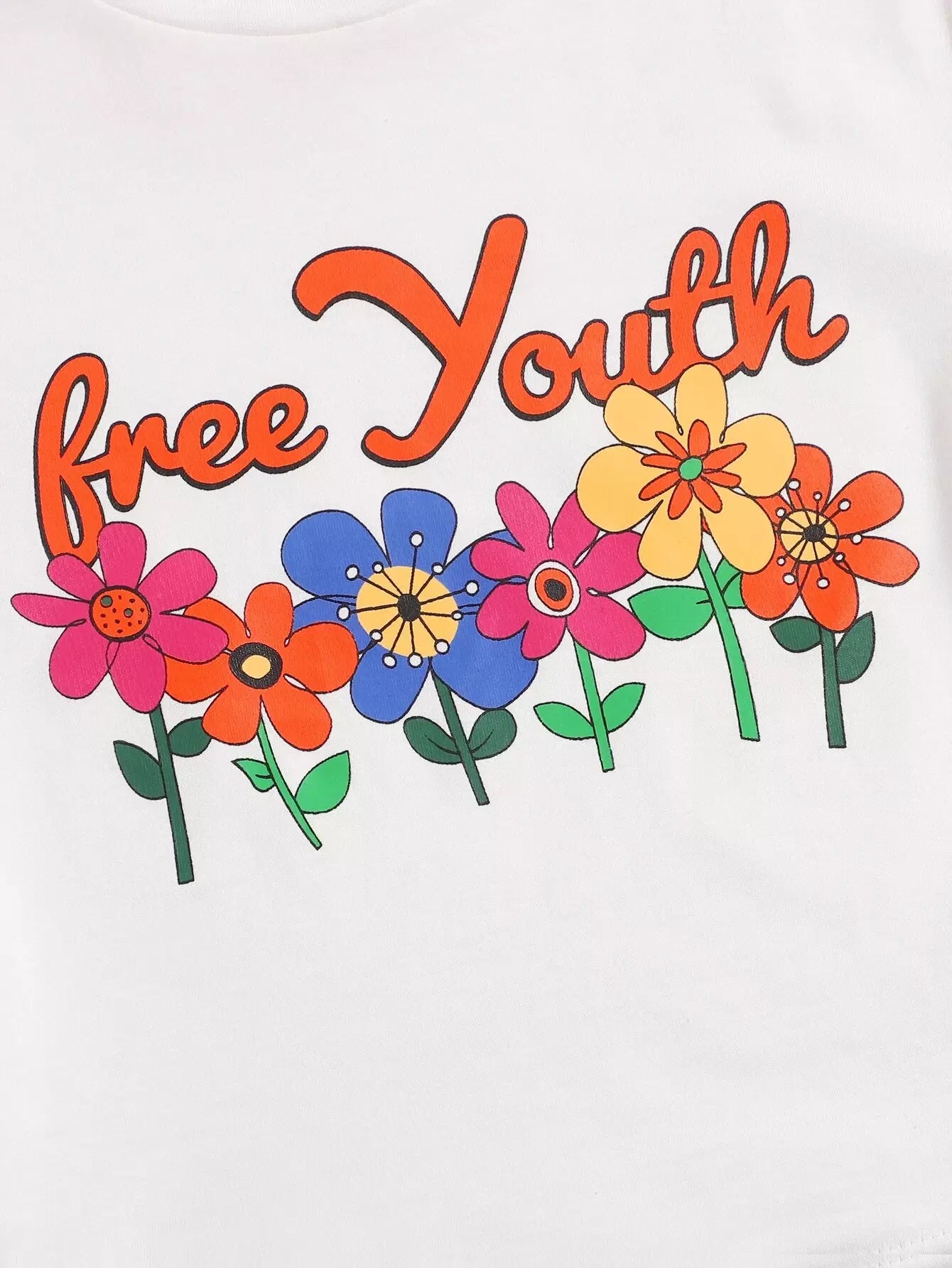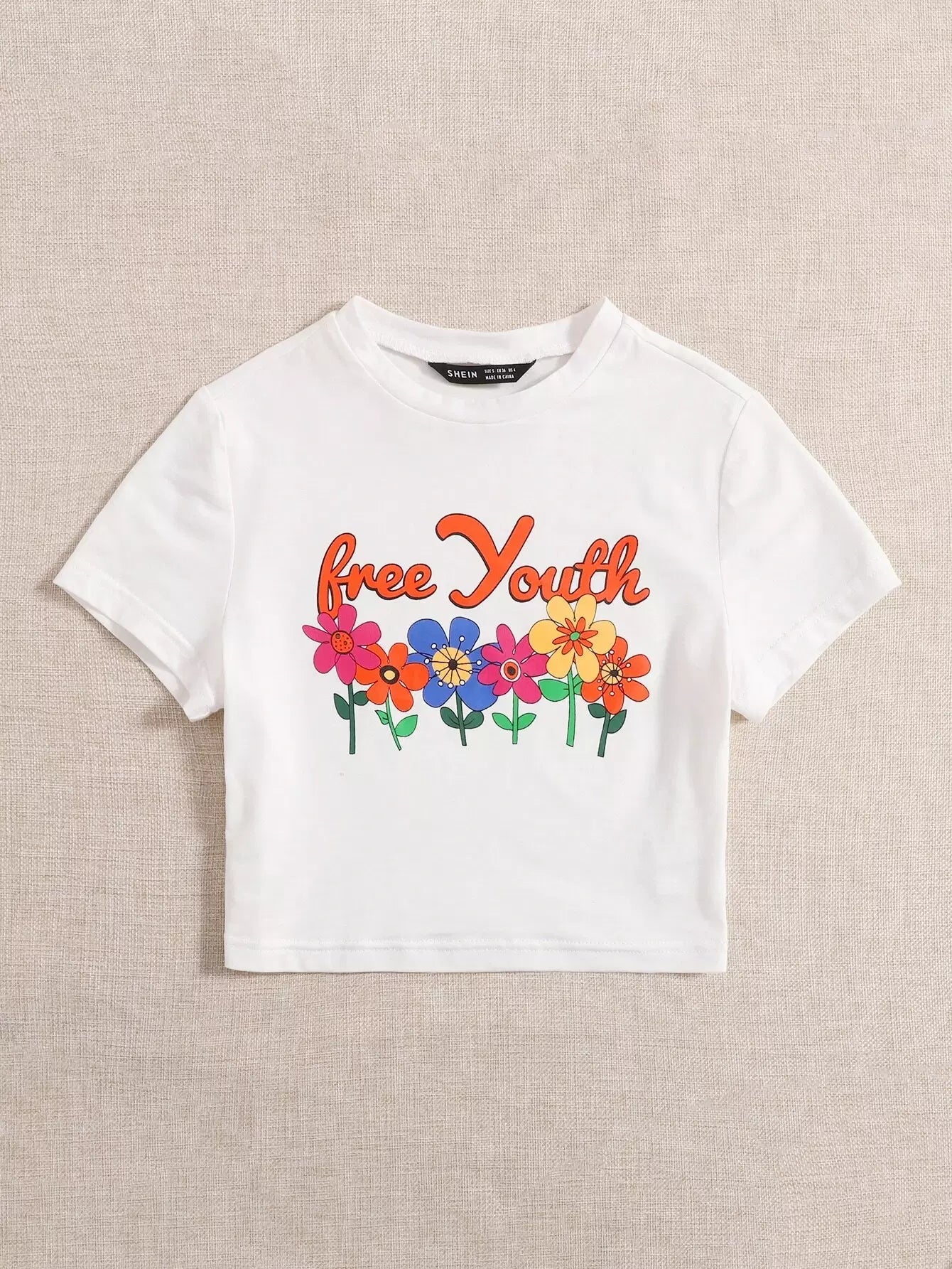 تي شيرت قصير بطبعة زهور وحروف