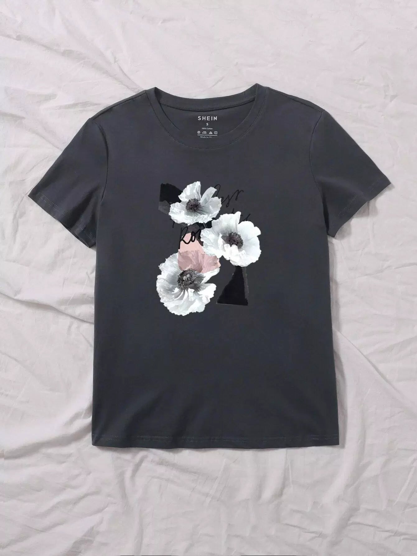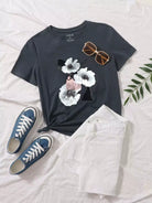 تي شيرت برقبة كرو بطبعة زهور