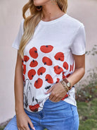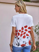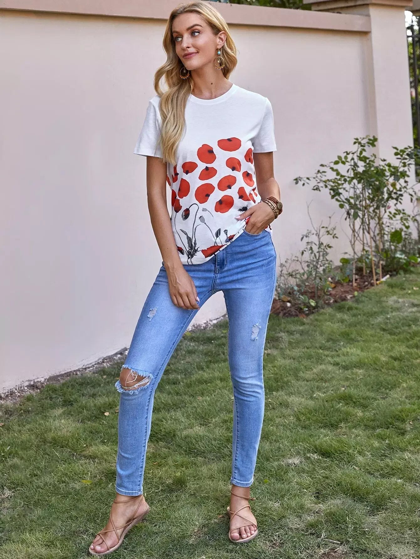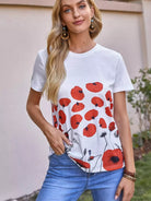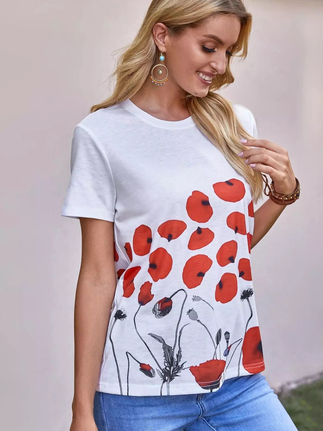 للنساء - تي شيرت برقبة دائرية وطبعة زهور