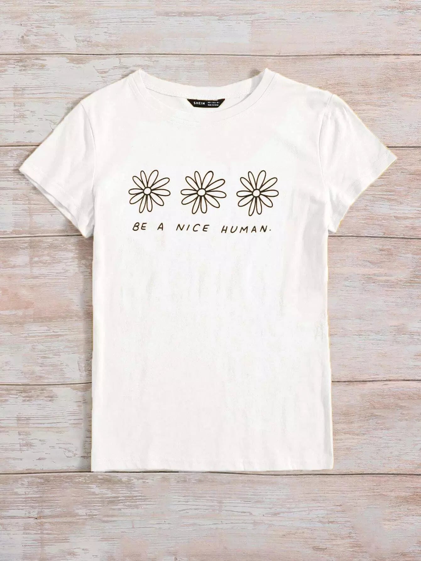 تي شيرت مزين بالزهور والشعارات الجرافيكية