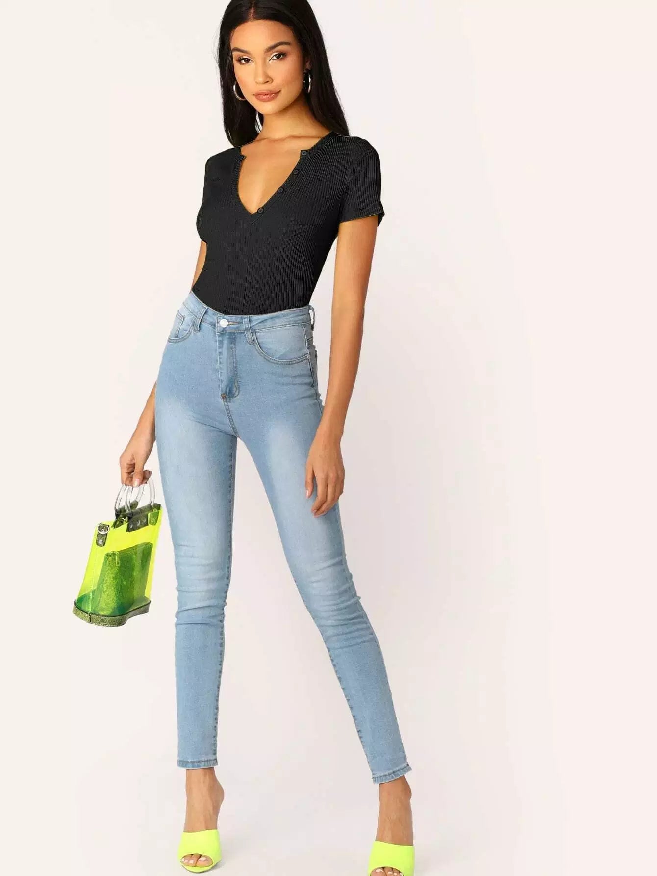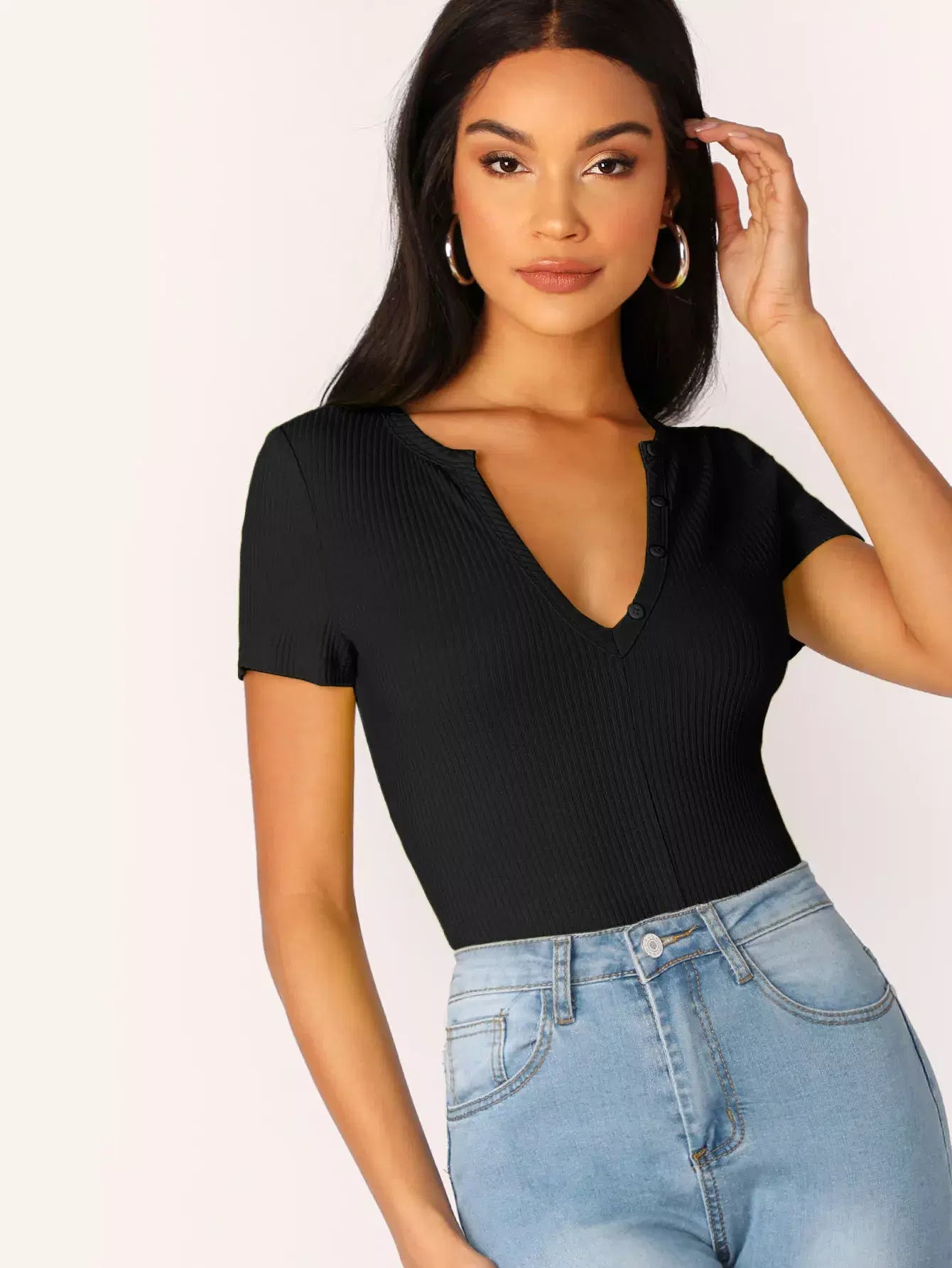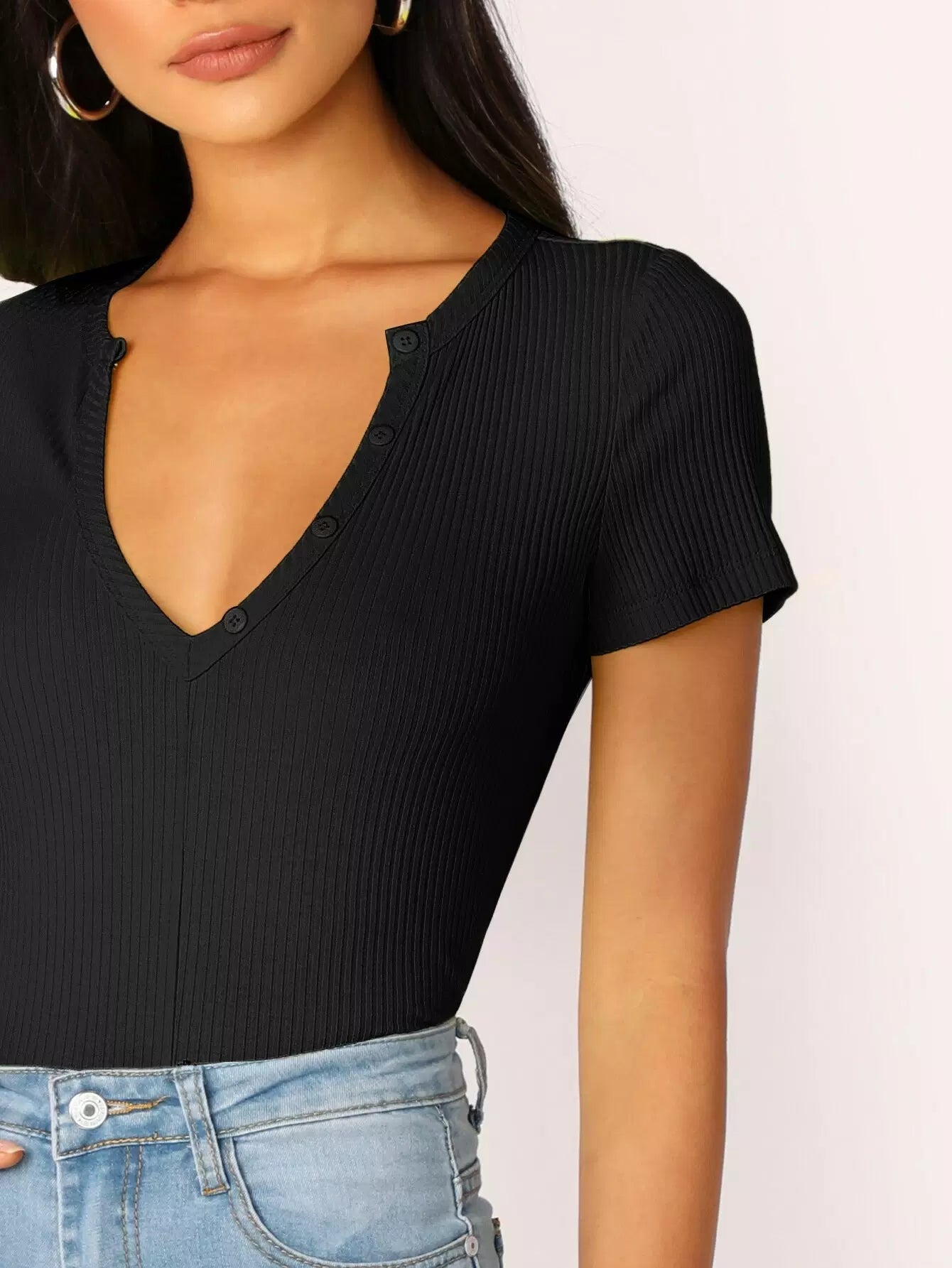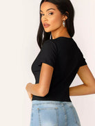 بلوزة مزينة بأزرار مضلعة ذات تصميم مضلع ومصممة على شكل ضلع