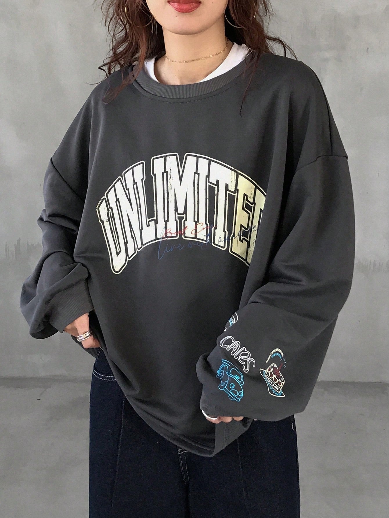 FRIFUL Women Casual Letter Print Loose Long Sleeve T-Shirt, Autumn/Winter