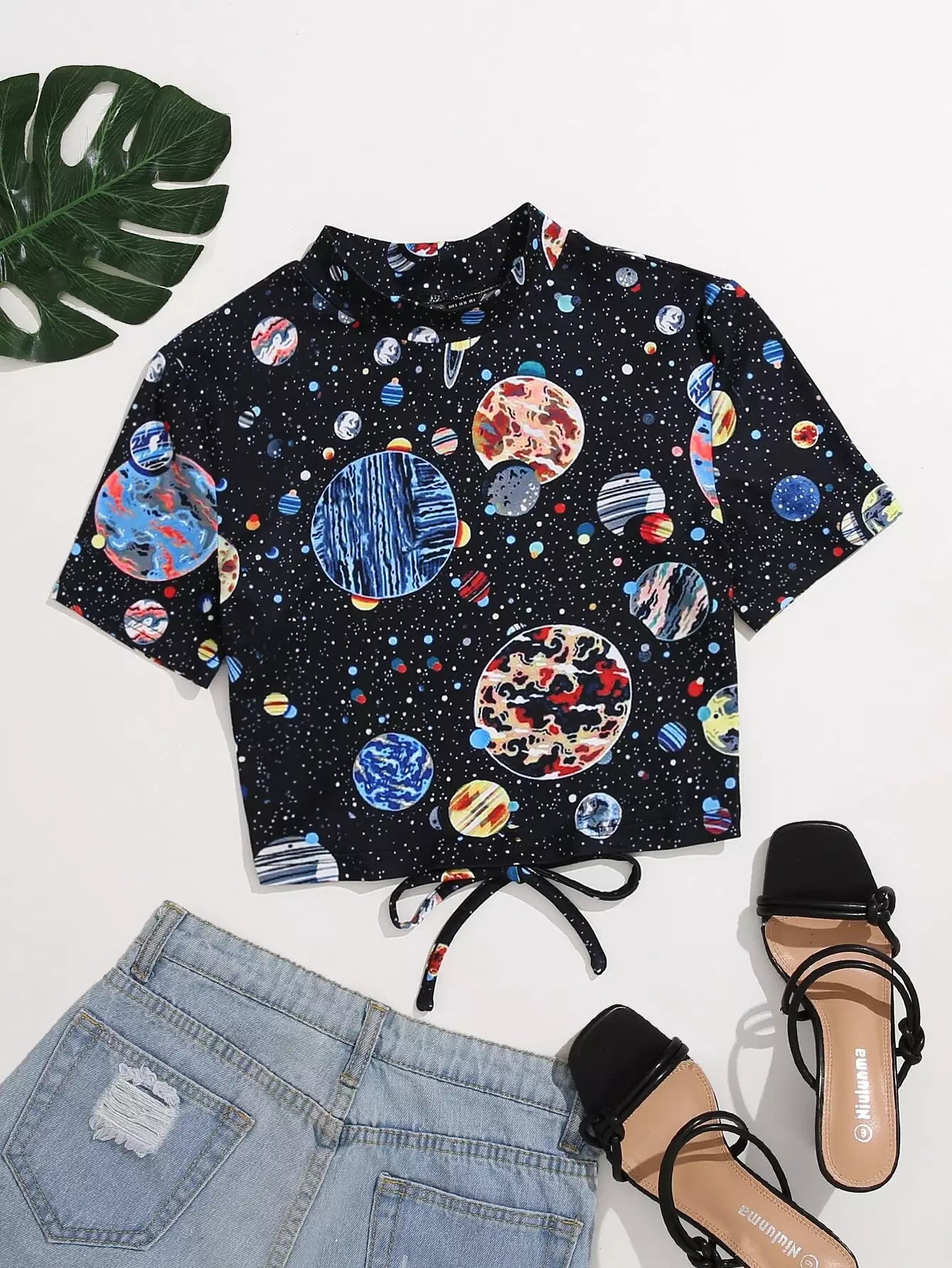 تي شيرت قصير قصير بدون أكمام بطبعة مجرة