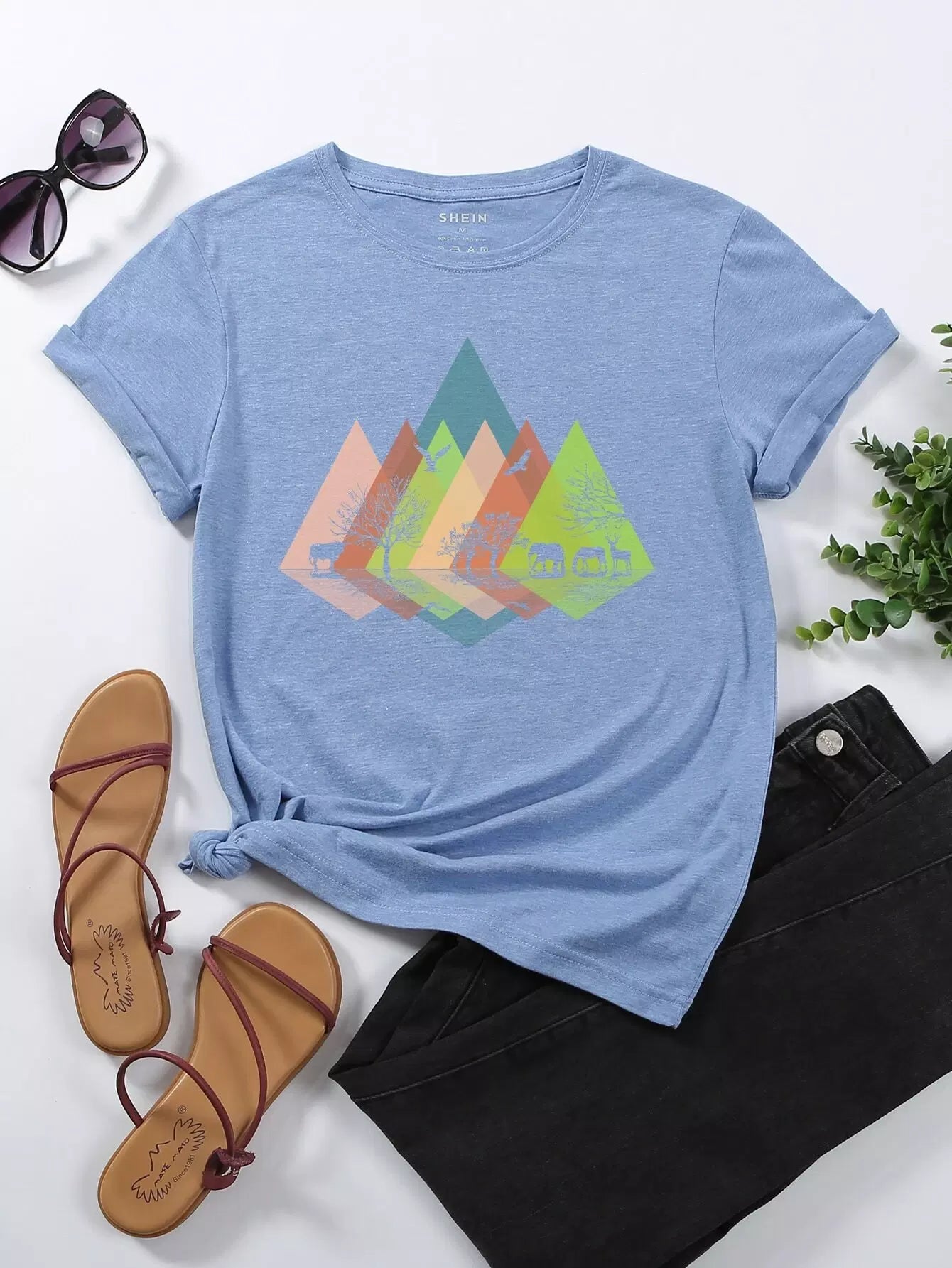 تي شيرت بطبعات هندسية وحيوانية