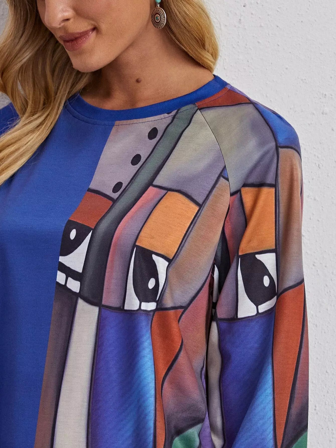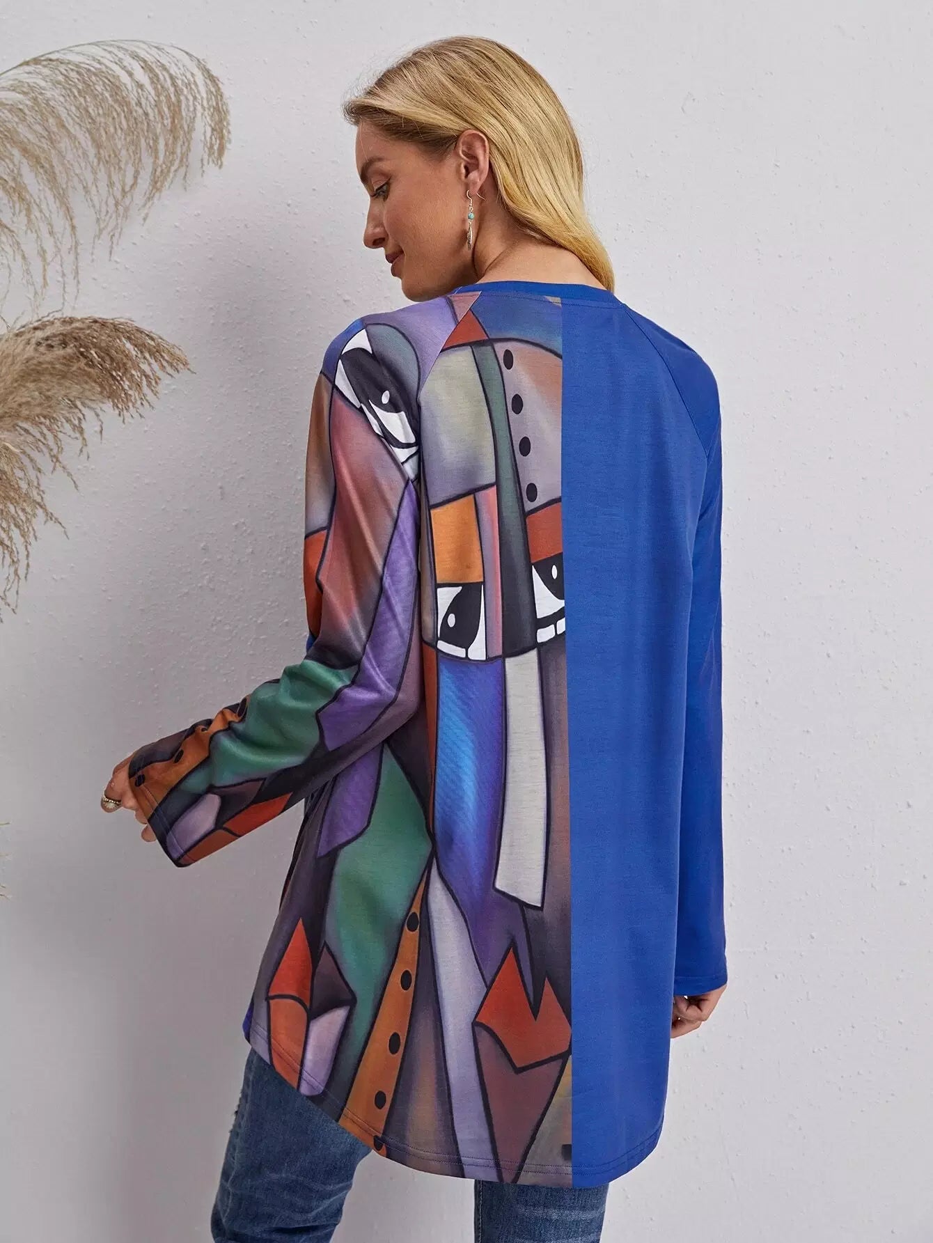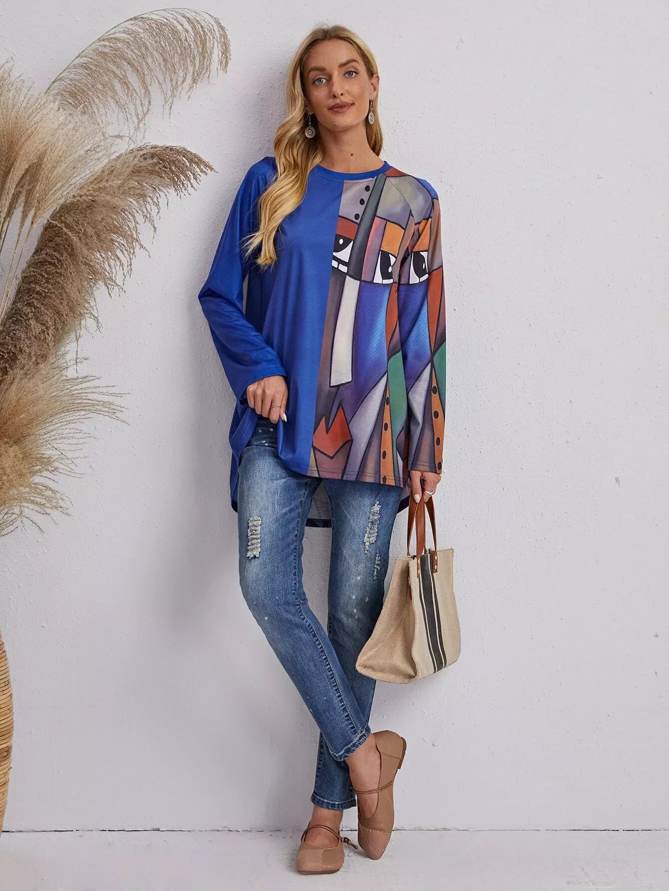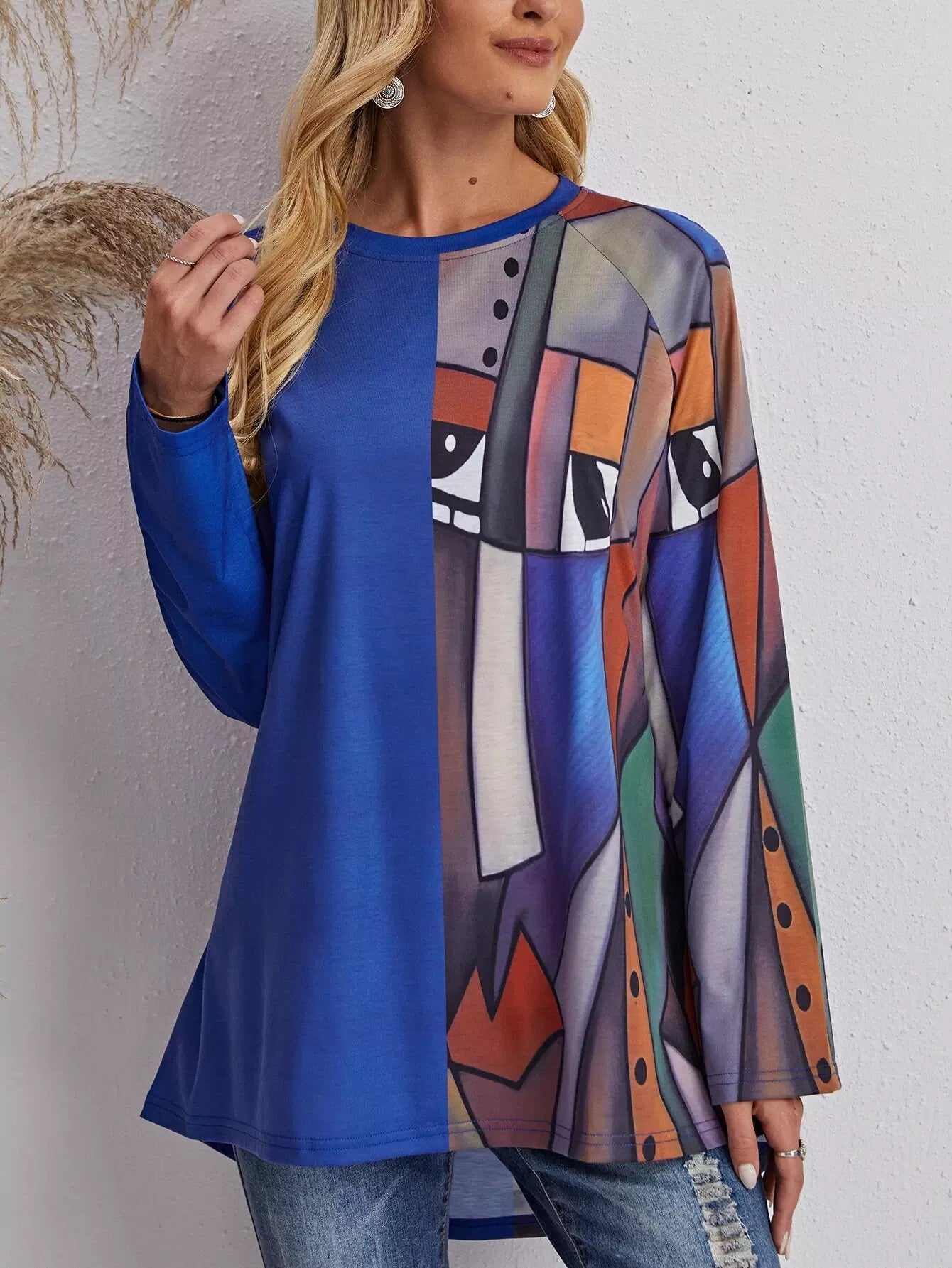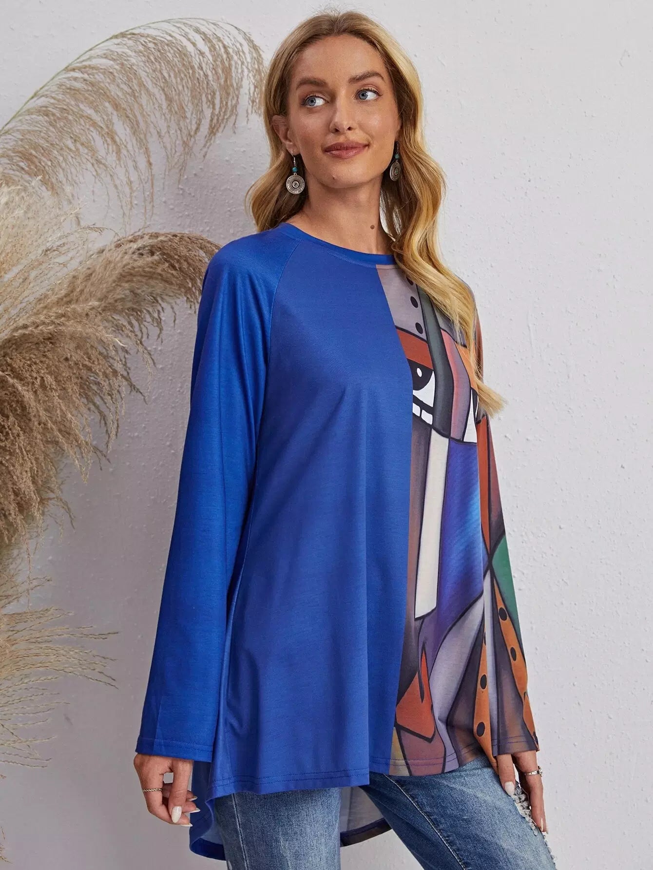 تي شيرت بأكمام راجلان بأكمام عالية منخفضة مطبوع عليها رسومات