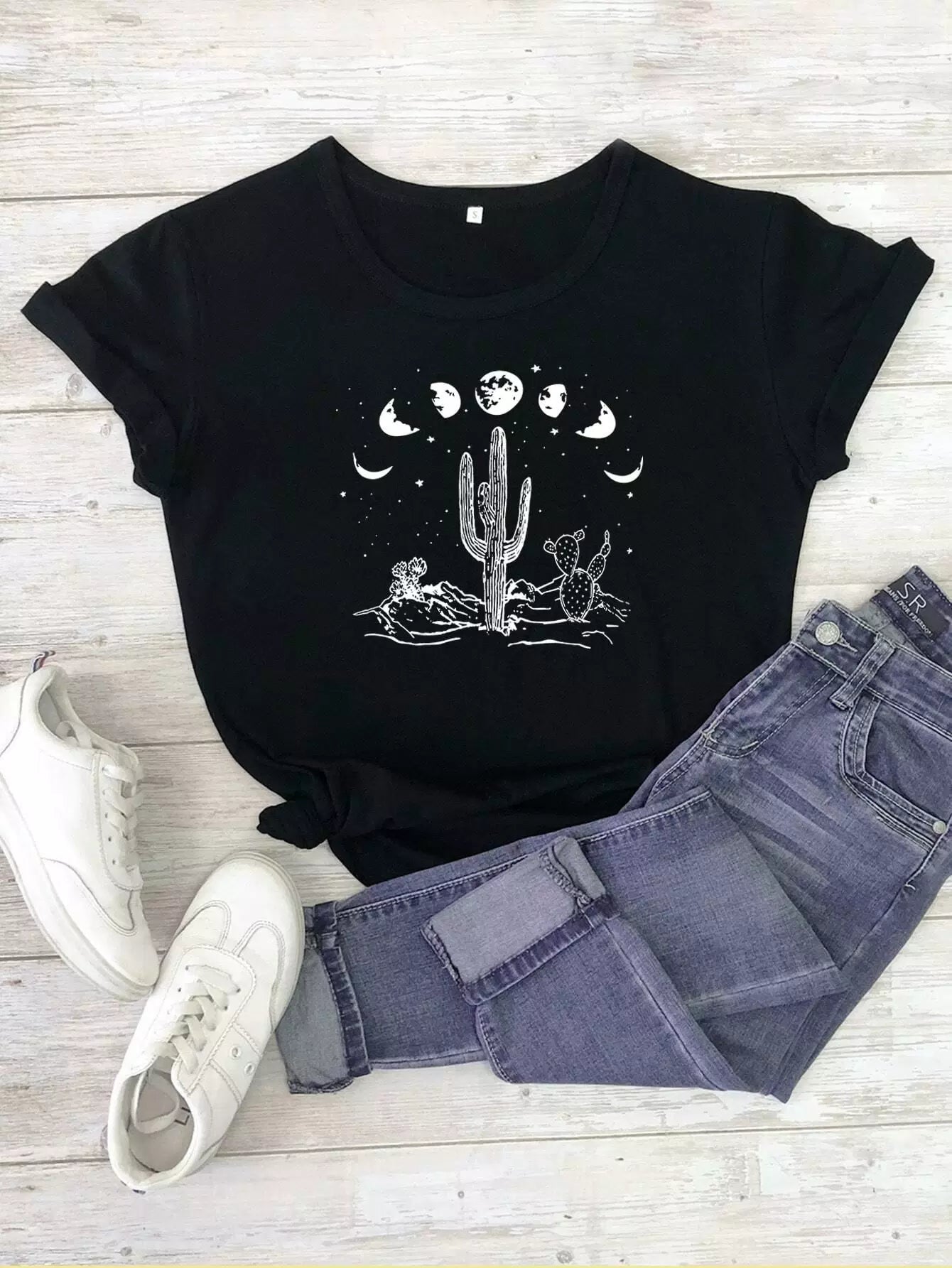 تي شيرت مطبوع عليه رسومات بأكمام قصيرة