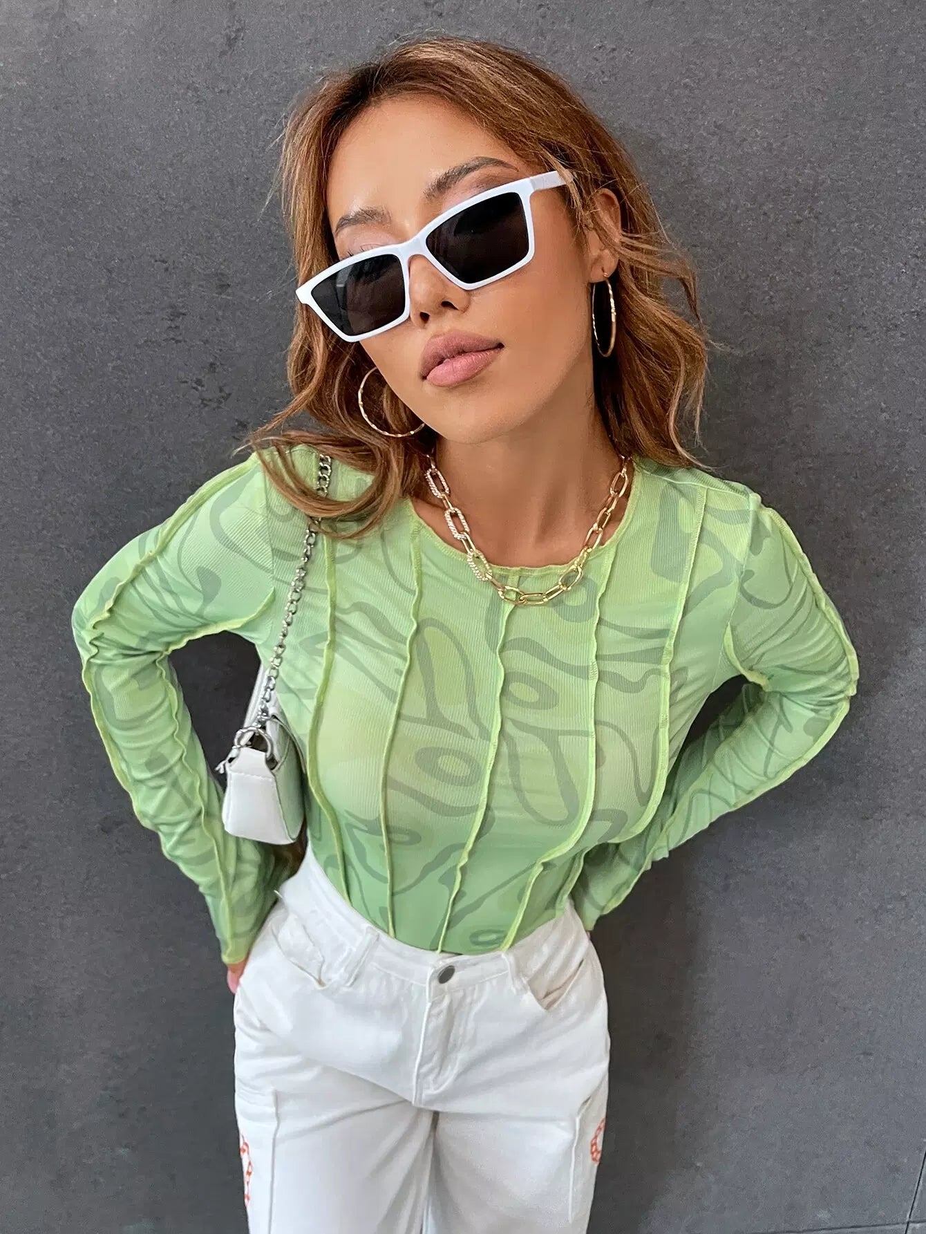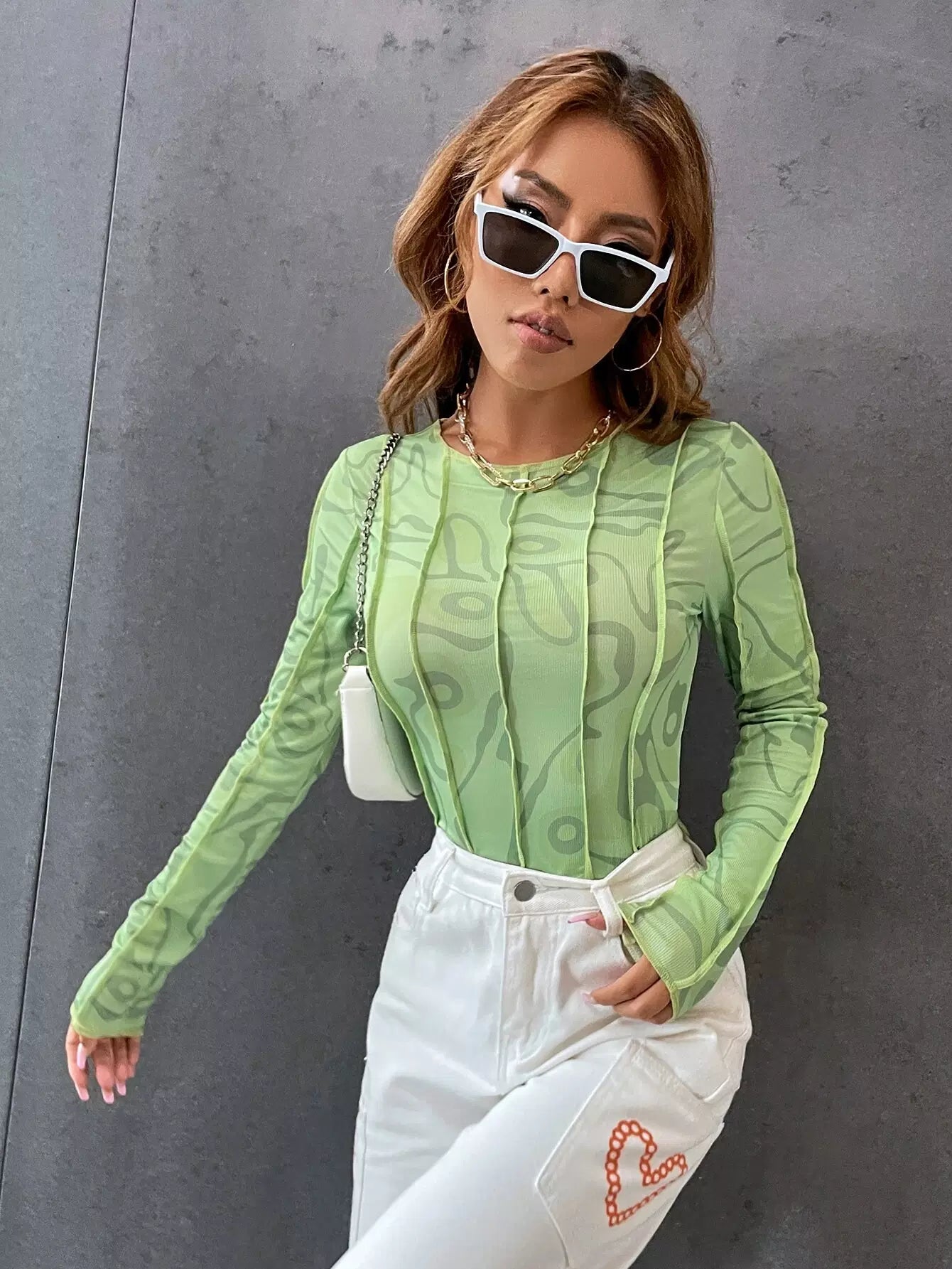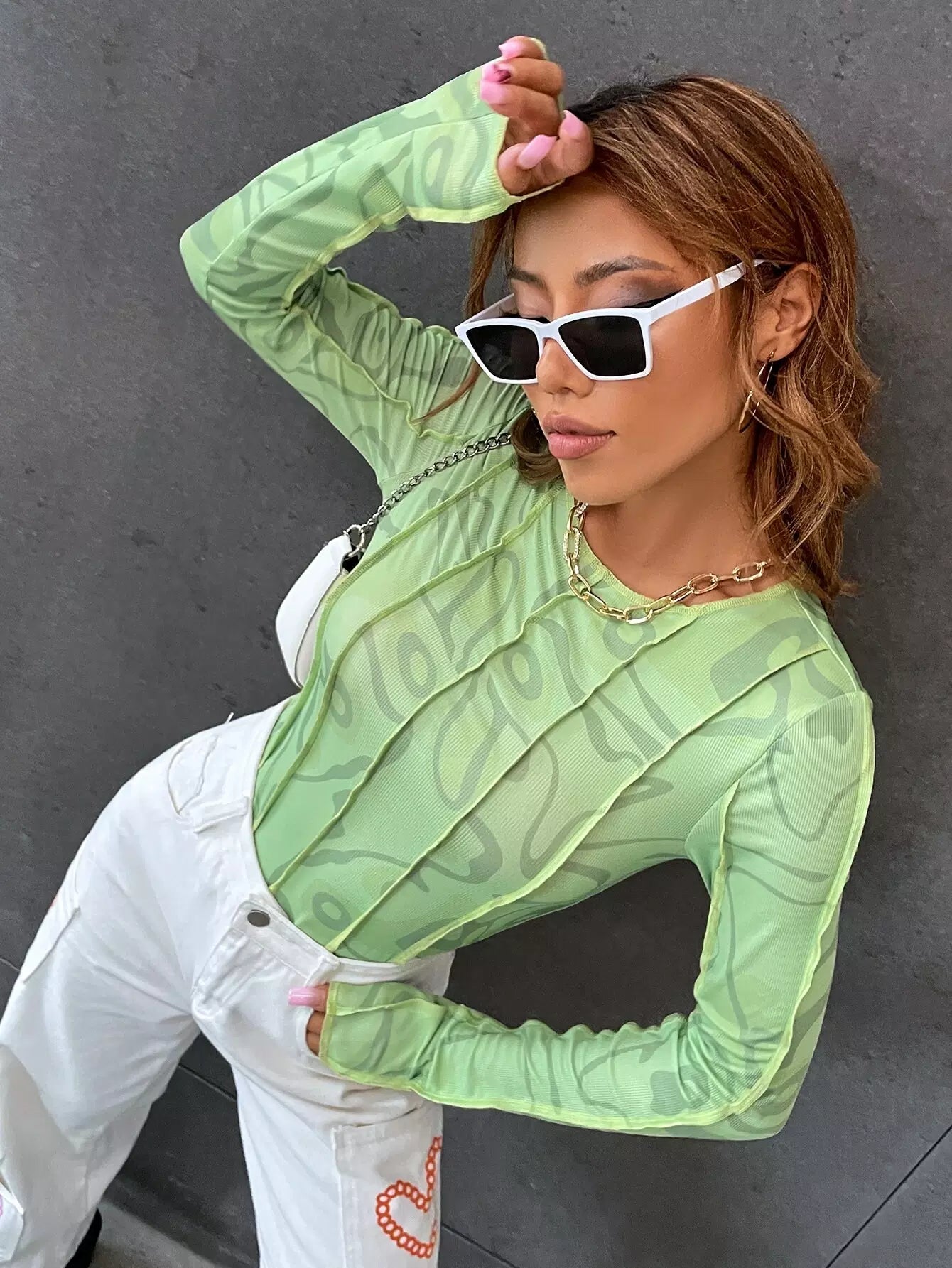 تي شيرت بطباعة جرافيكية وتفاصيل غرزة
