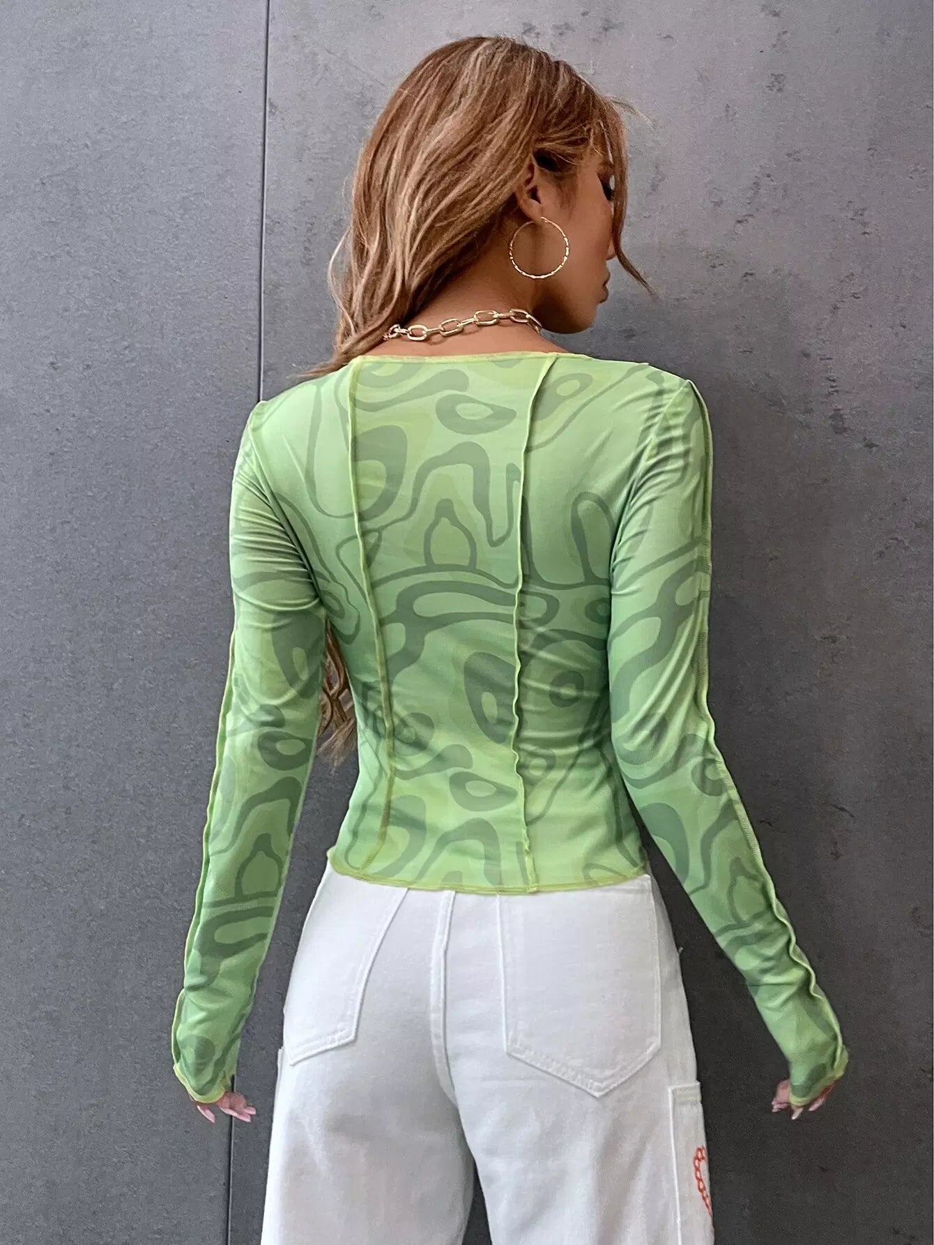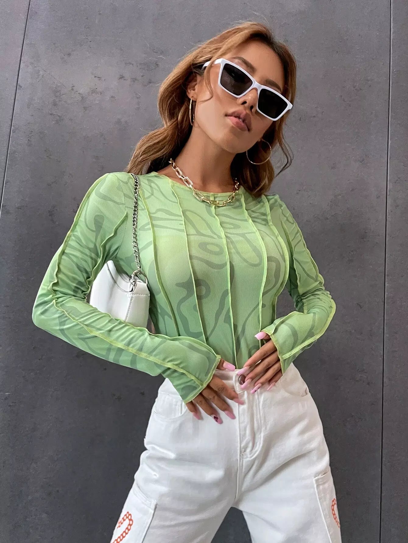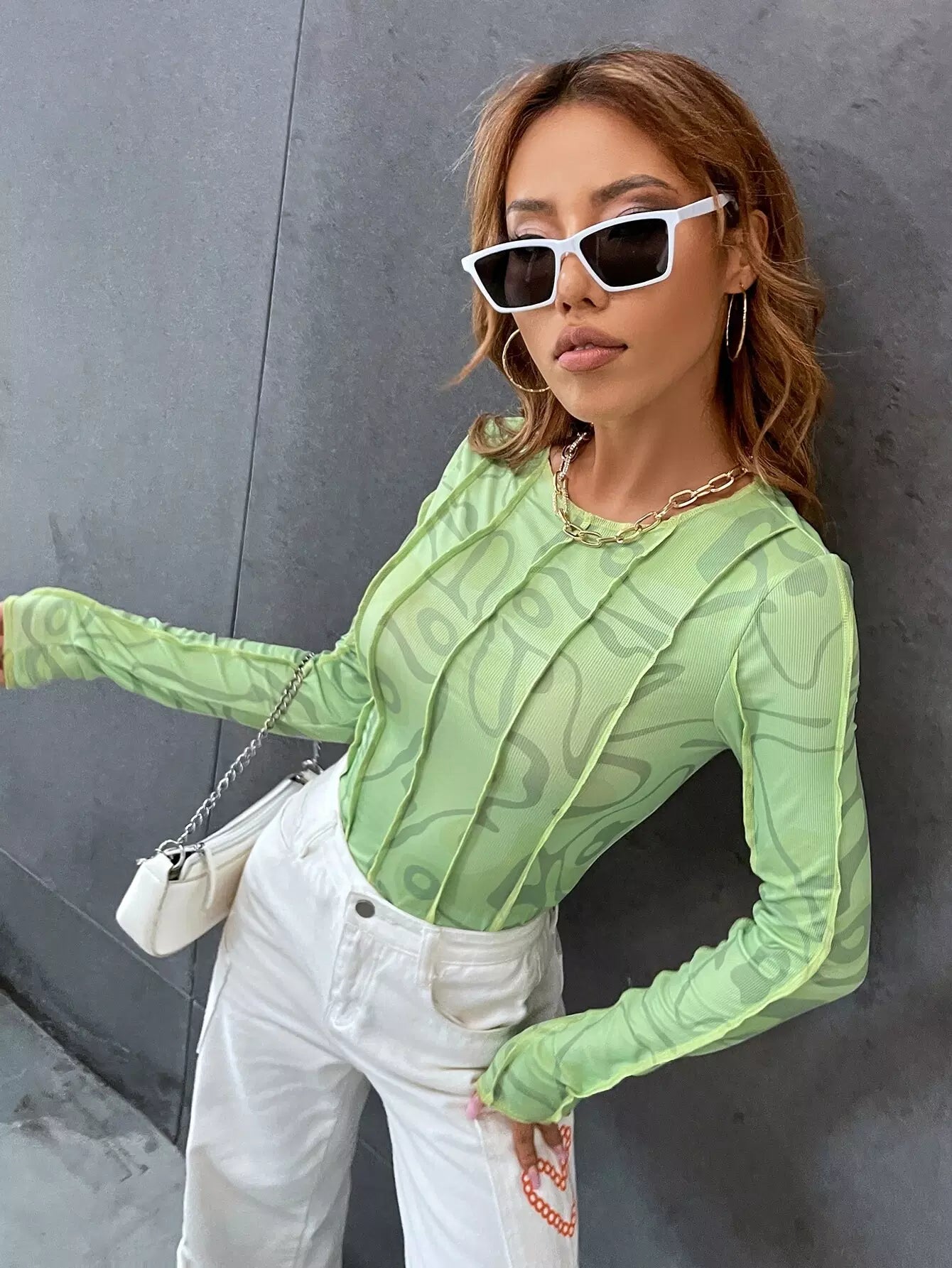 تي شيرت بطباعة جرافيكية وتفاصيل غرزة