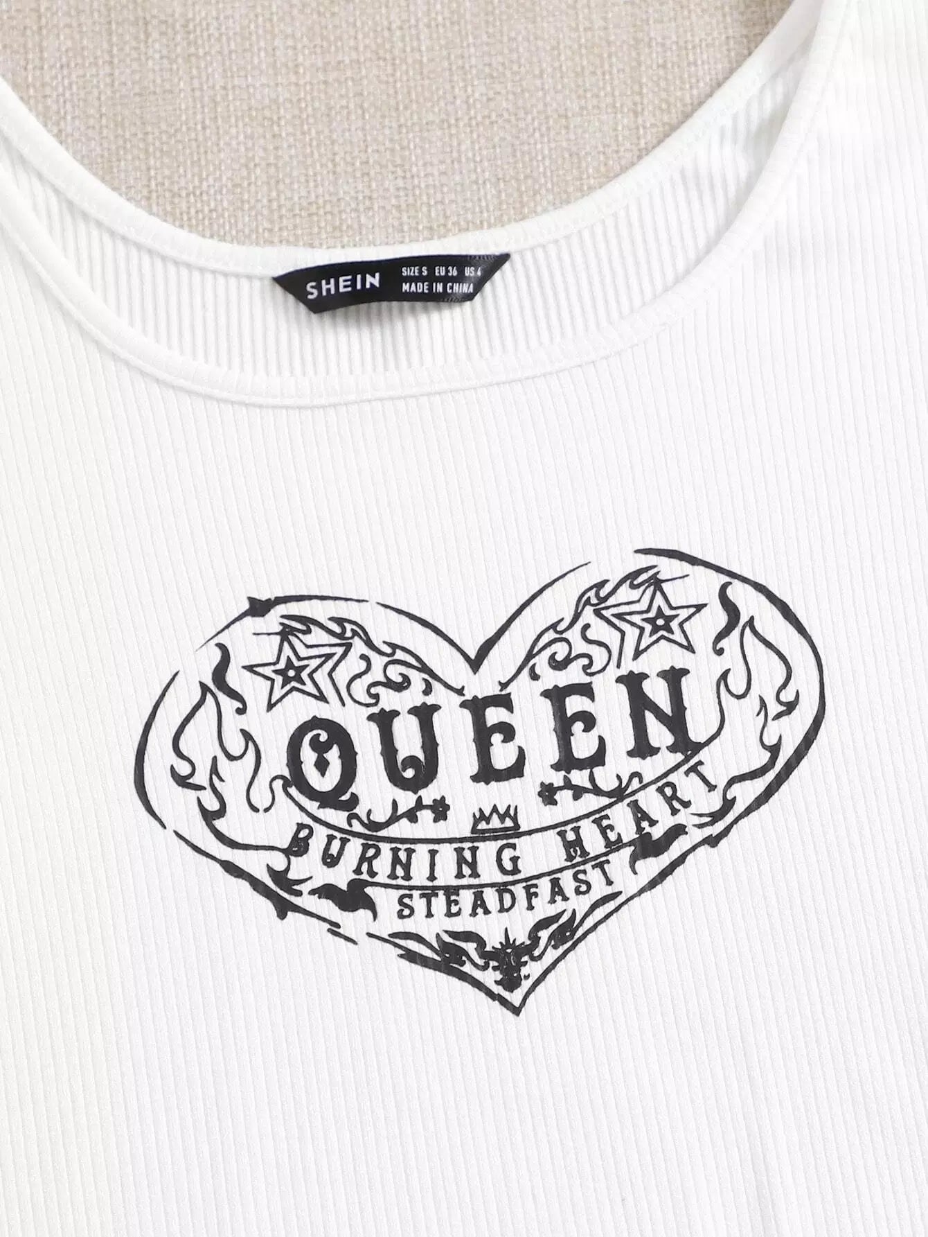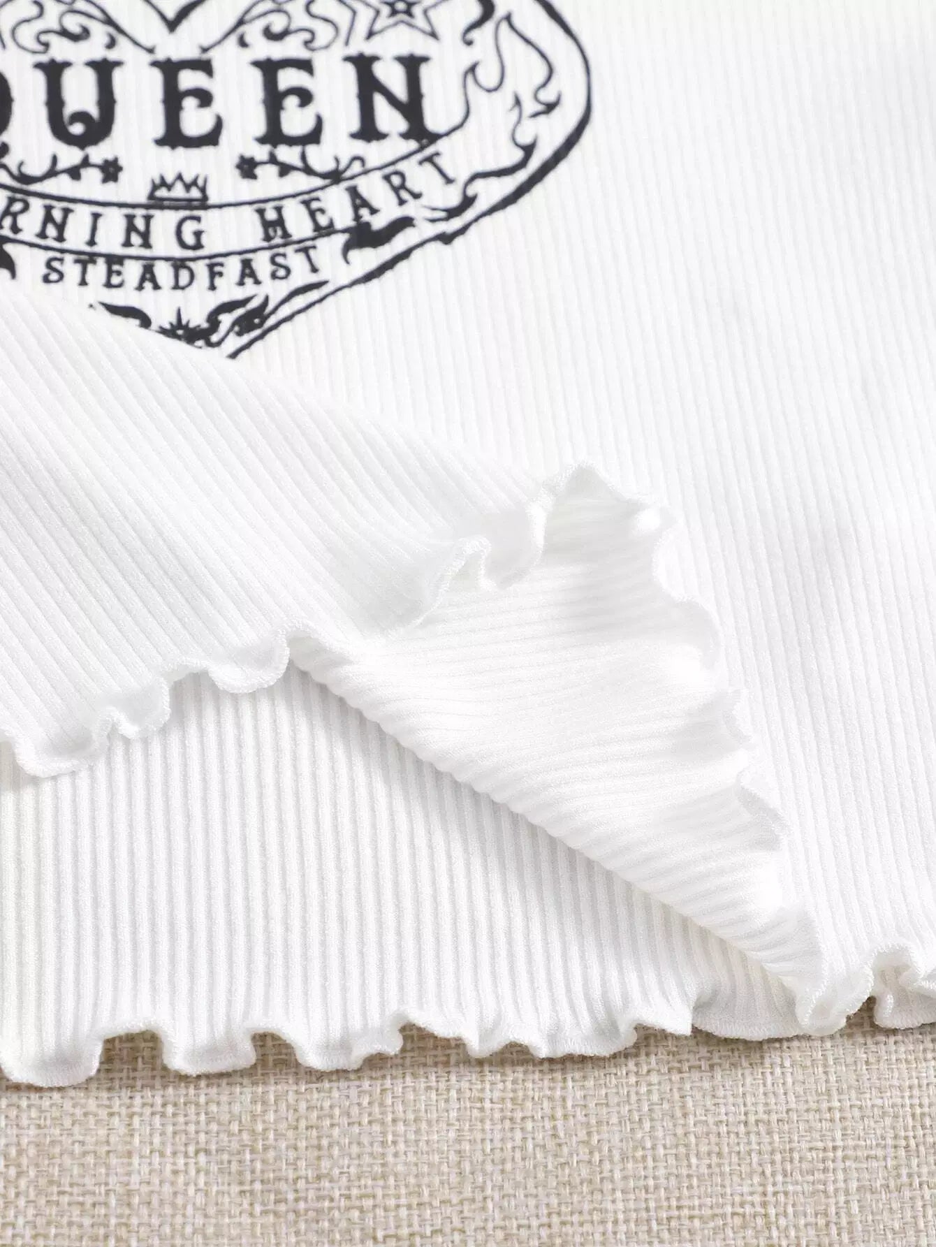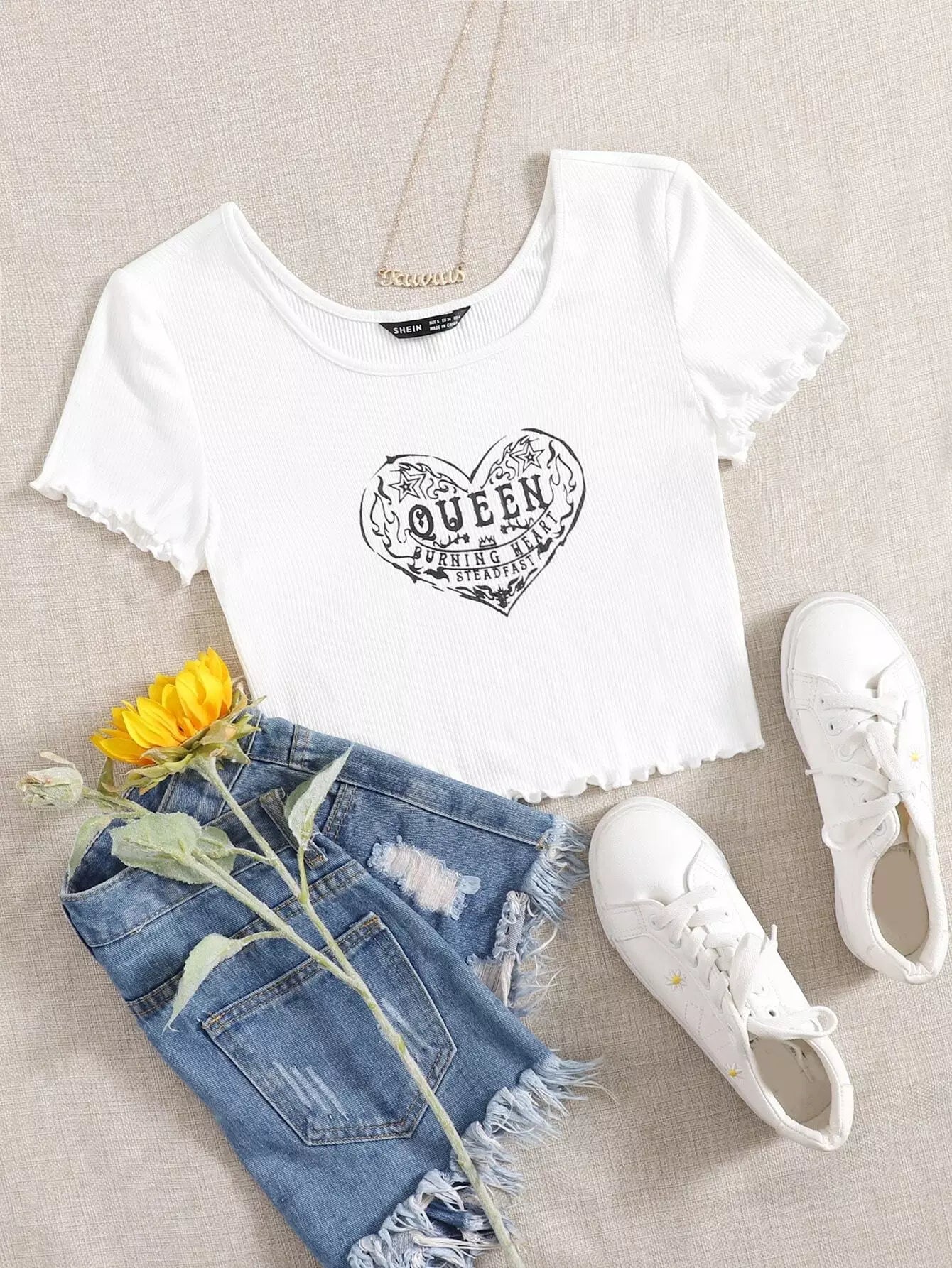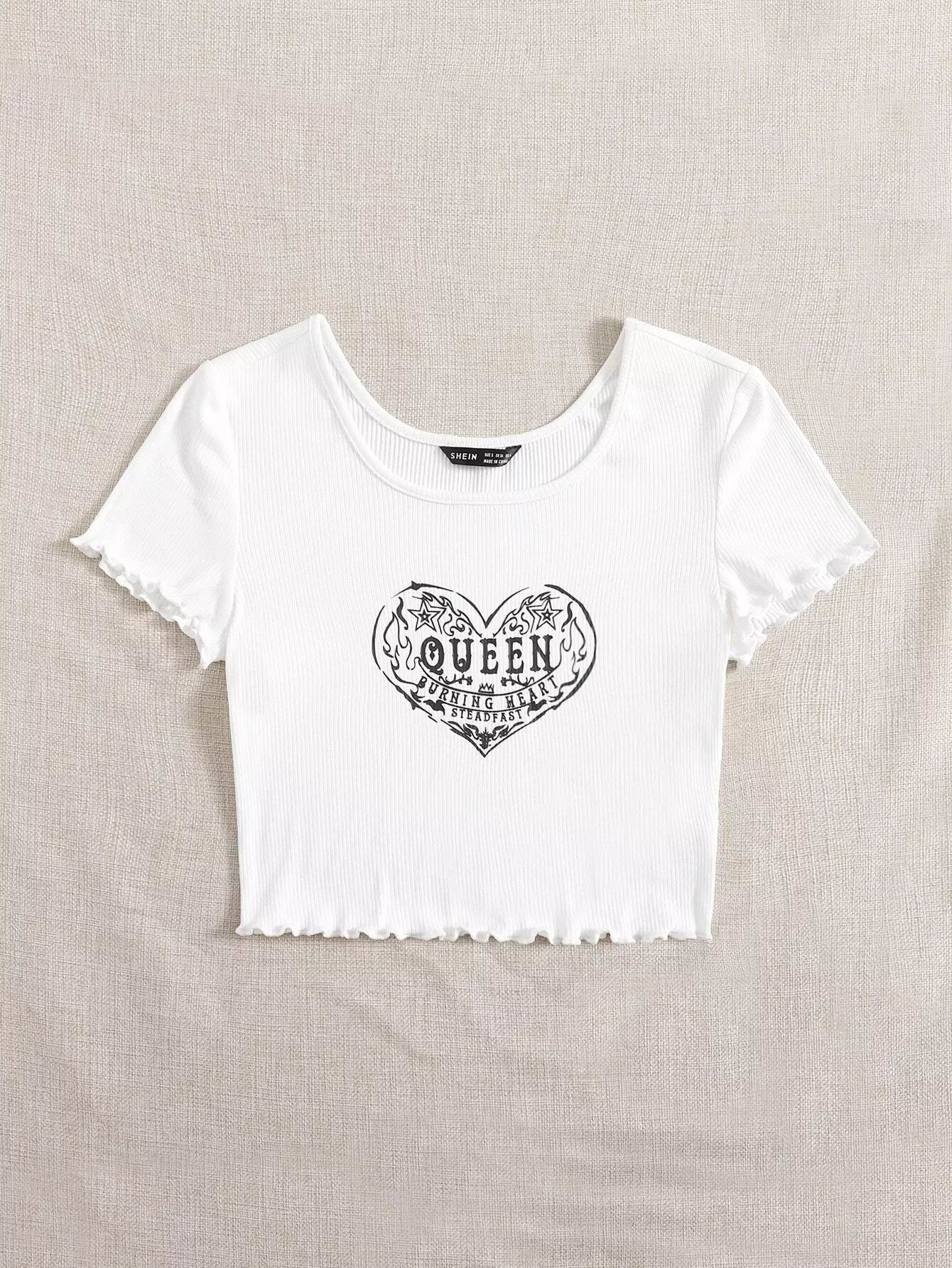 تي شيرت مطبوع على شكل قلب مطبوع عليه حواف ضلعية على شكل قلب
