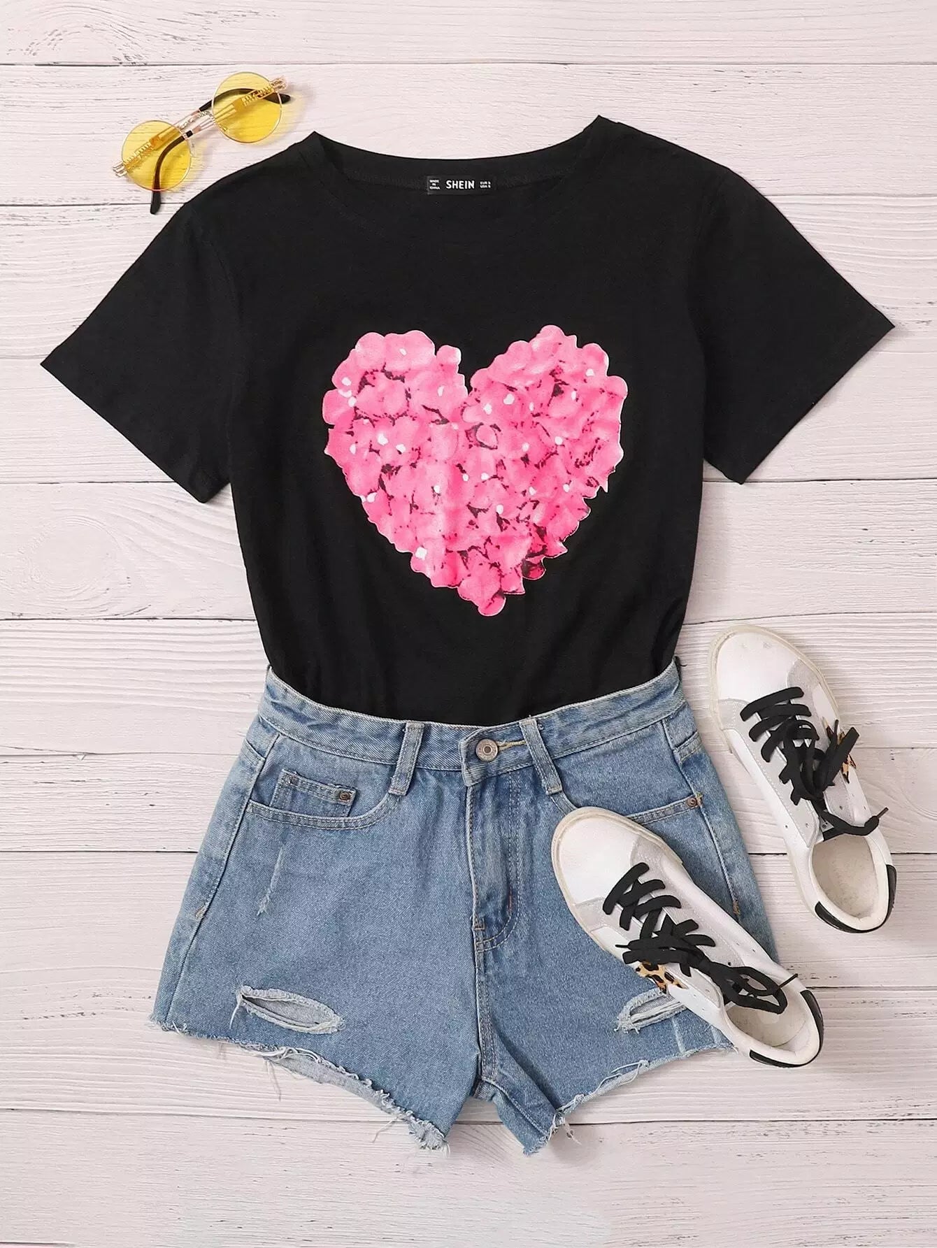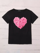 تي شيرت برقبة دائرية مطبوع عليها قلب