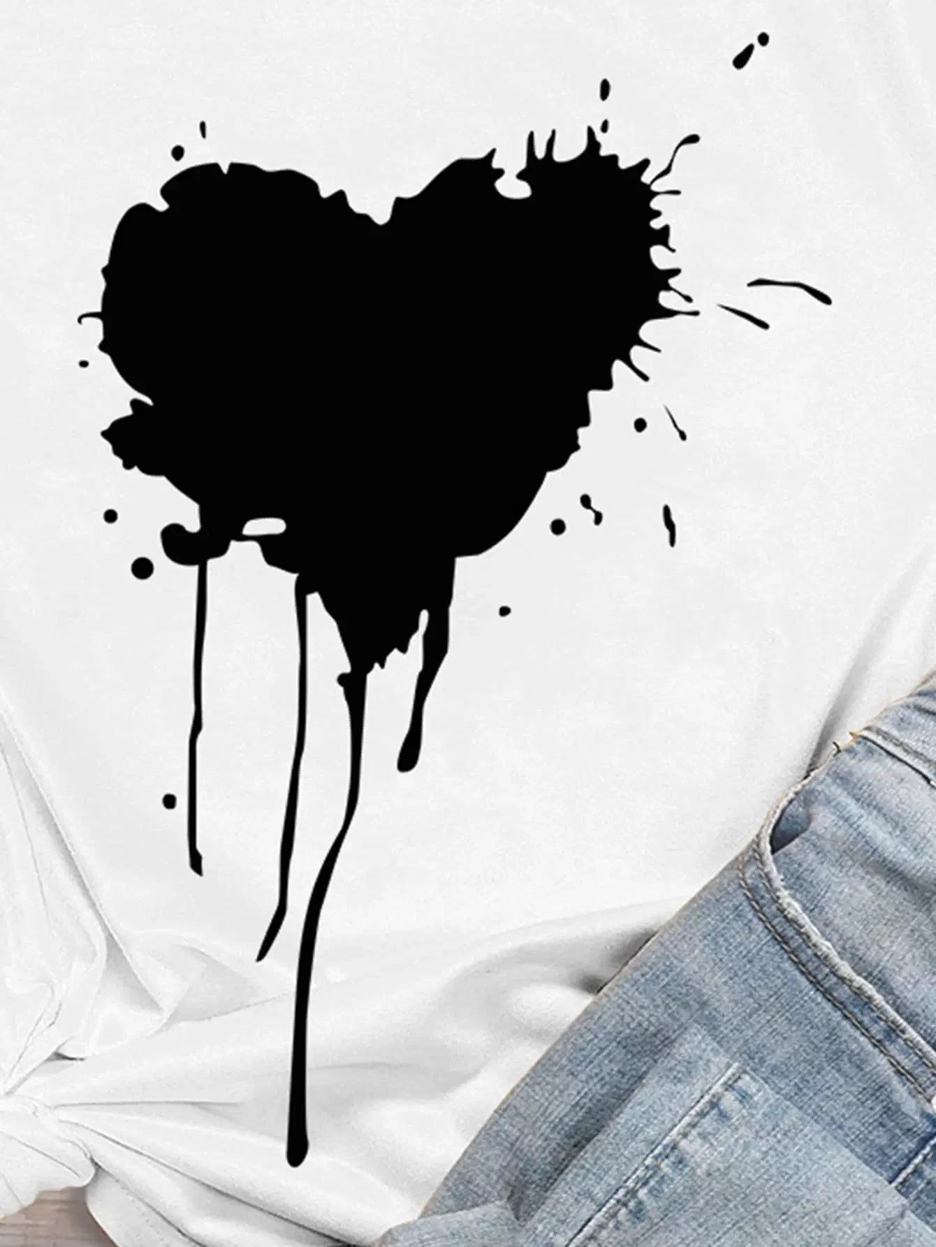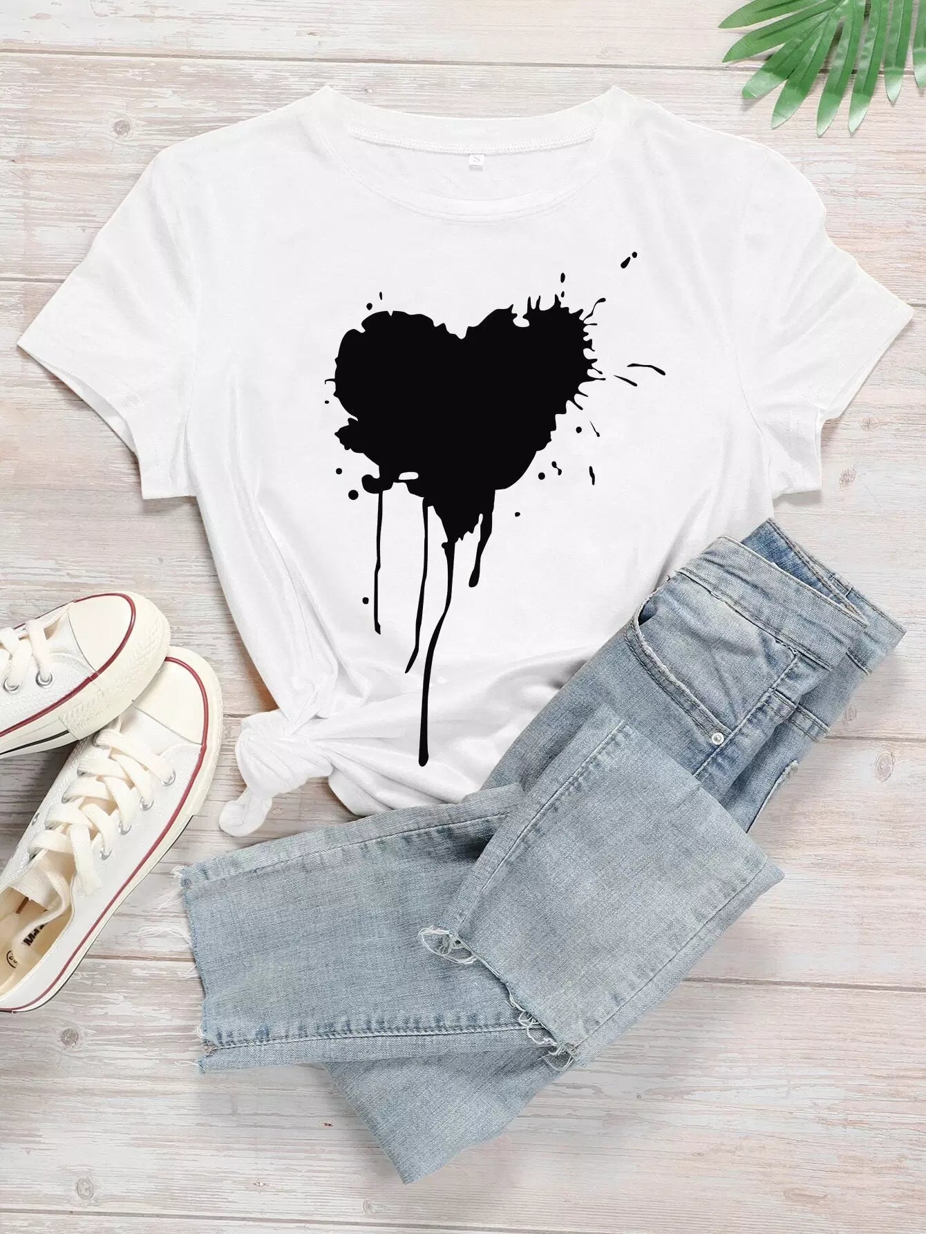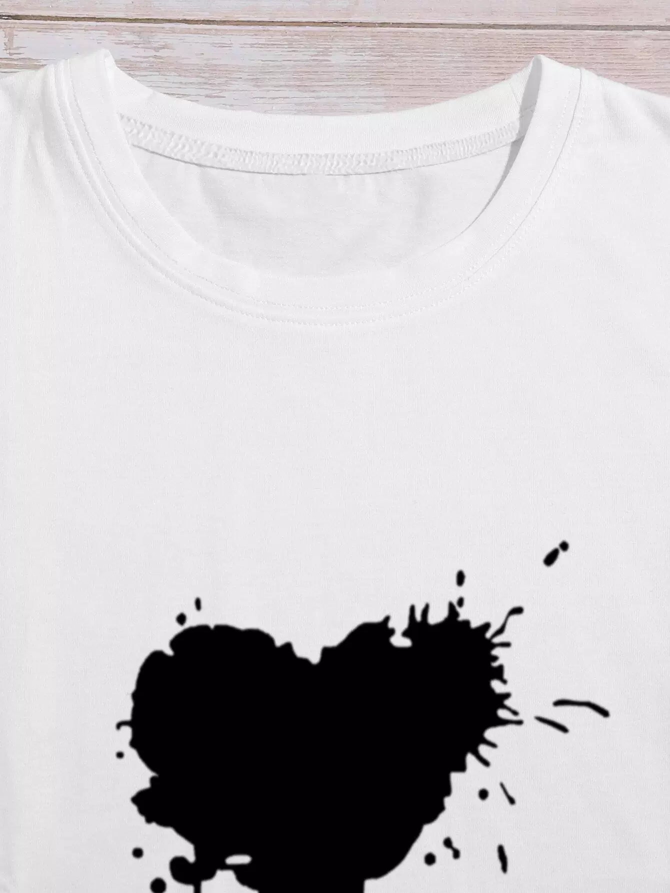 تي شيرت بأكمام قصيرة بطبعة قلب