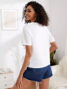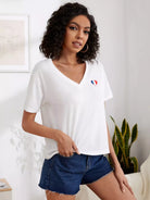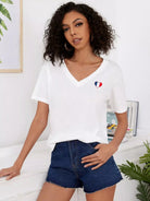 تي شيرت برقبة على شكل قلب مطبوع على شكل قلب