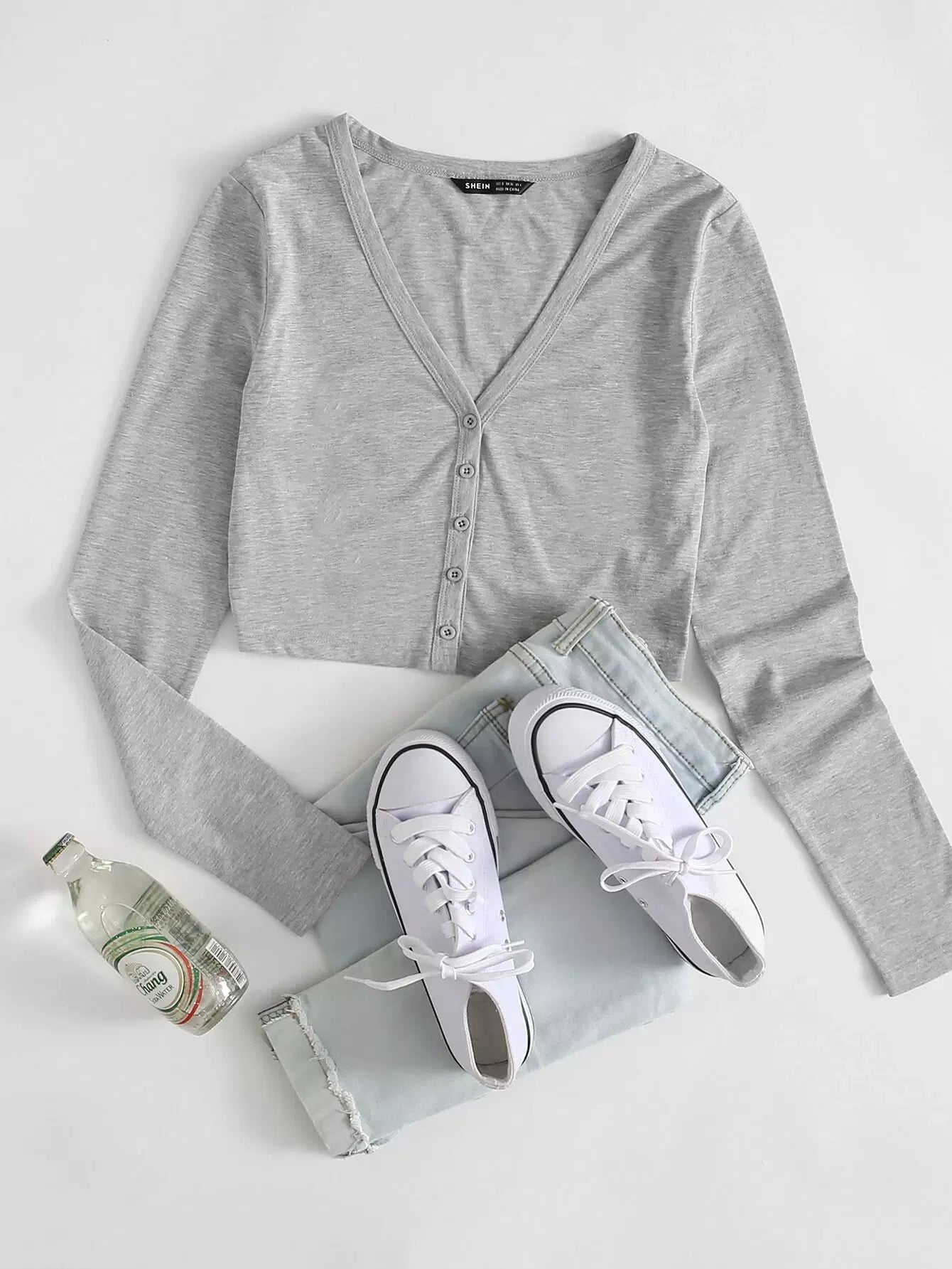 بلوزة قصيرة محبوكة بأزرار أمامية محبوكة بأزرار من الأمام
