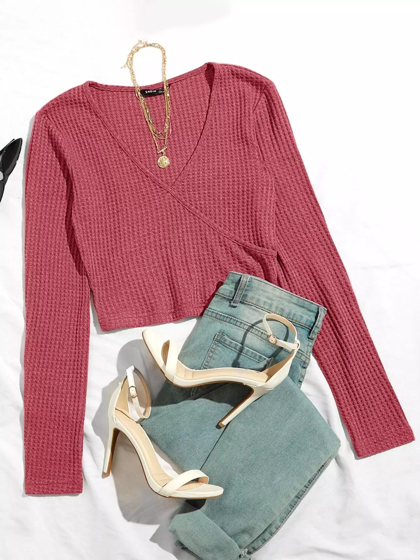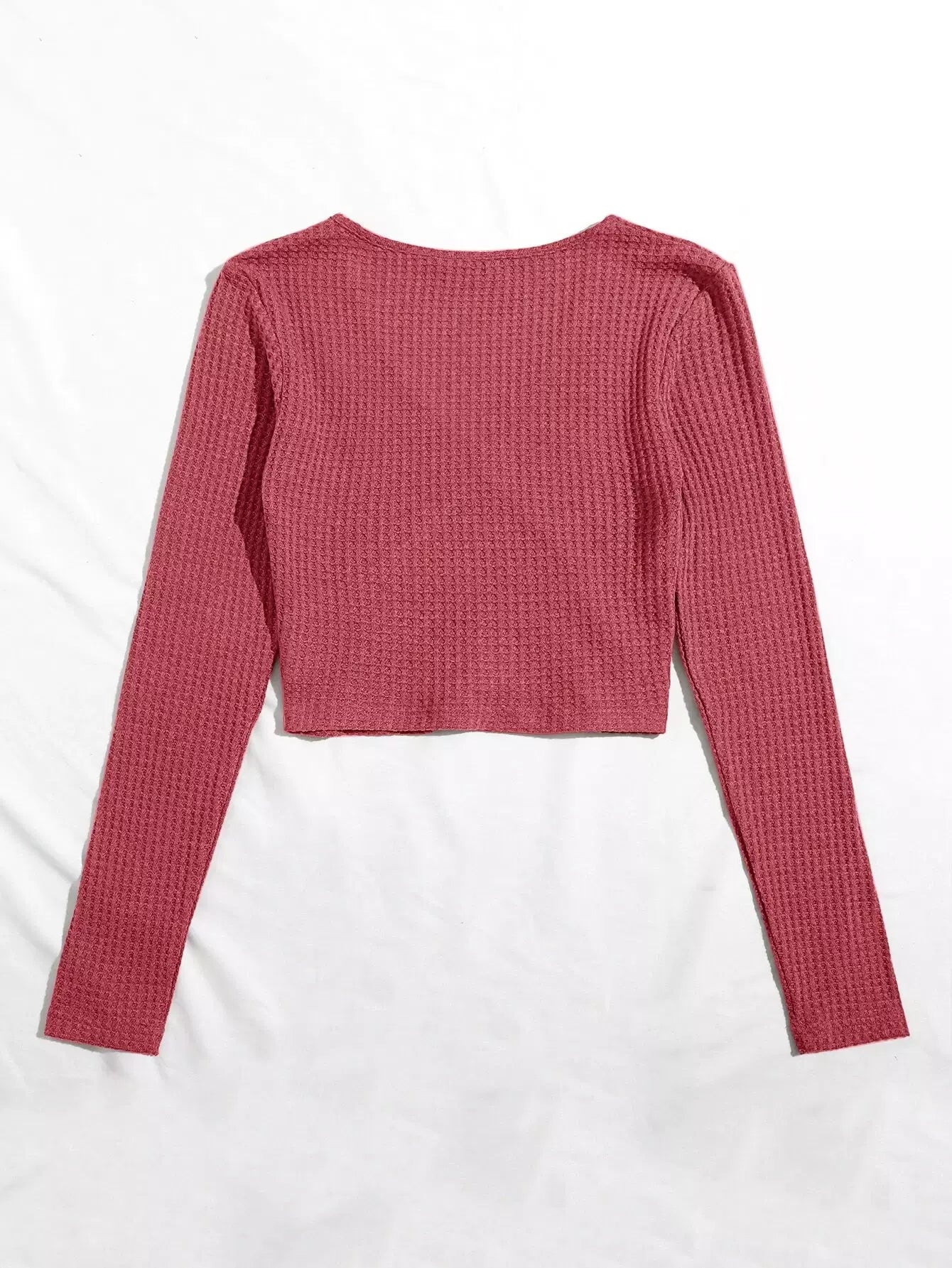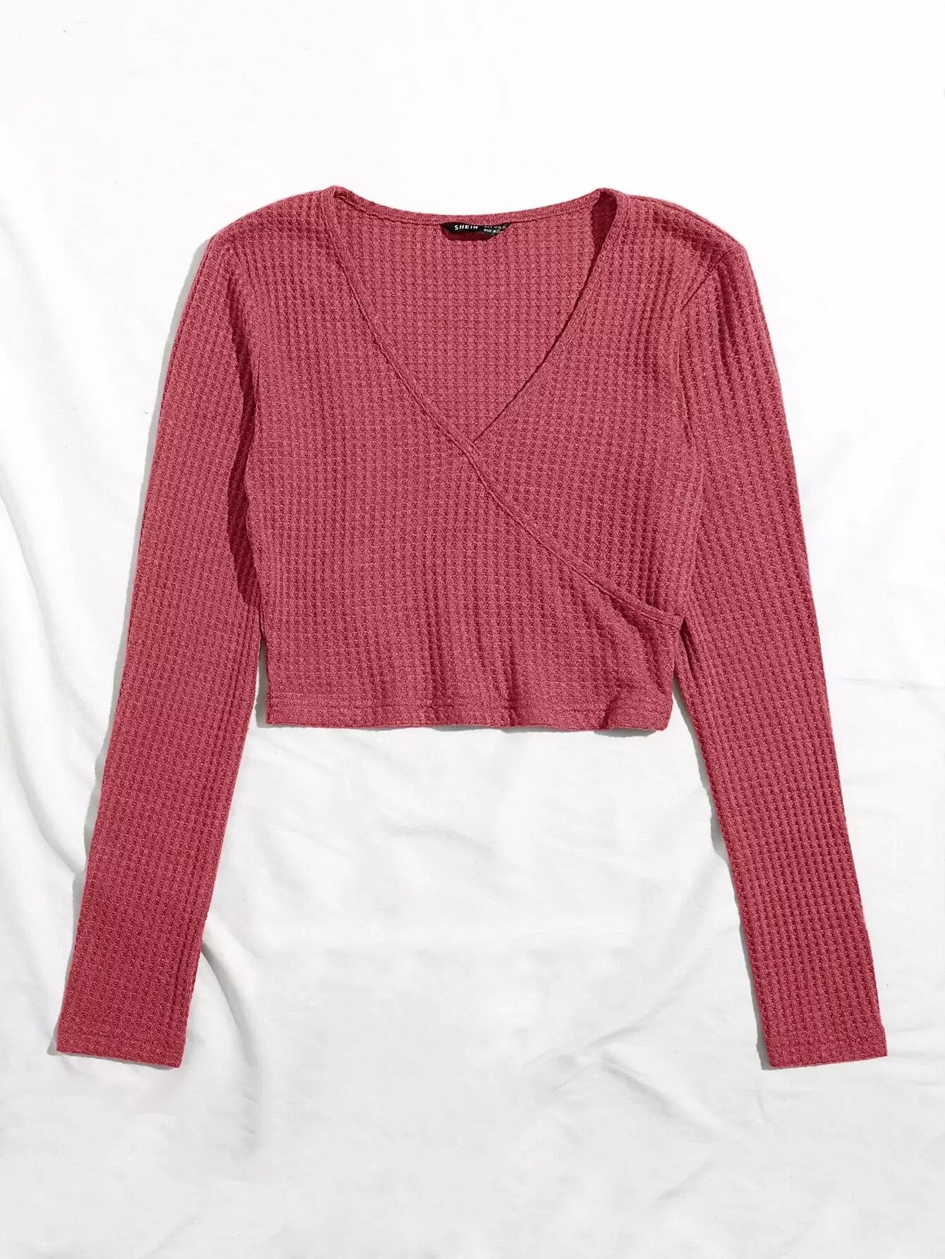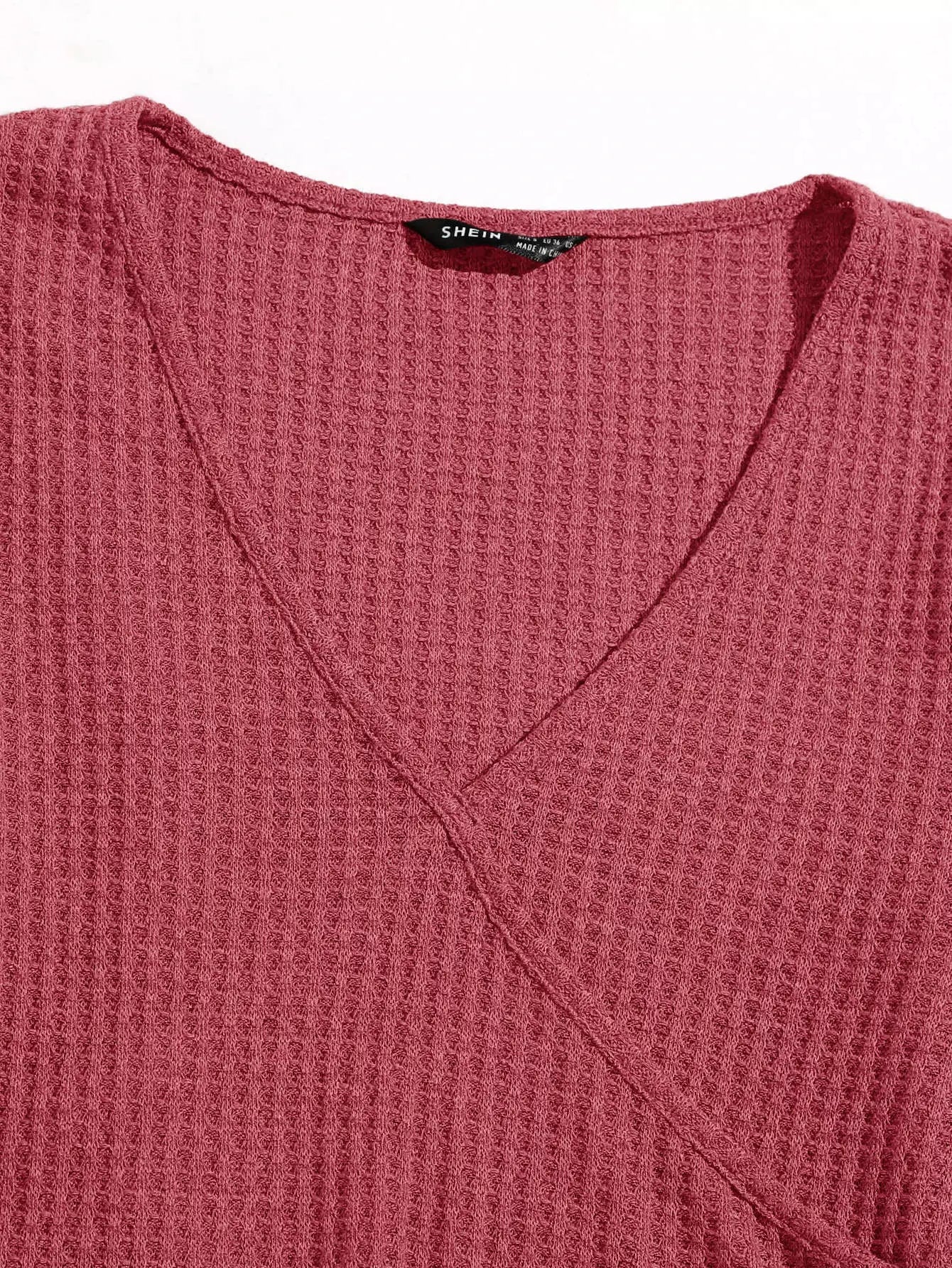 تي شيرت قصير محبوك برقبة محبوكة ومتماسكة ومشدودة