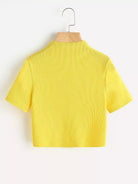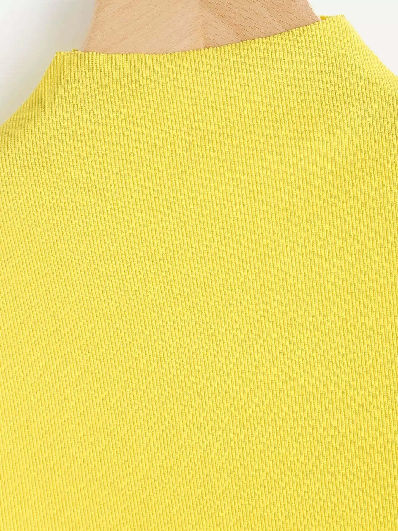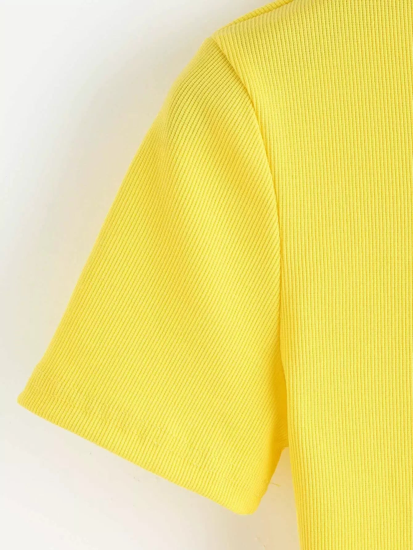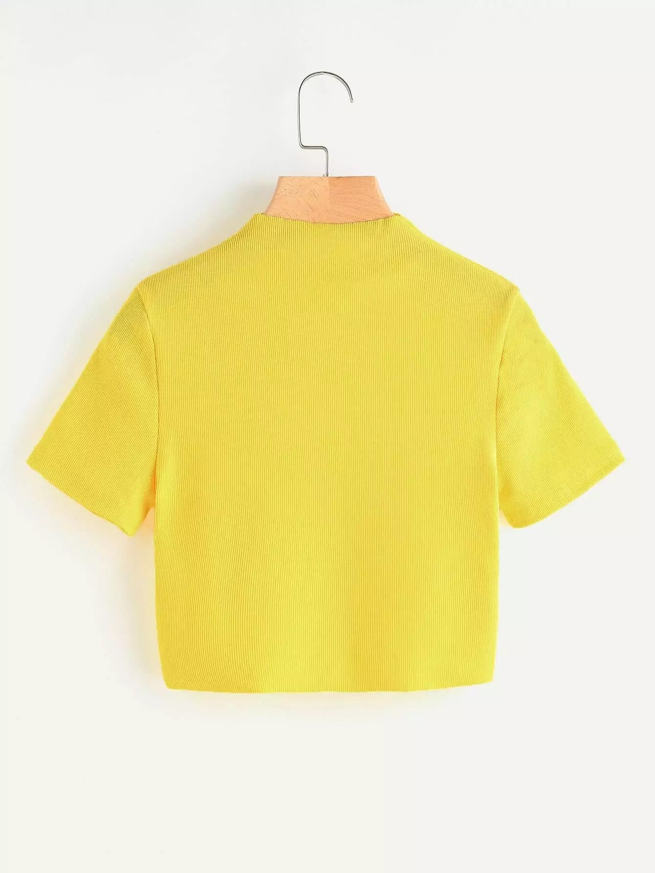 تي شيرت برقبة عالية مضلعة بقصّة قصيرة مضلعة