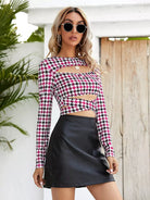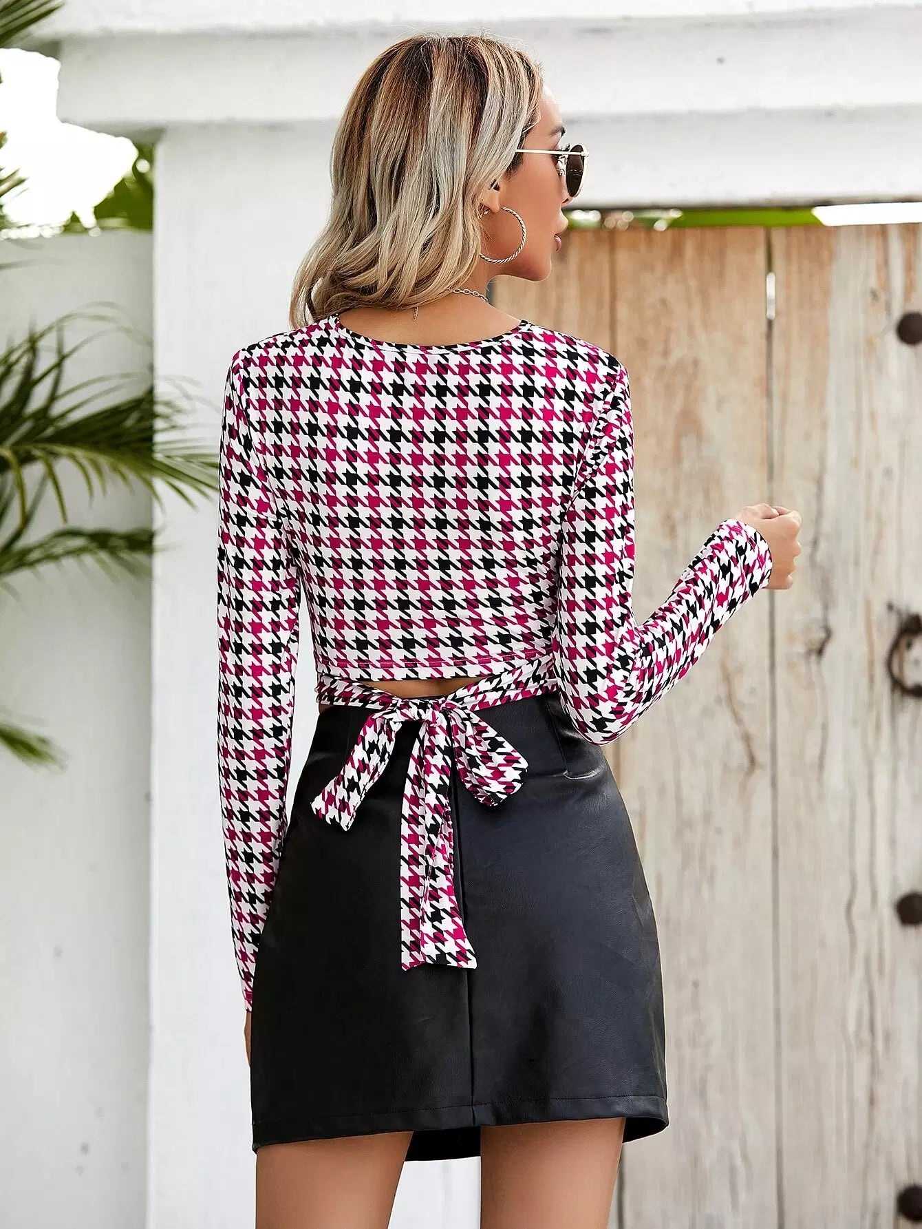 تي شيرت بربطة عنق من الخلف بقصّة على شكل حرف Houndstooth