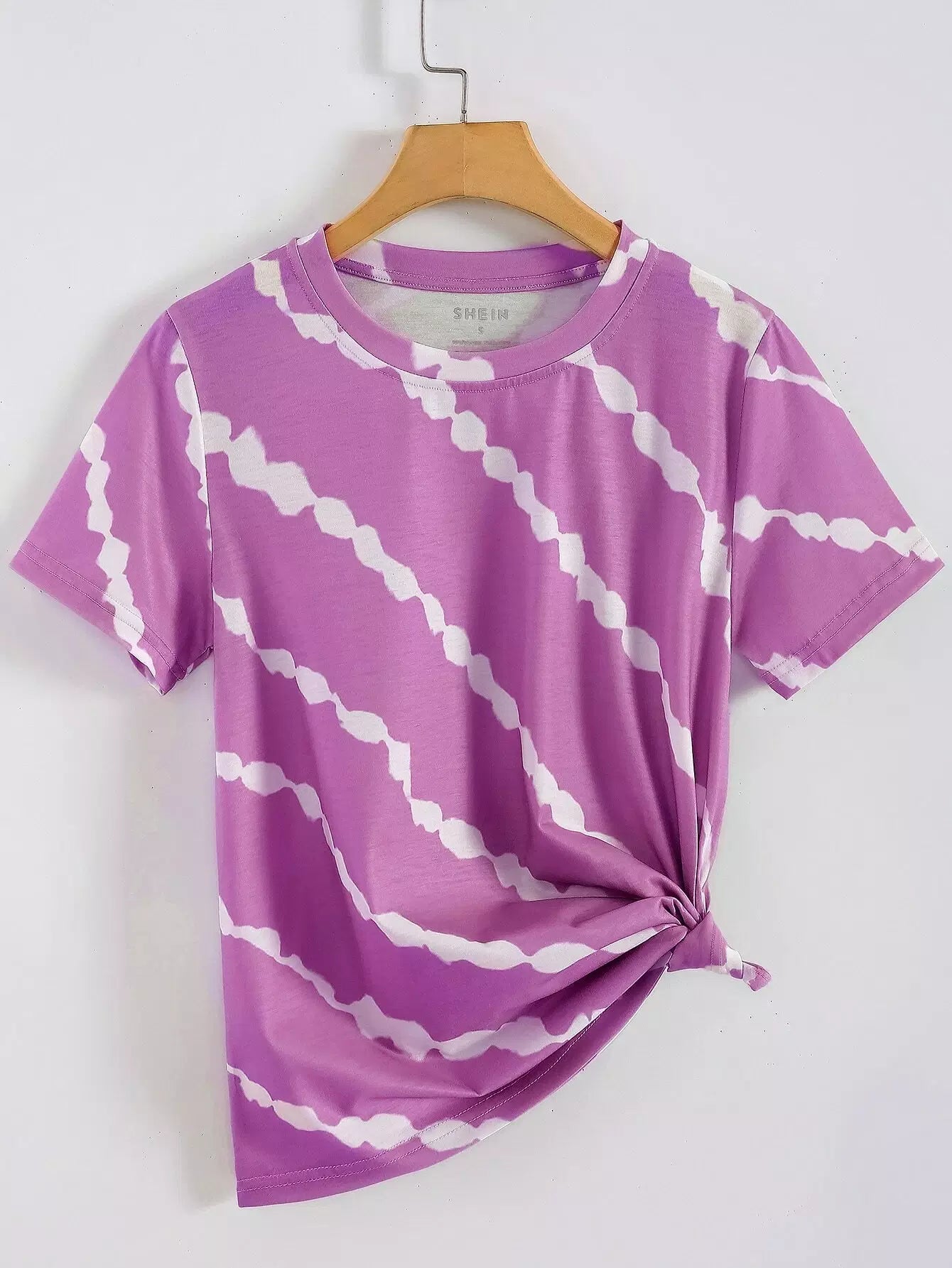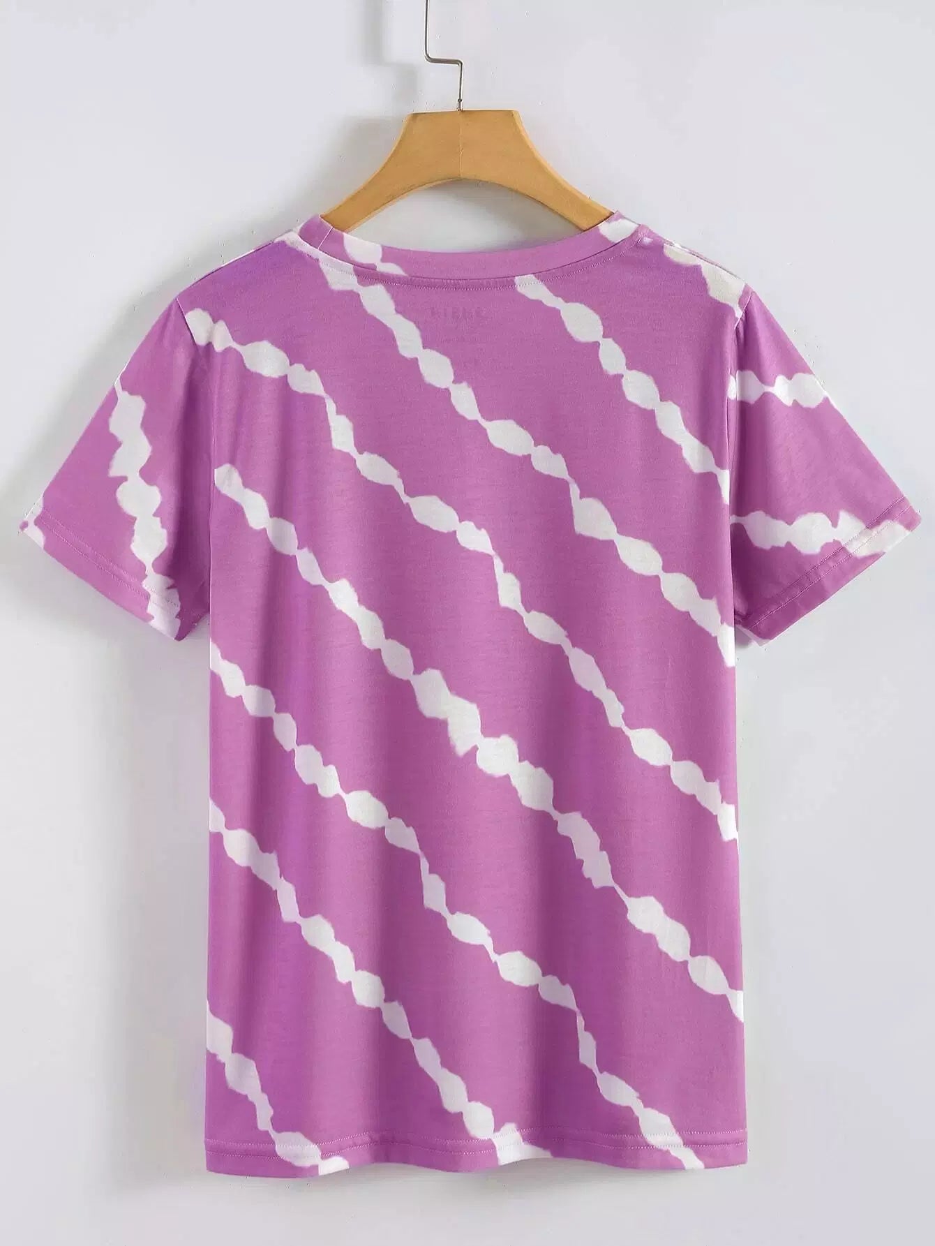 تيشيرت بأكمام قصيرة مخططة غير منتظمة