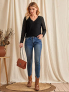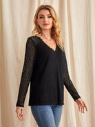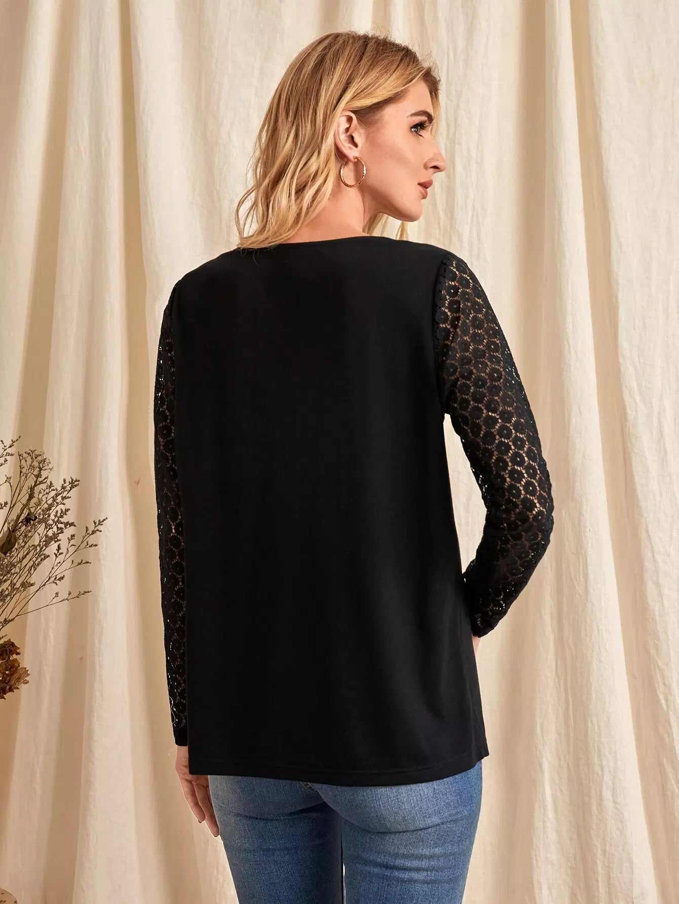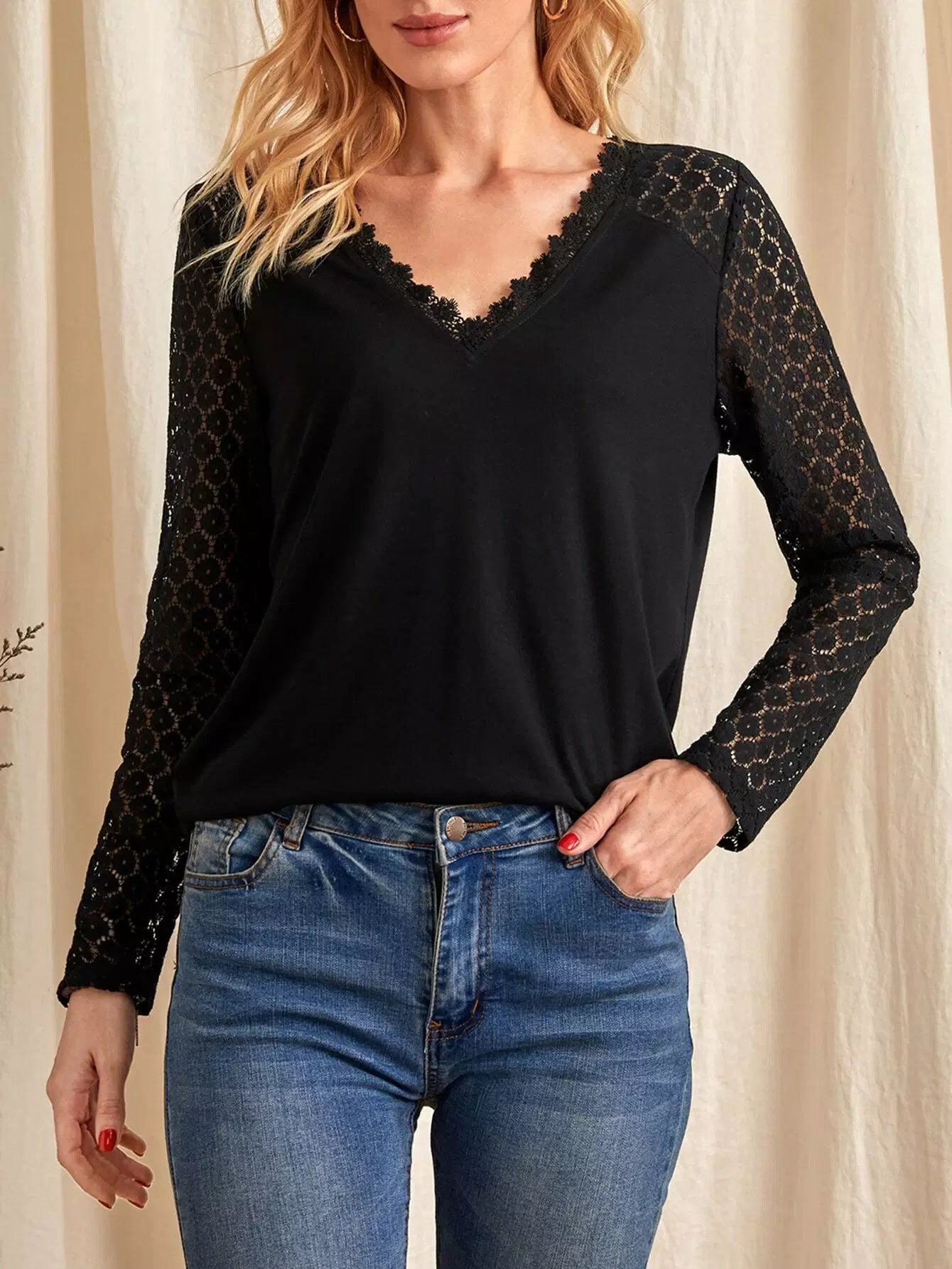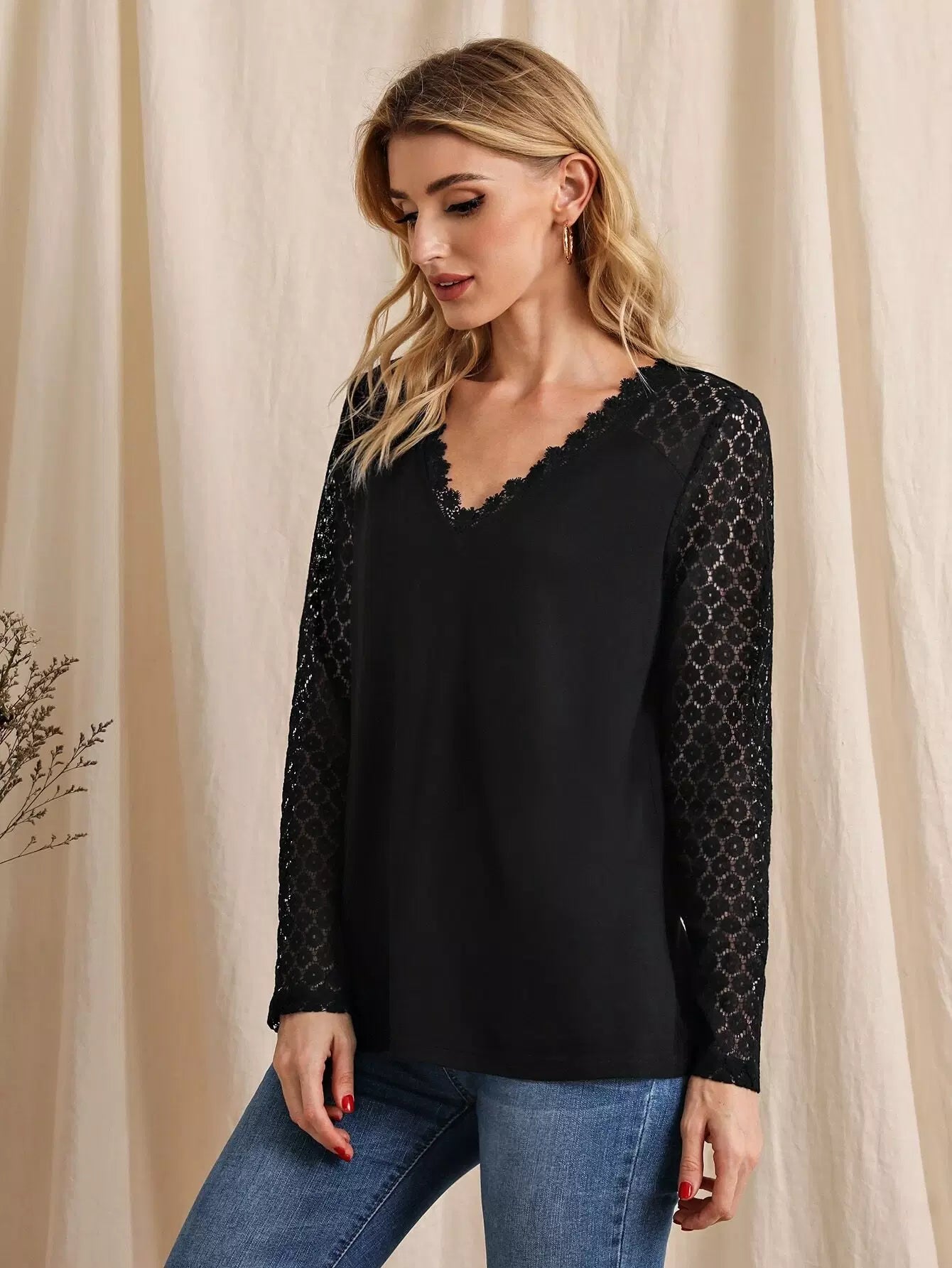 تي شيرت بفتحة رقبة على شكل حرف V مع حشوة من الدانتيل