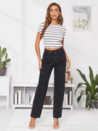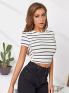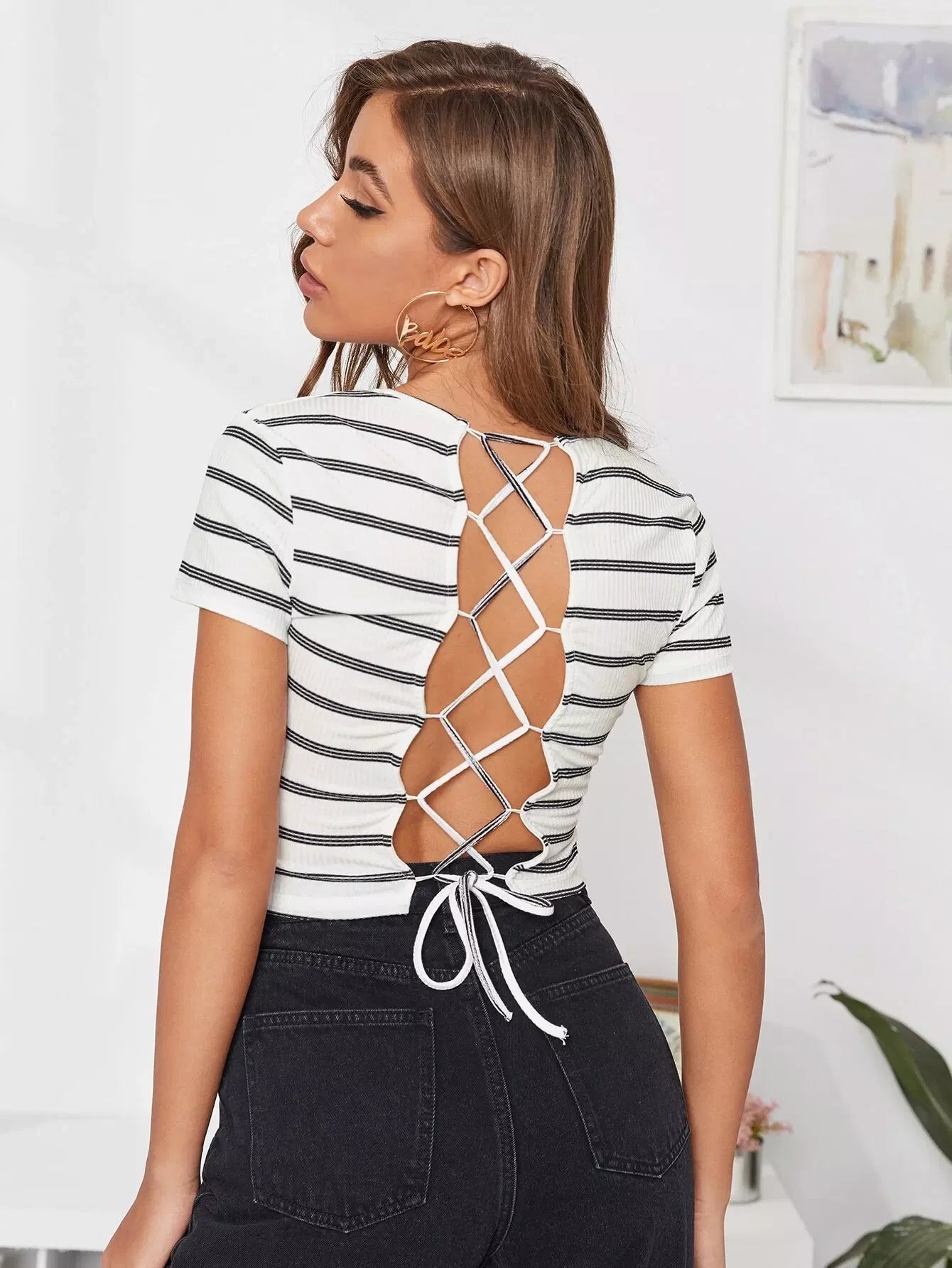 بلوزة مخططة برباط محبوكة بأربطة مخططة