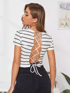 النساء - بلوزة مخططة ومضلعة بأربطة