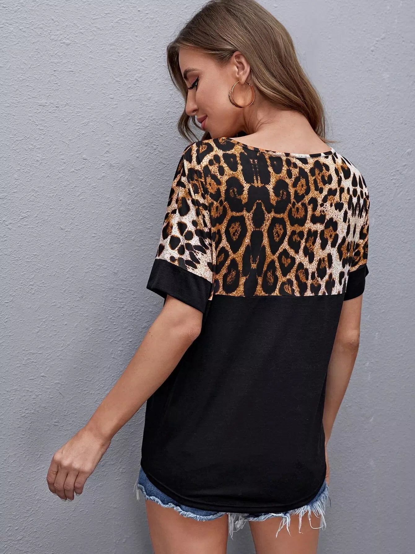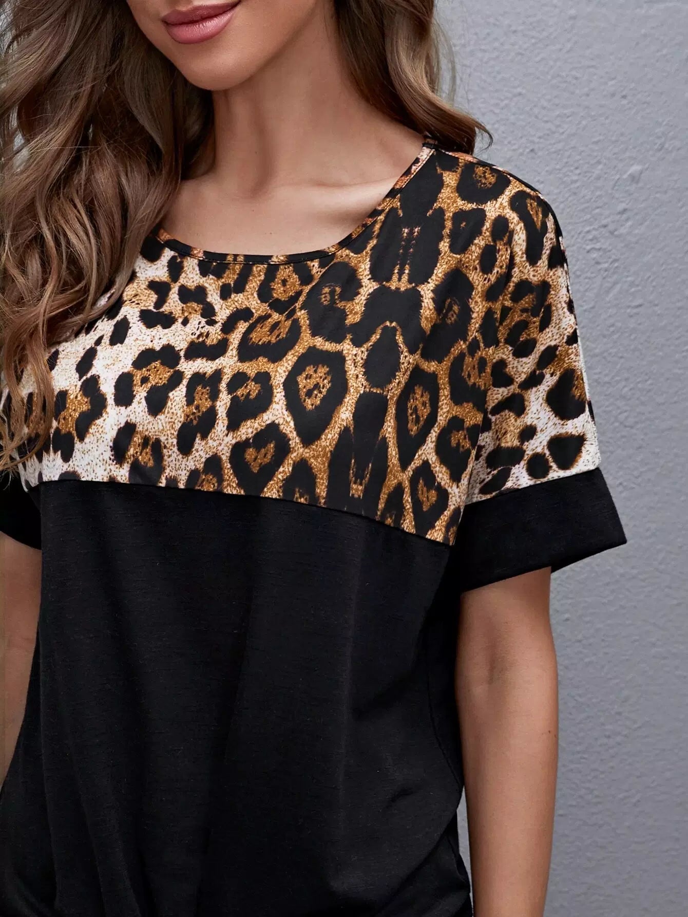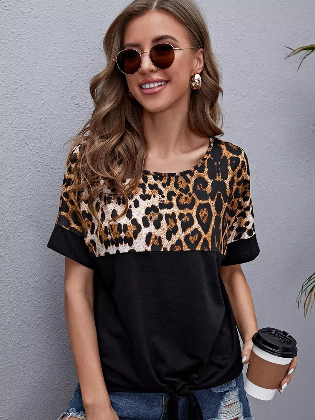 تي شيرت بنقشة على شكل جلد النمر بربطة عنق