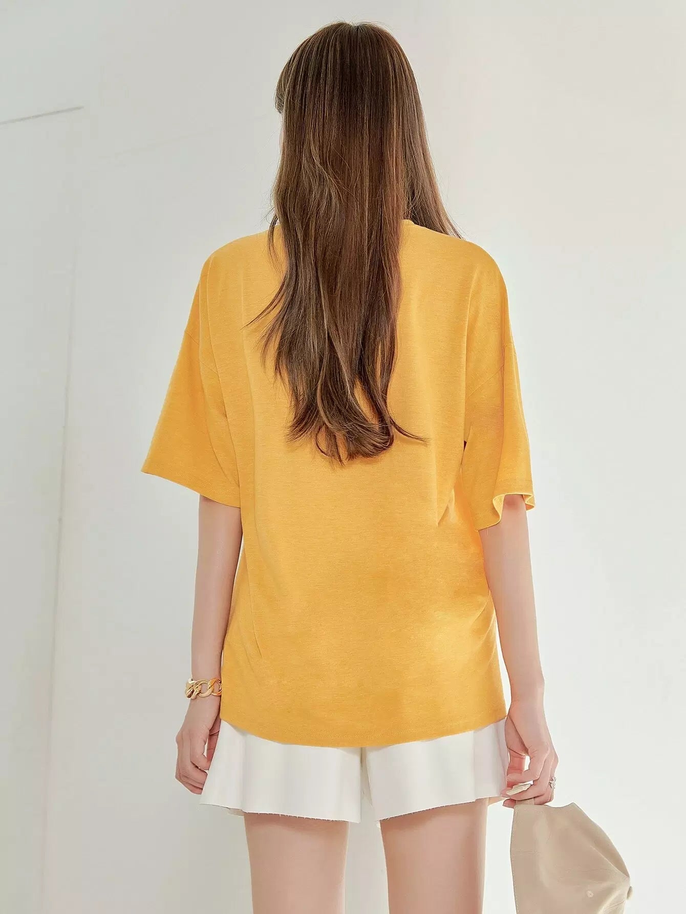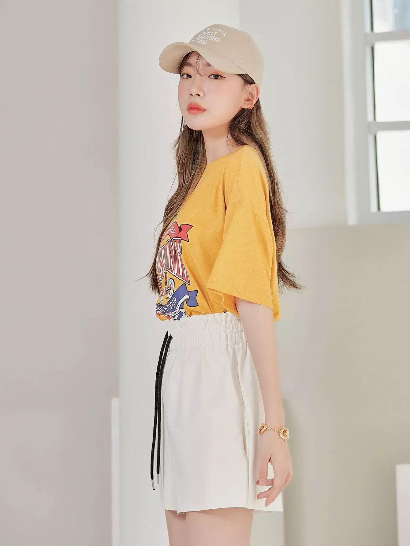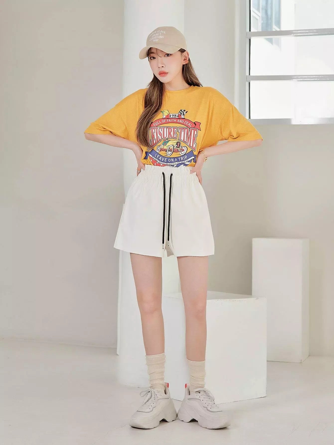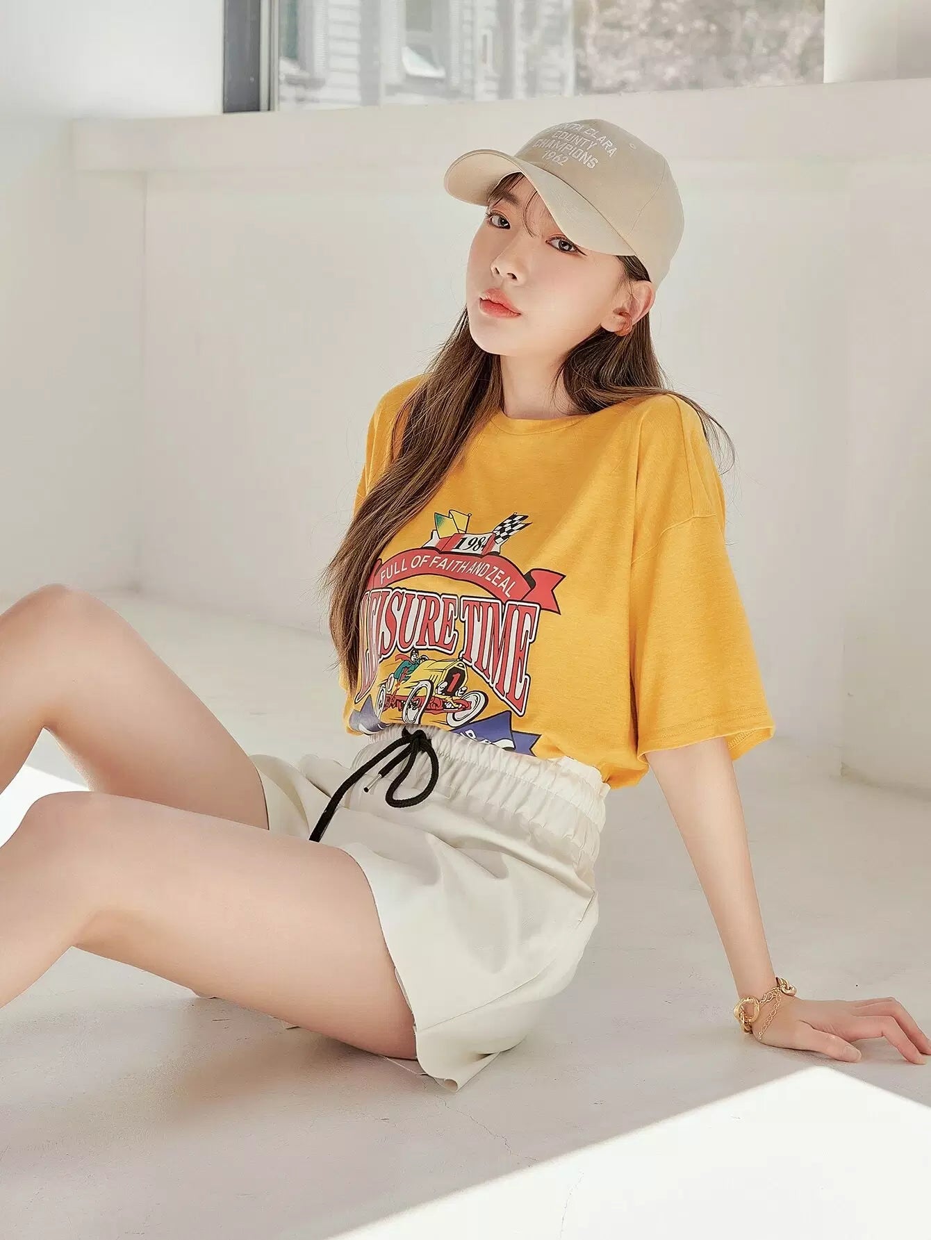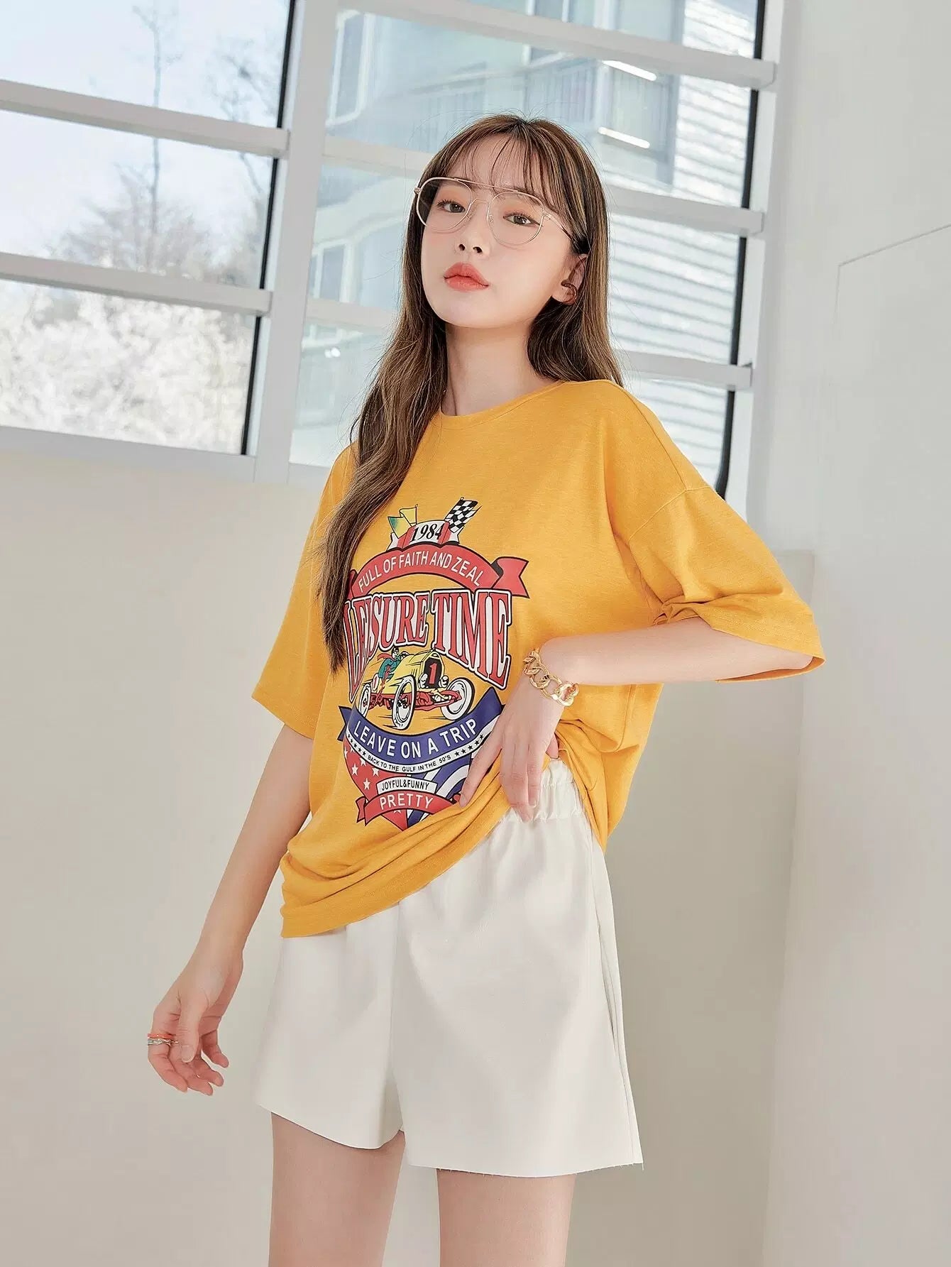 تي شيرت منسدل الكتف مطبوع عليه حروف وسيارة