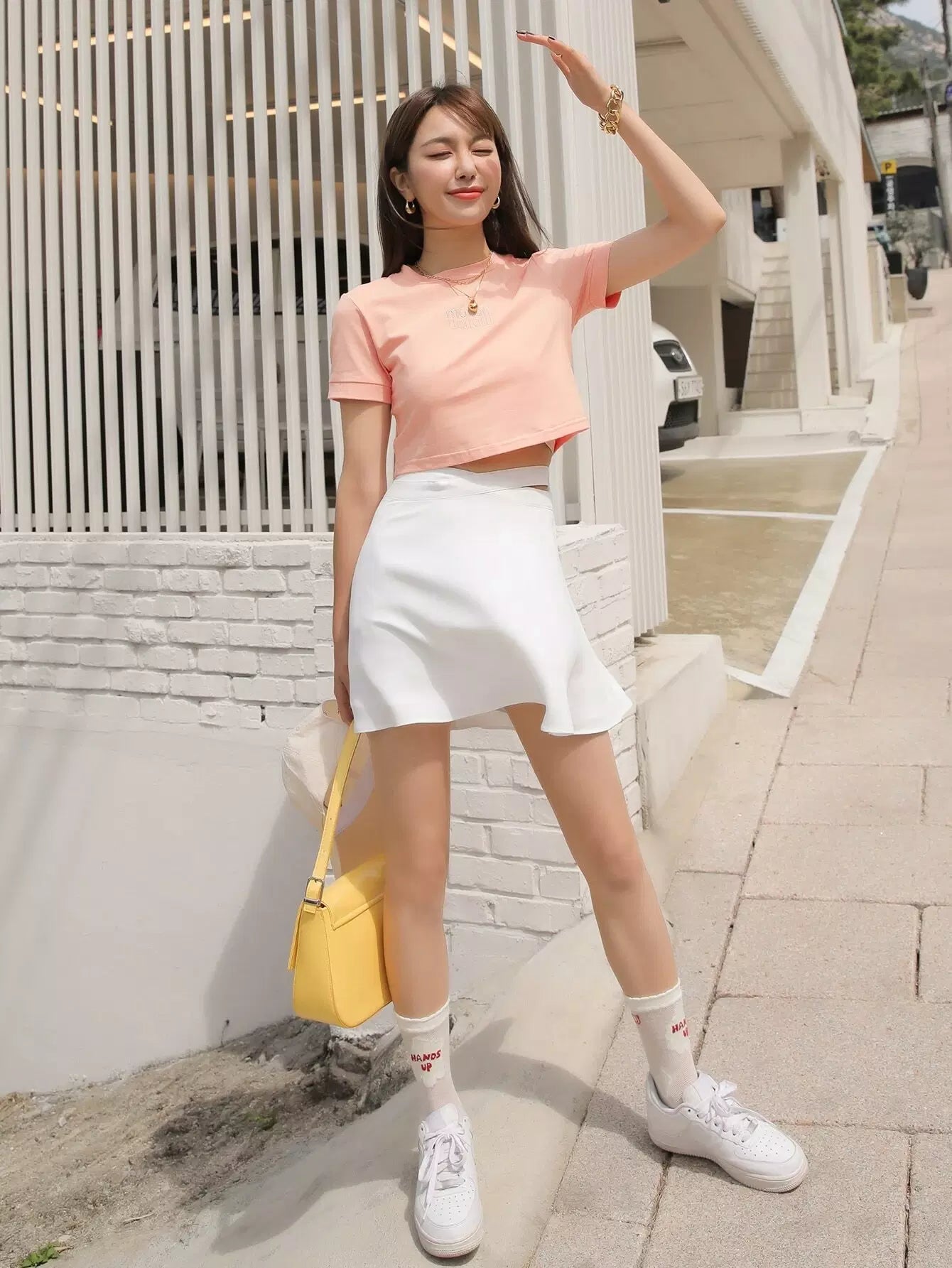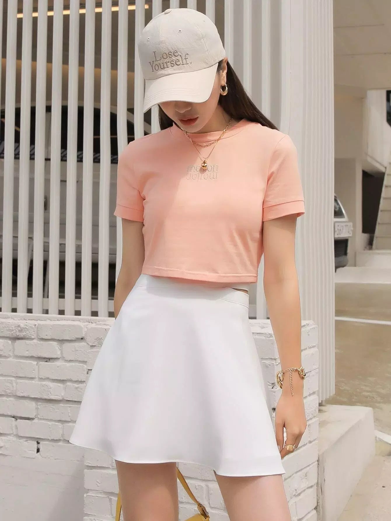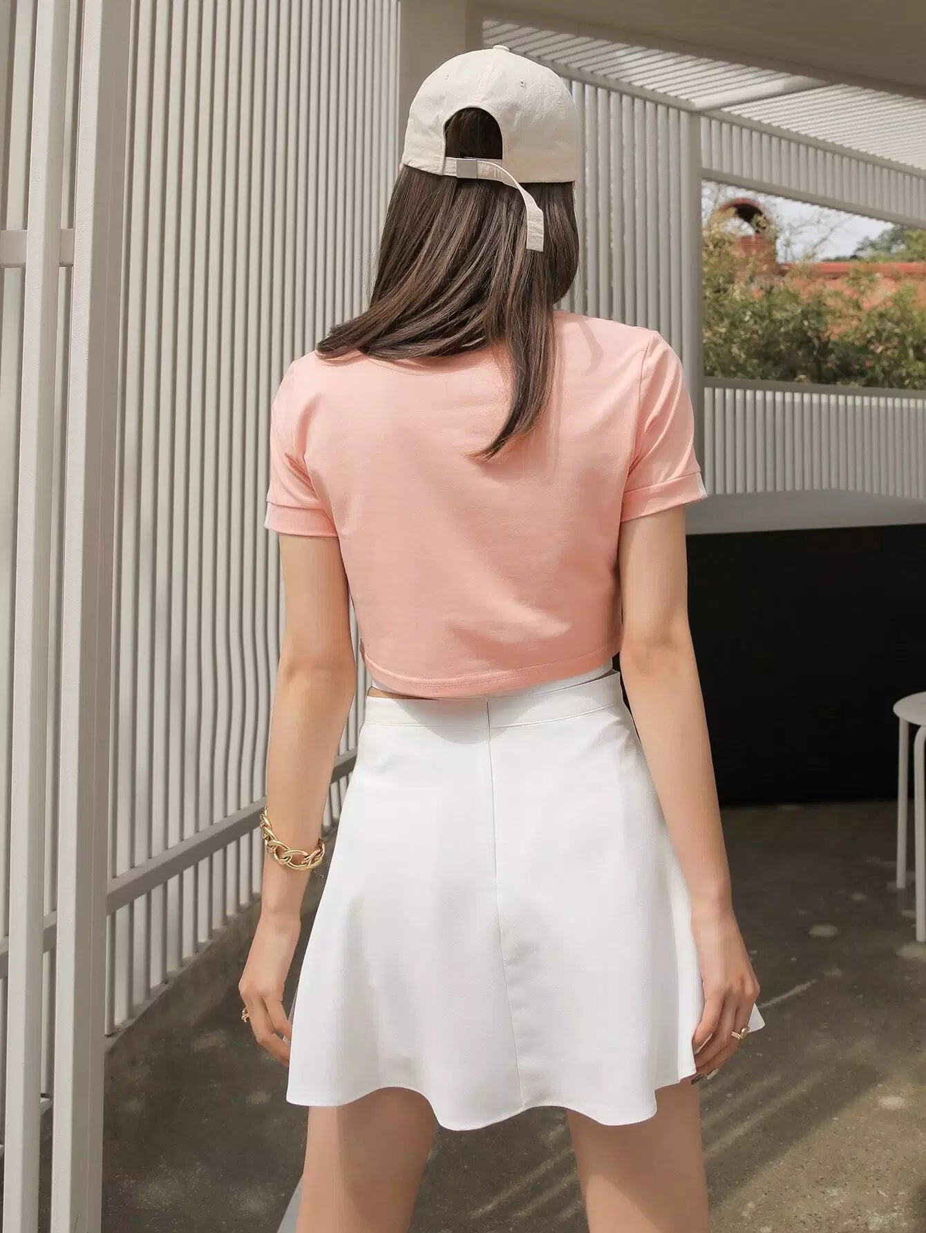 تي شيرت قصير مطرز بحروف على شكل حرف