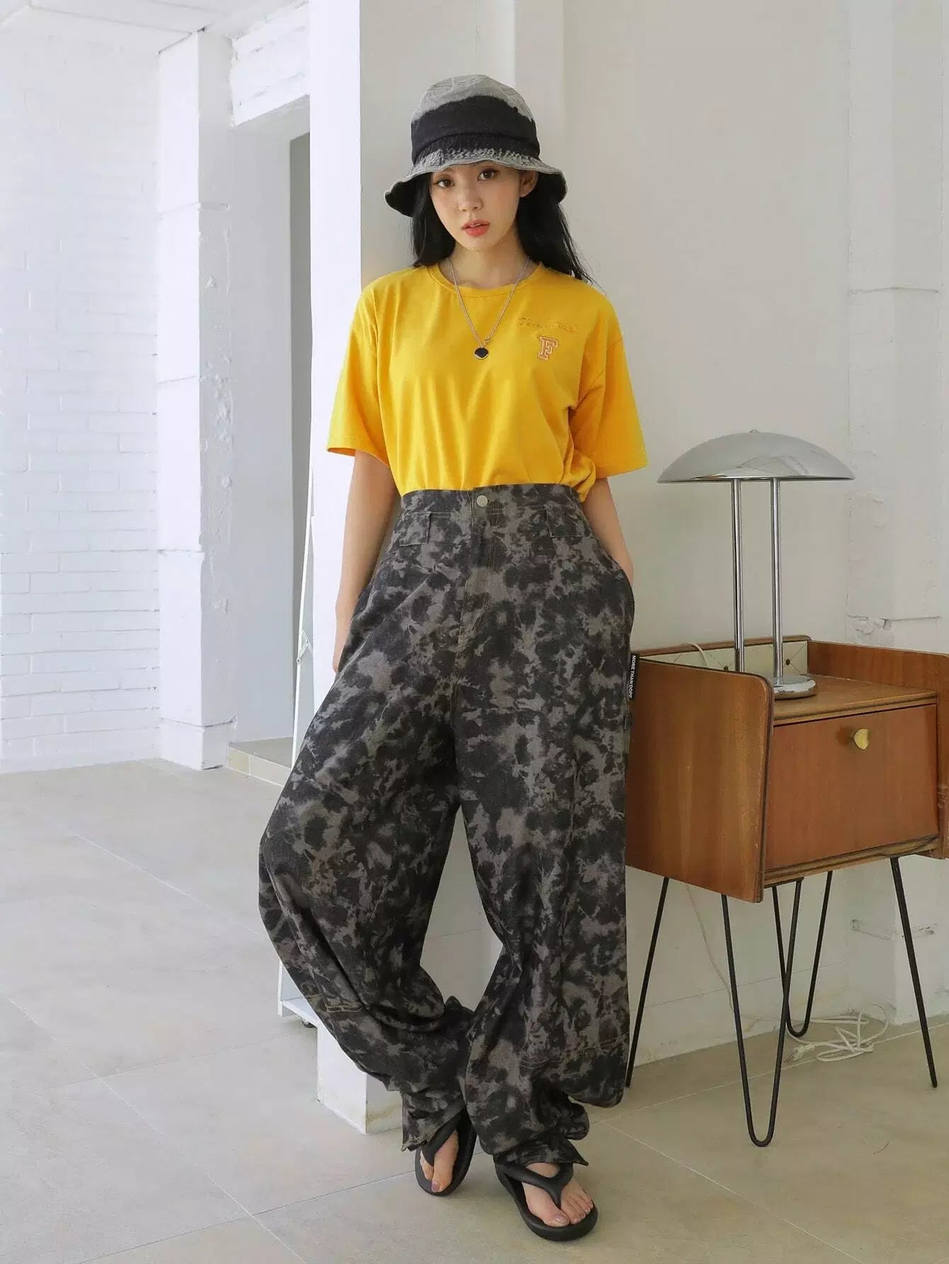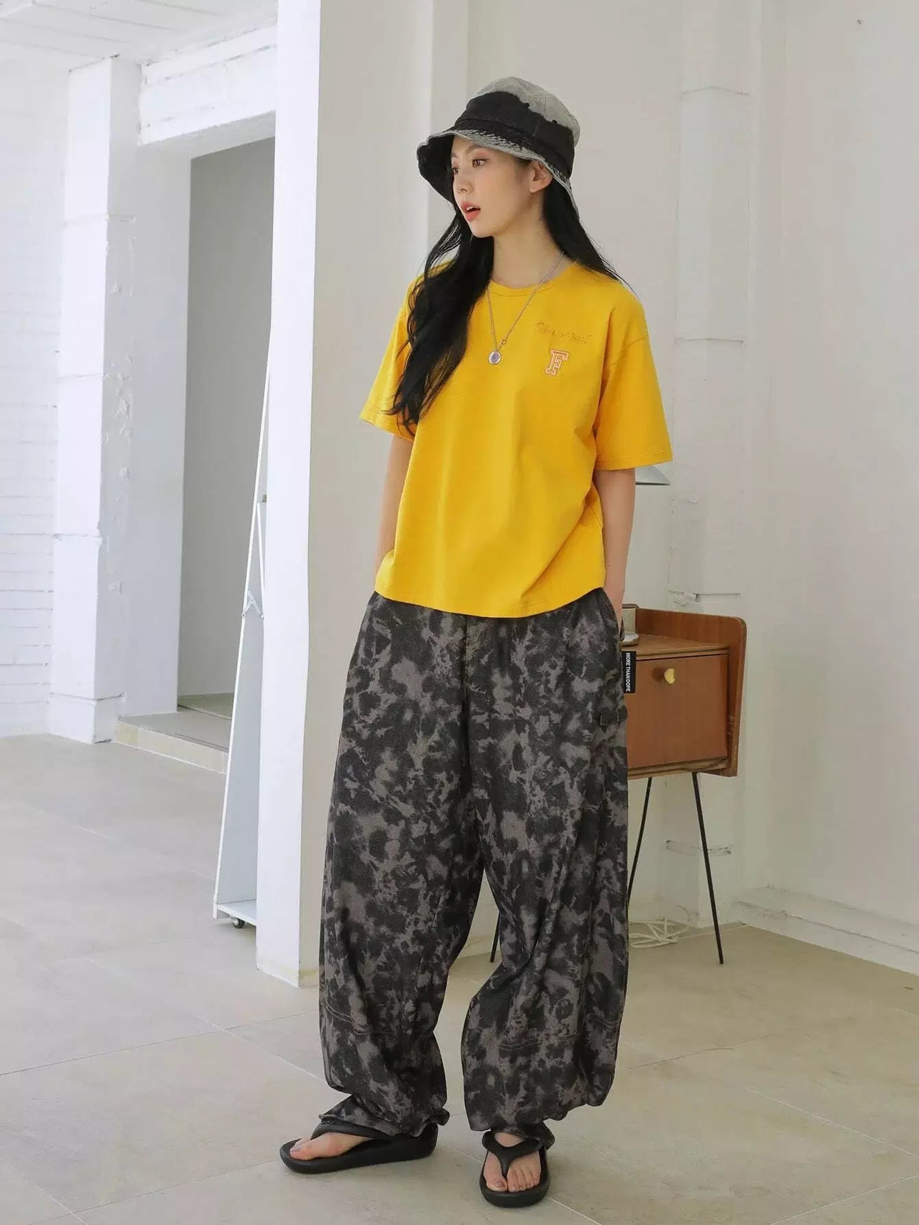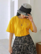 تي شيرت منقوش بأحرف على الكتف