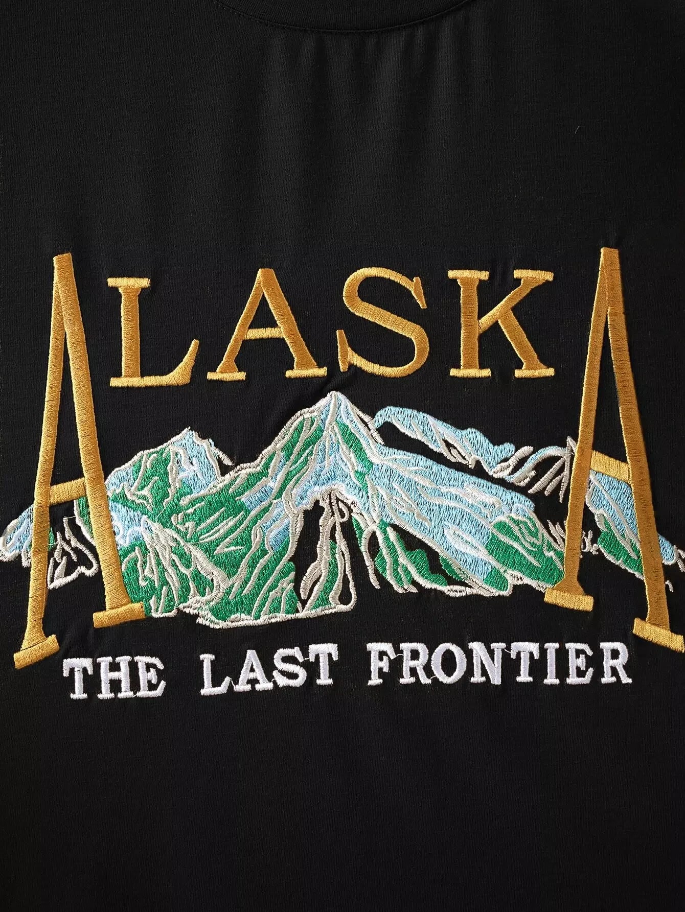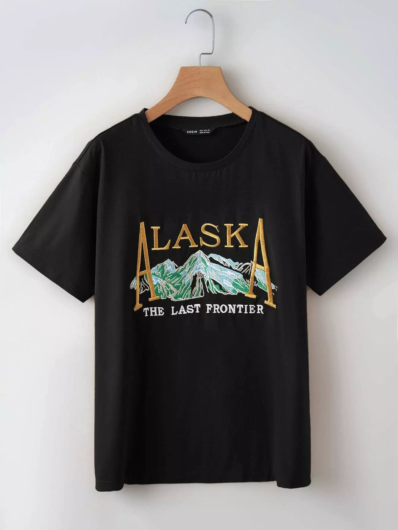 تي شيرت بأكمام قصيرة مطرزة بحروف