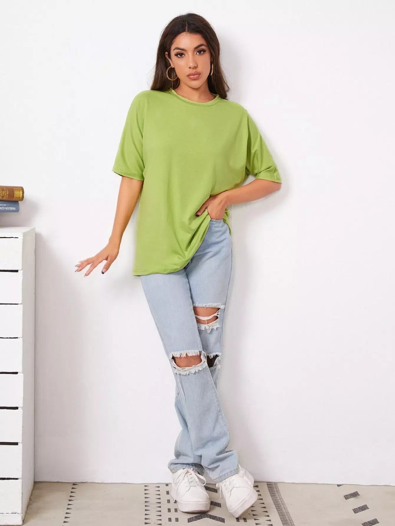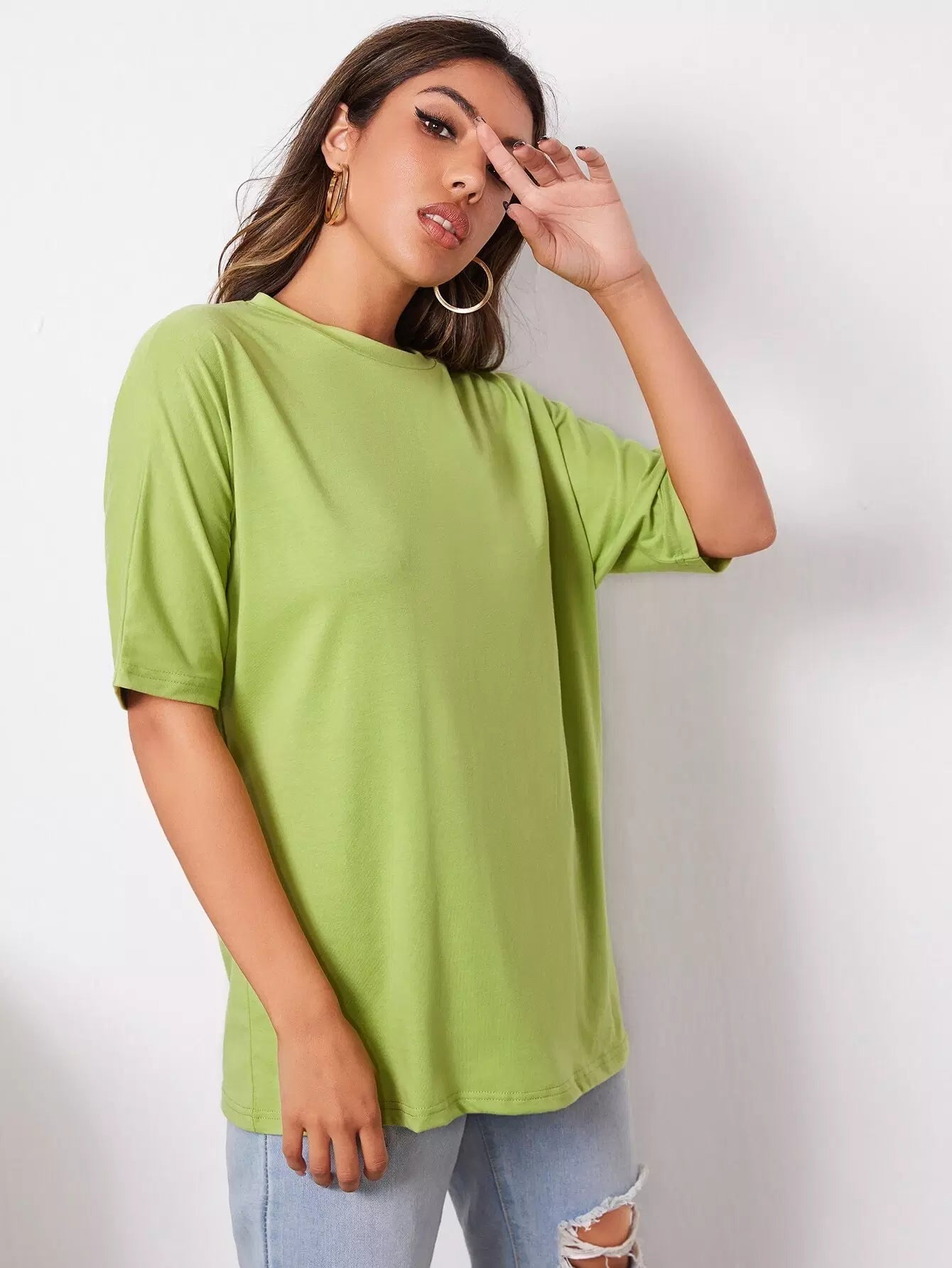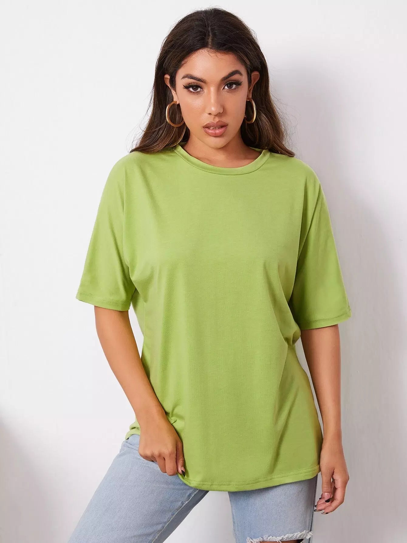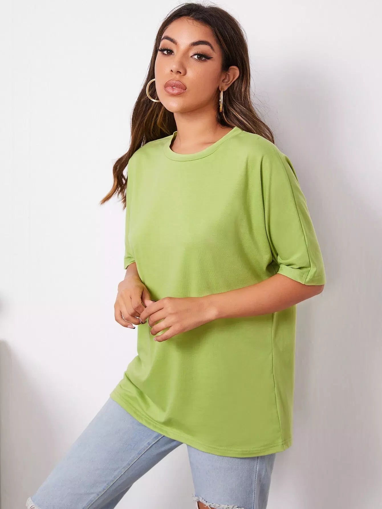 للنساء - تي شيرت بأكمام جناح الخفاش ورسومات الحروف