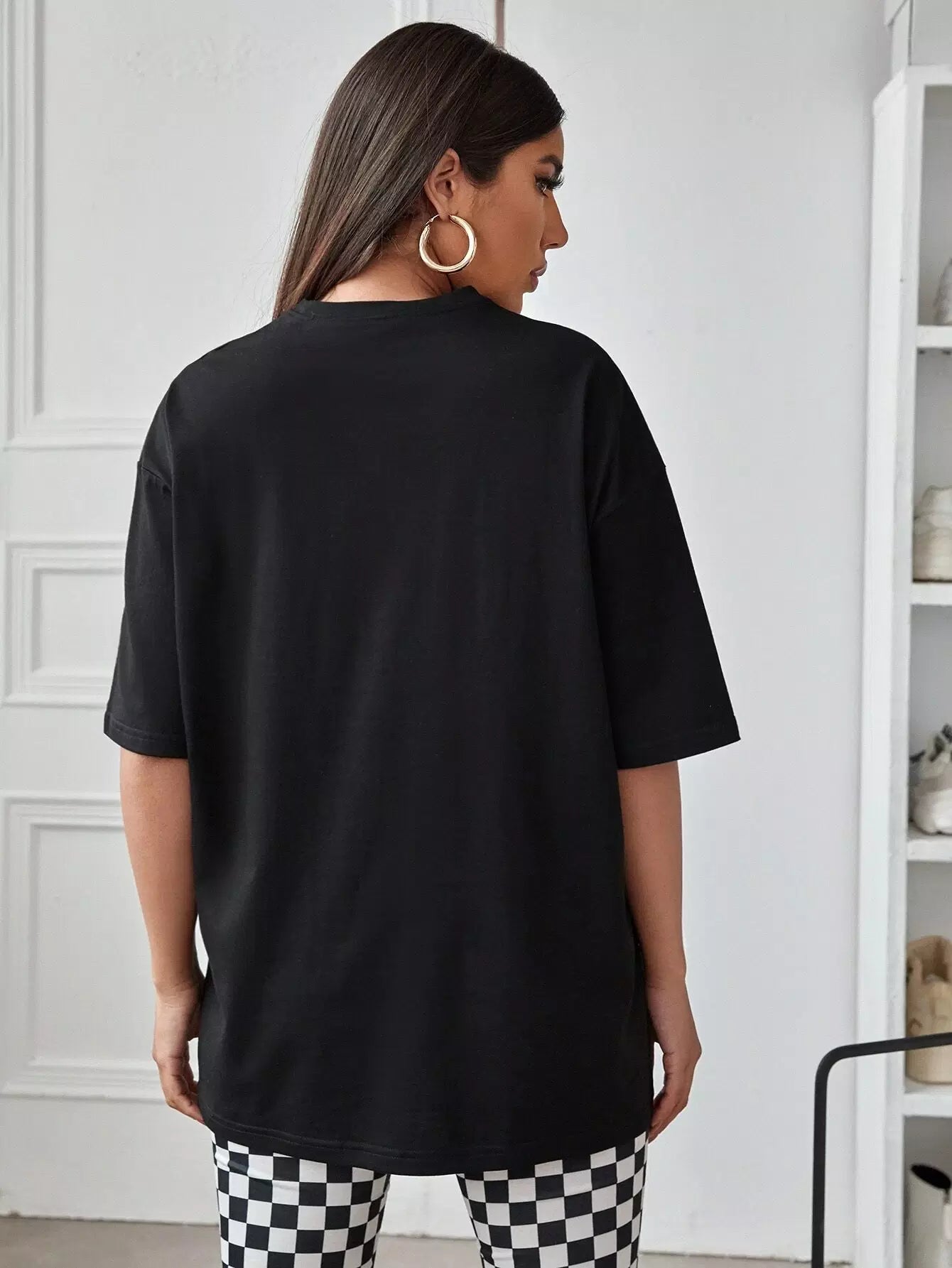 تي شيرت كبير الحجم برسومات أحرف وكتف منسدلة