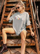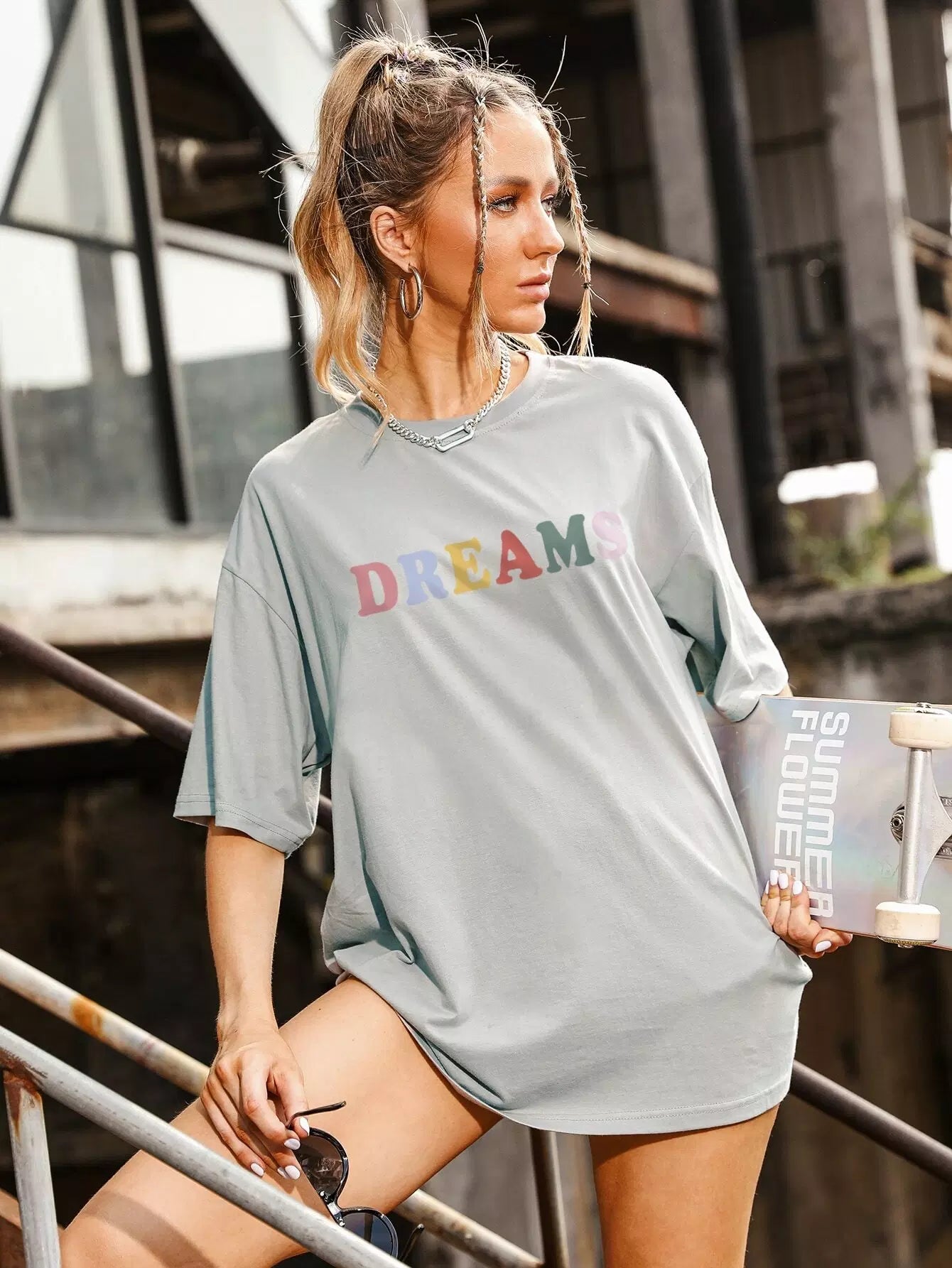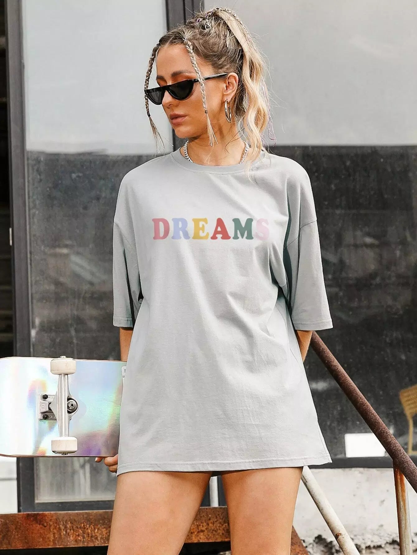 تي شيرت بتصميم منسدل الكتف برسمة حرف منسدل
