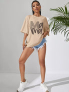تي شيرت بتصميم منسدل الكتف برسمة حرف منسدل