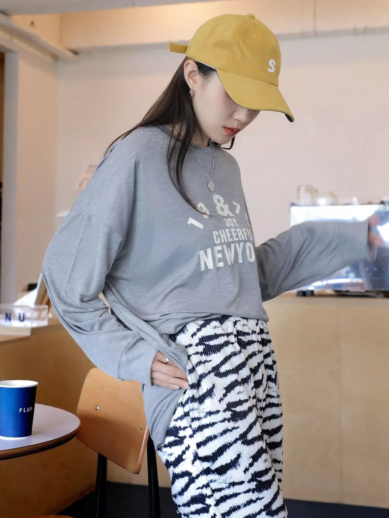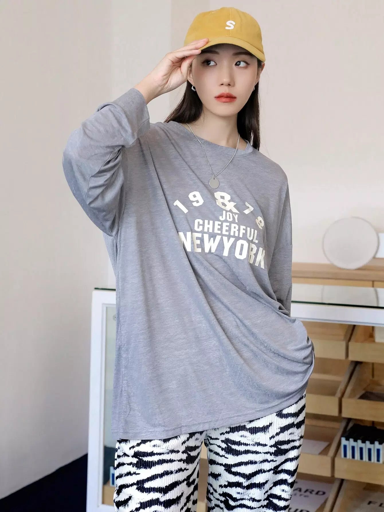 تي شيرت بكتف منسدل برسومات الحروف