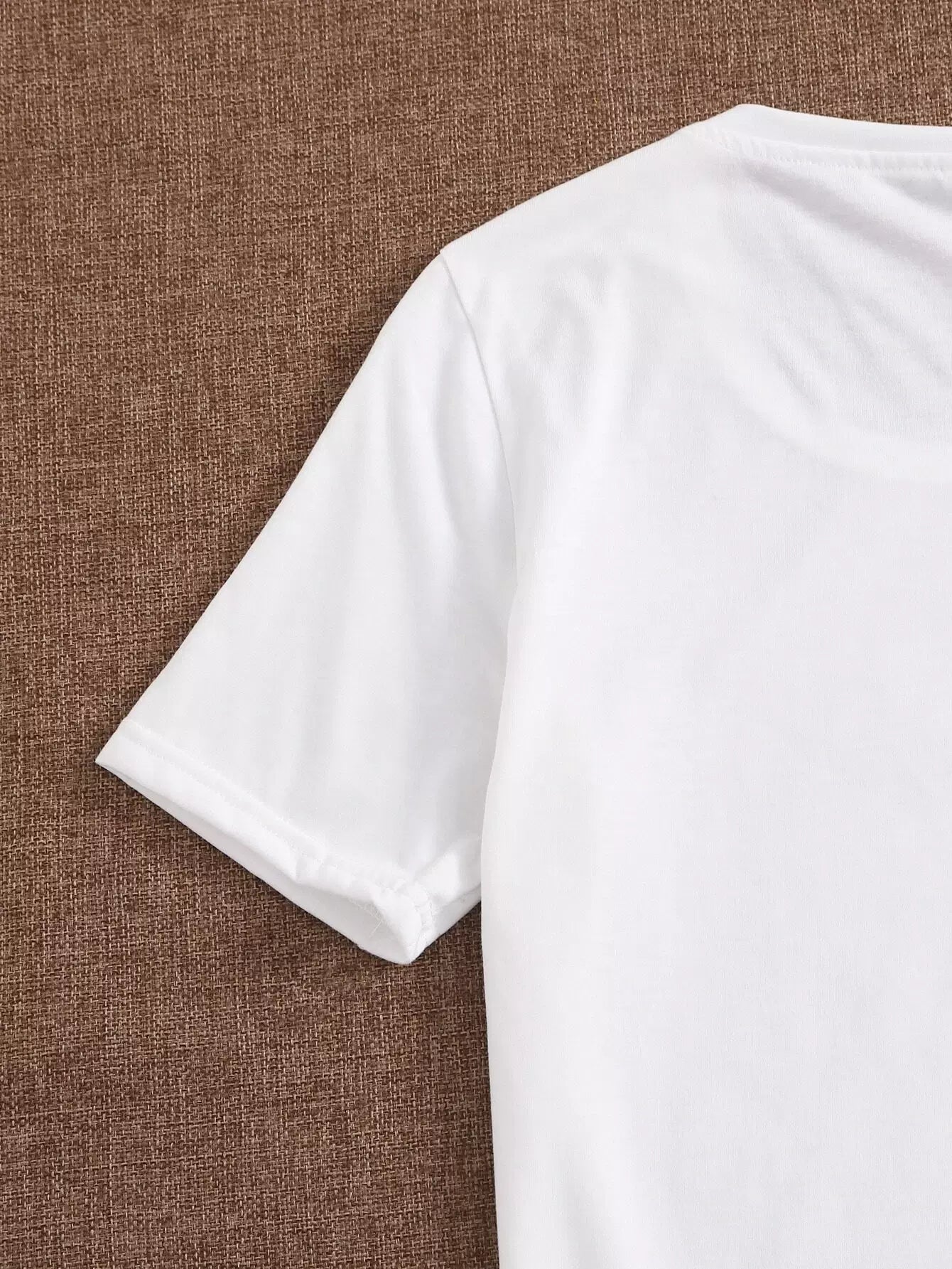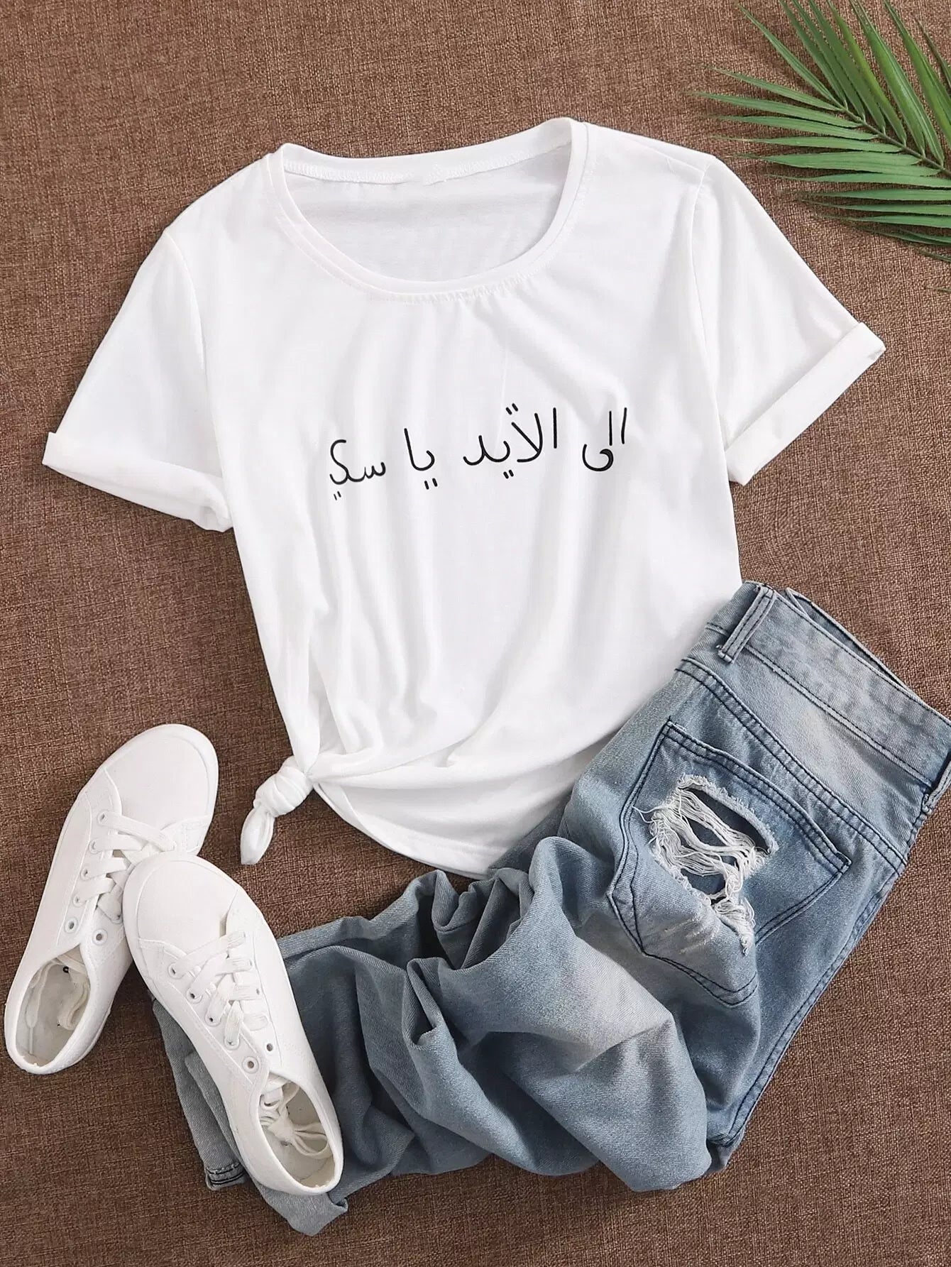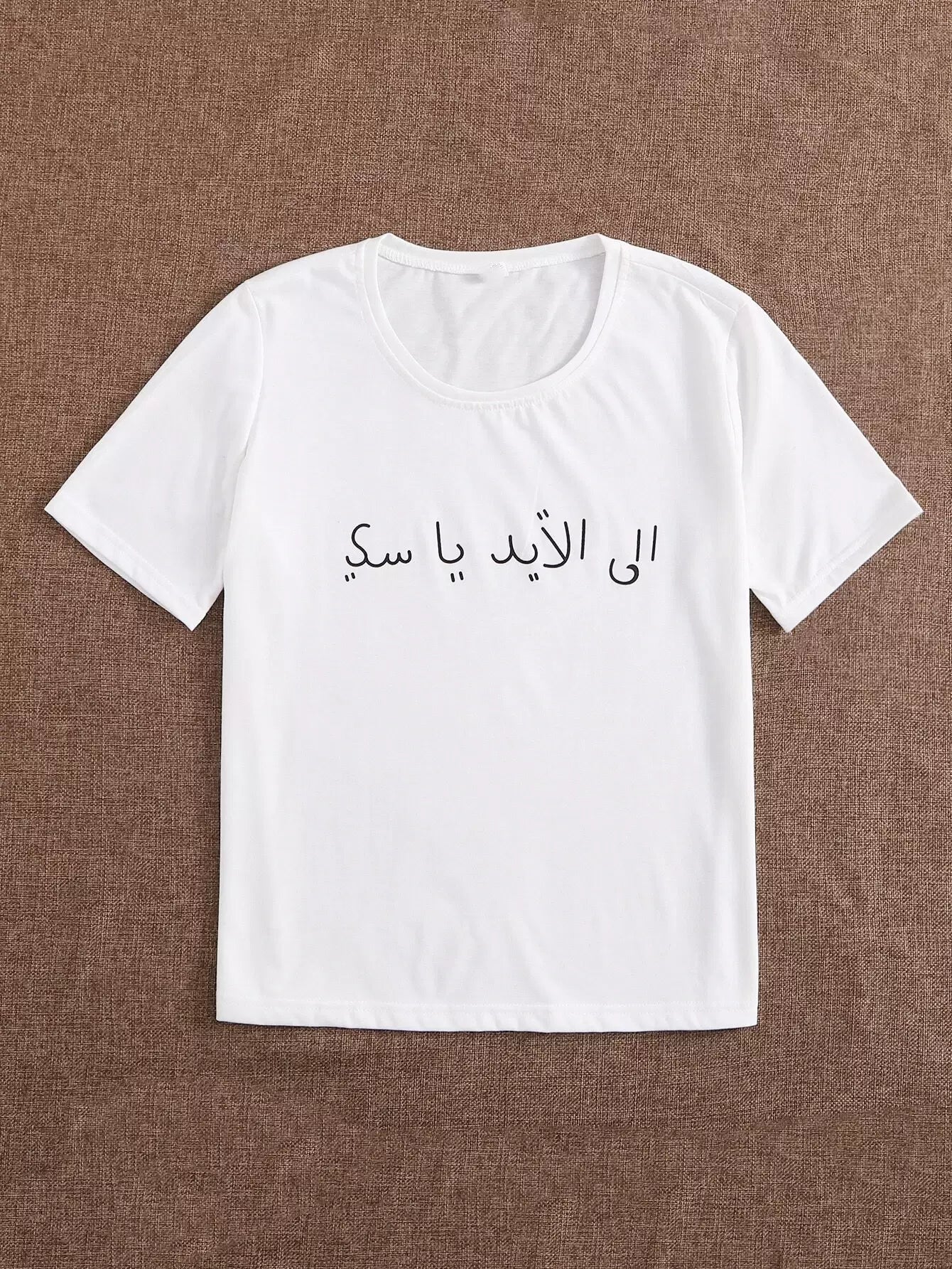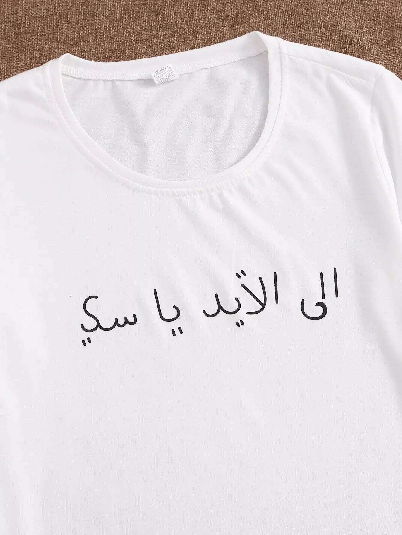 تي شيرت برقبة دائرية مزين بحروف جرافيكية