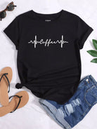 تي شيرت قصير الأكمام برسومات حروف قصيرة الأكمام