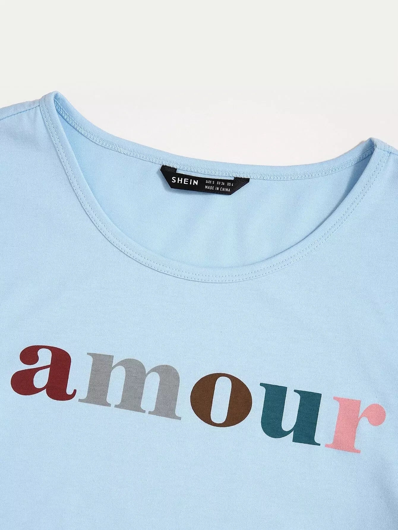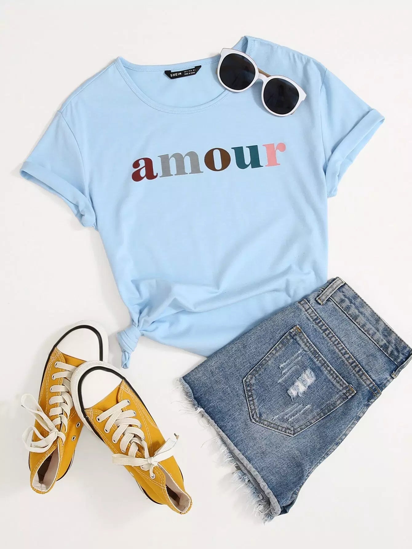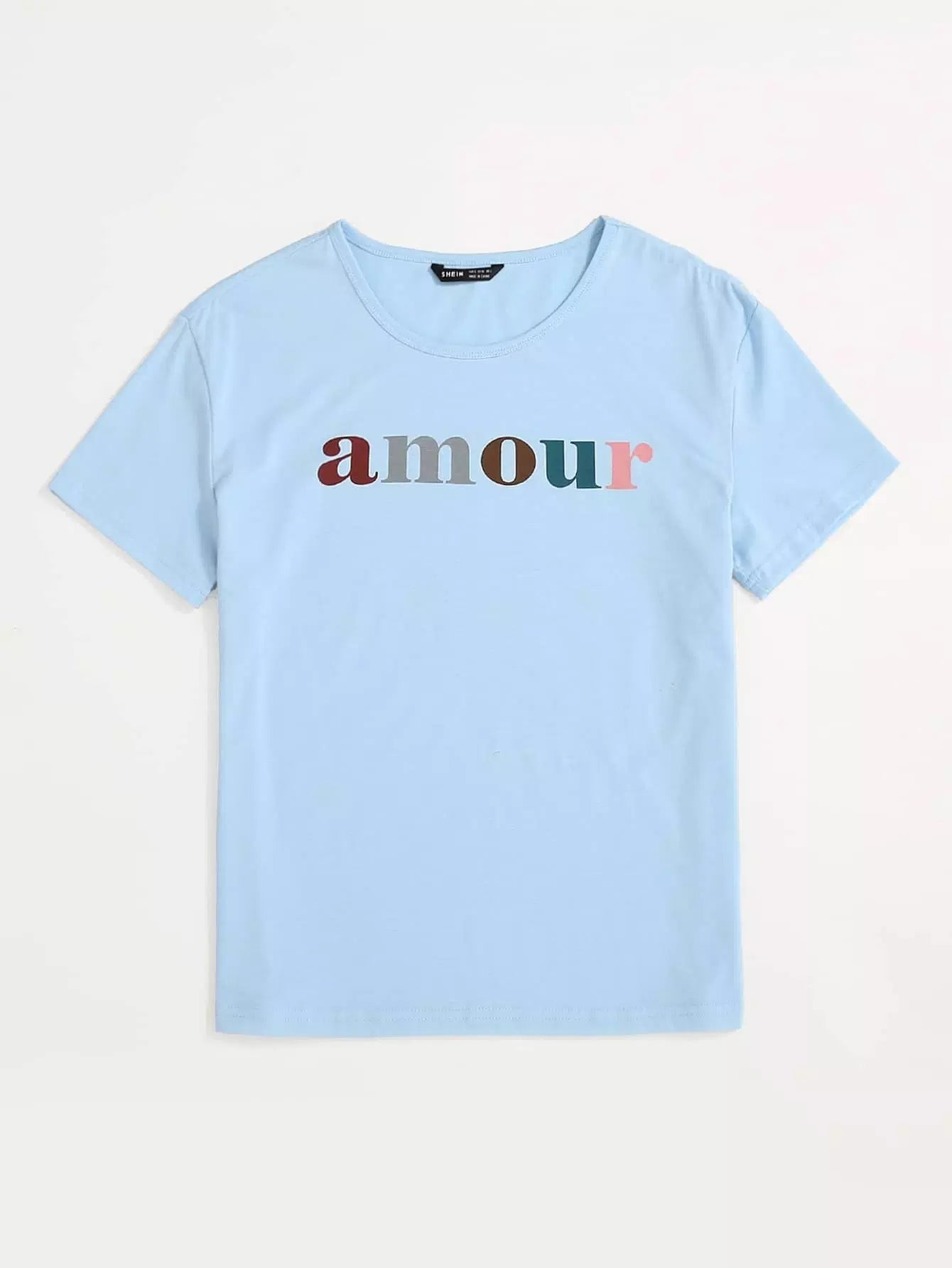 تي شيرت بأكمام قصيرة برسومات حرفية