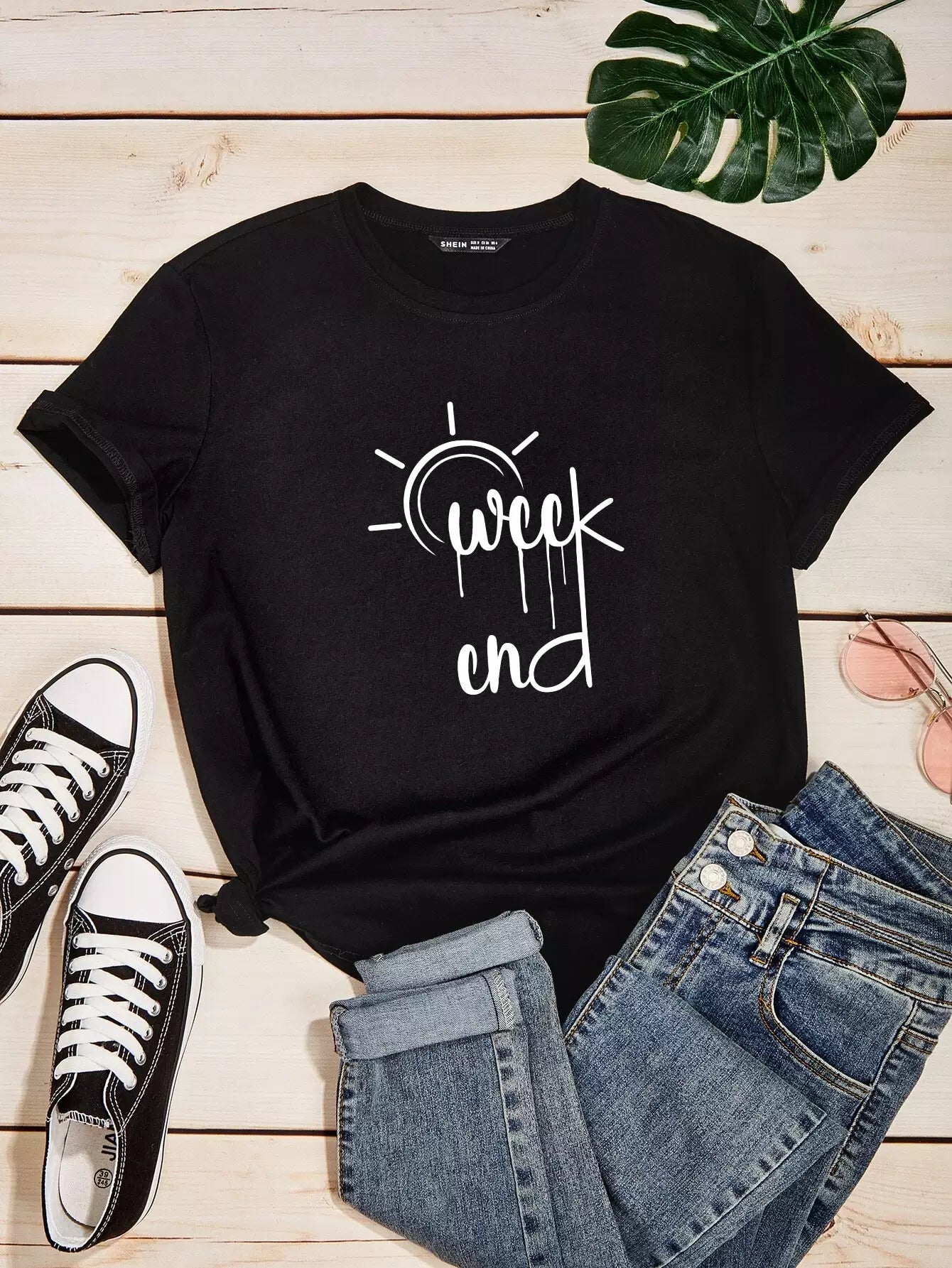 تي شيرت بأكمام قصيرة برسومات حرفية