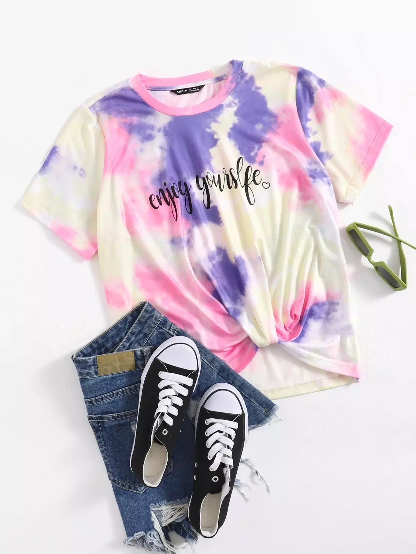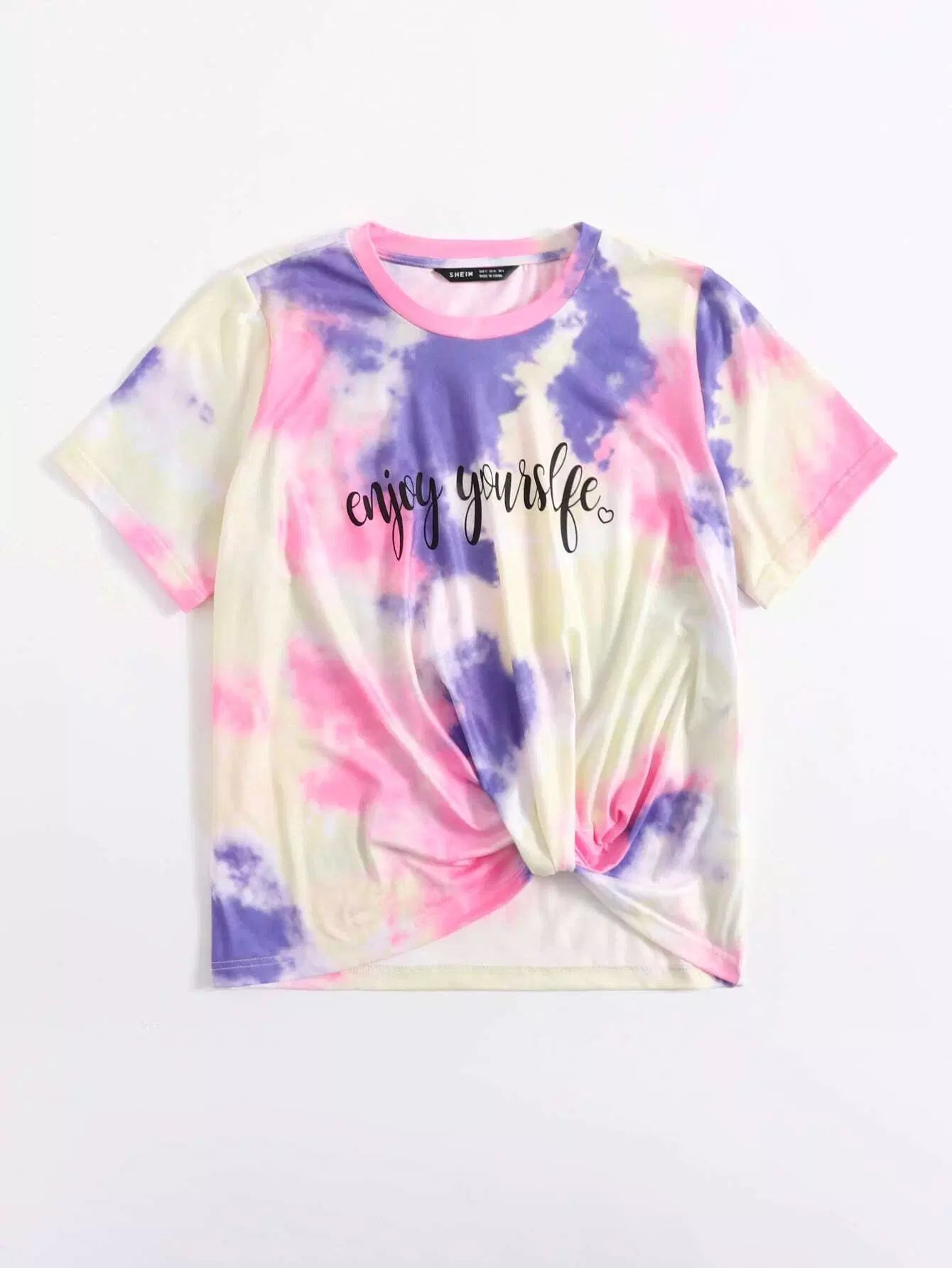 تي شيرت بحاشية تويست تويست صبغ بالرسومات على شكل حرف