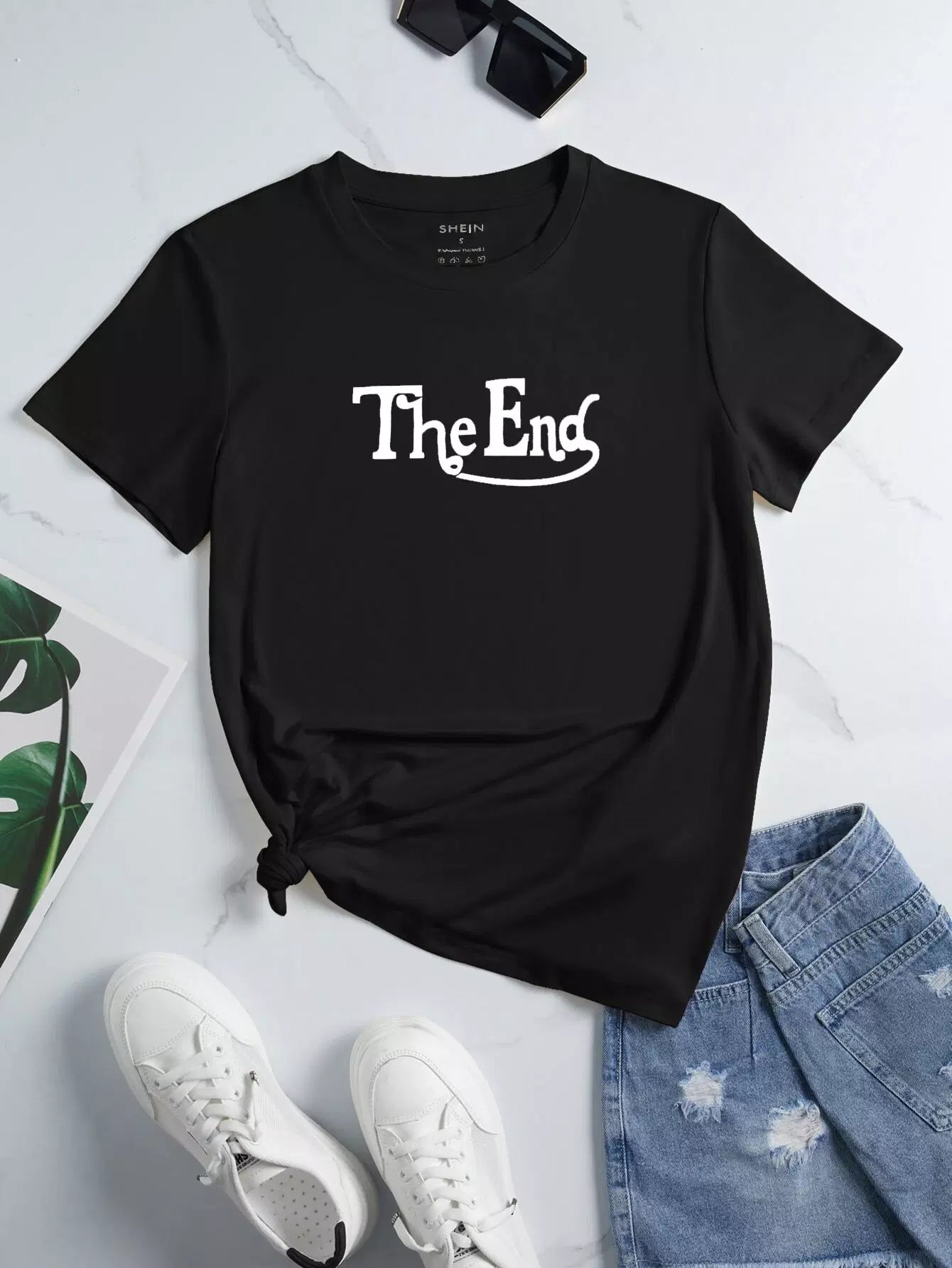 تي شيرت برقبة مستديرة مطبوع عليه رسالة