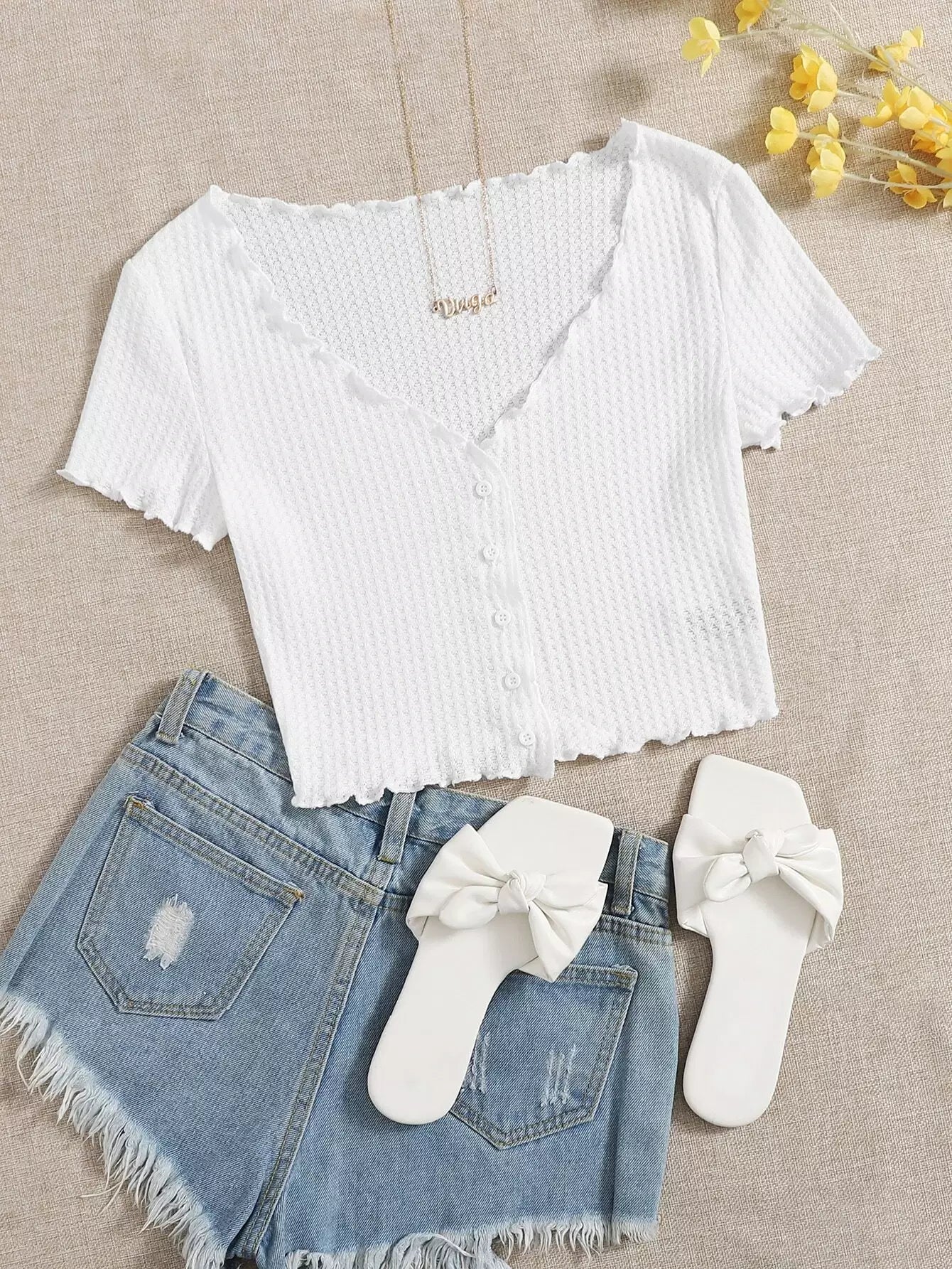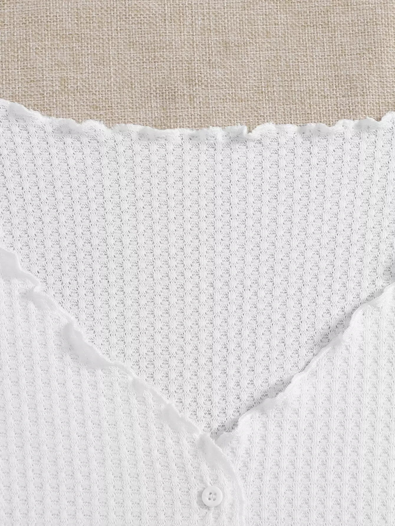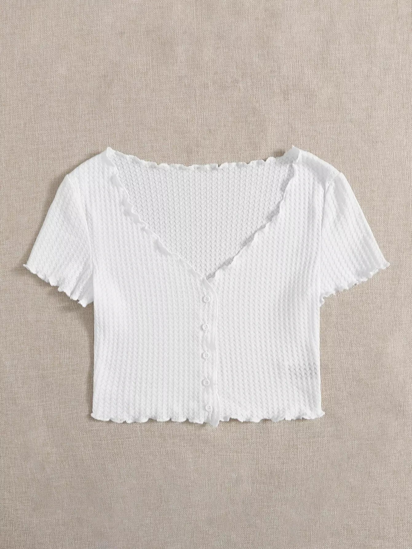 تي شيرت بأزرار أمامية مزينة بالخس