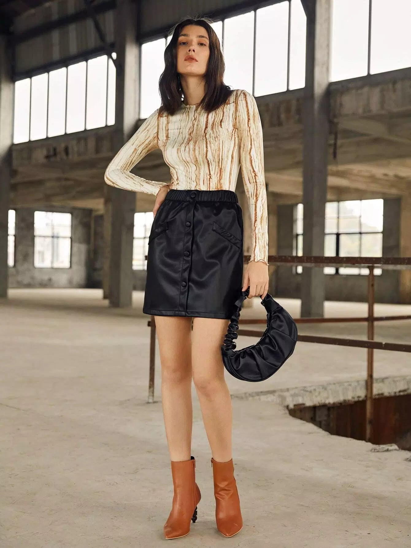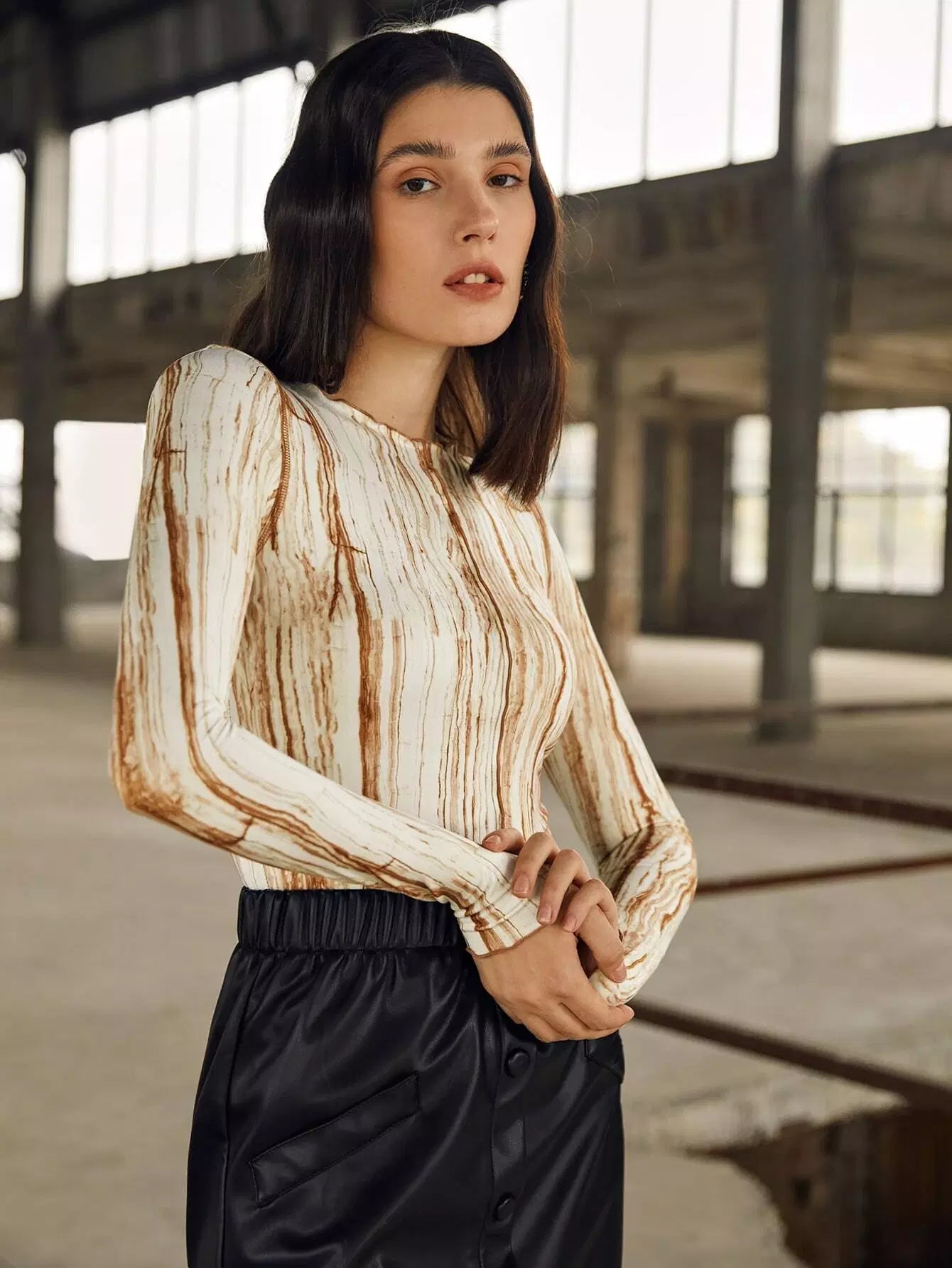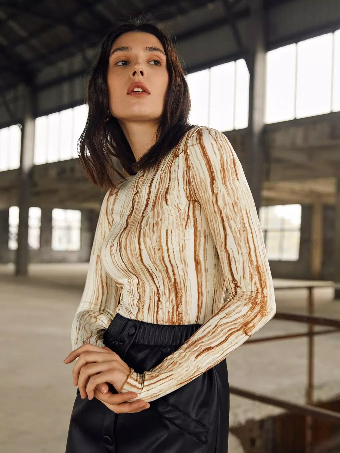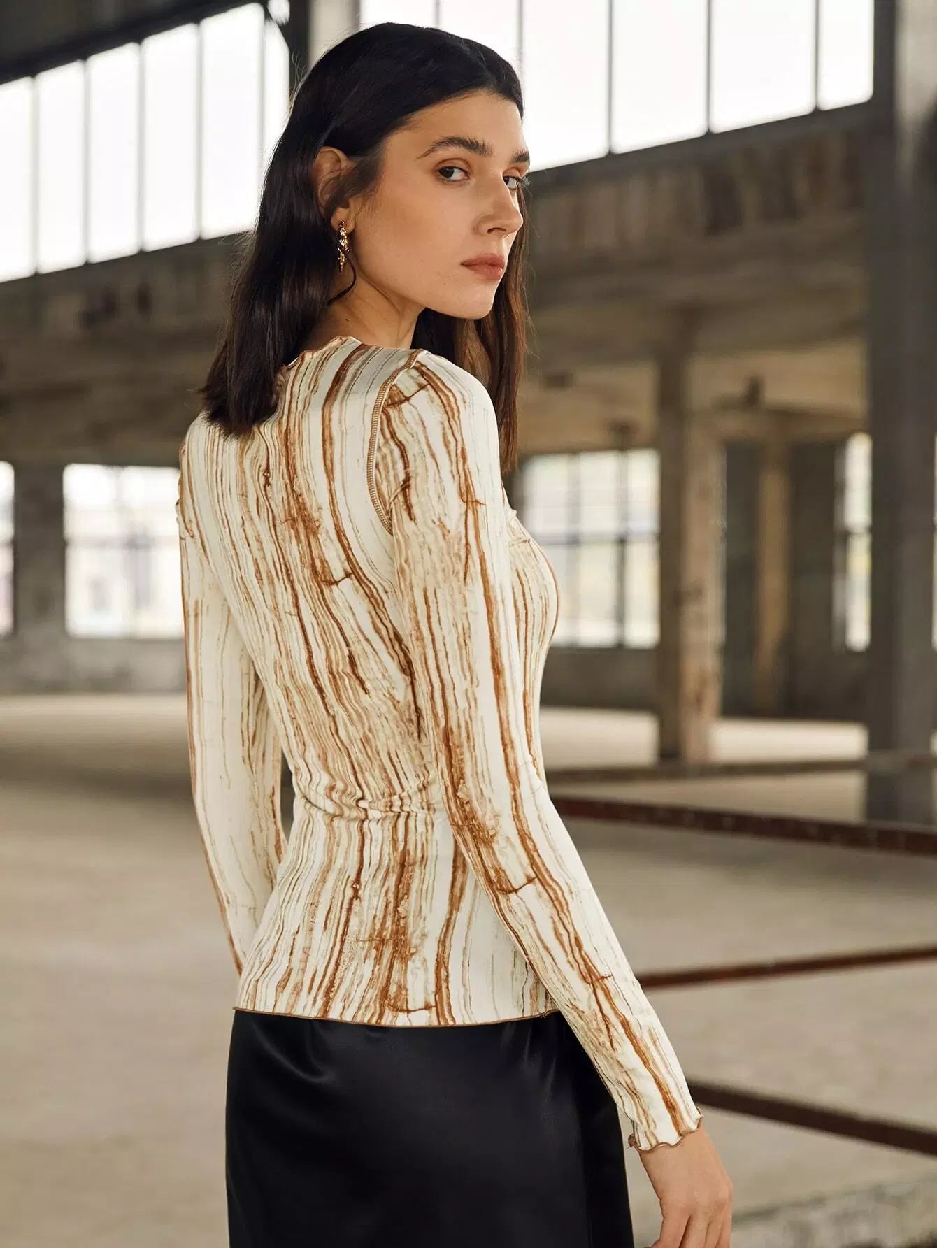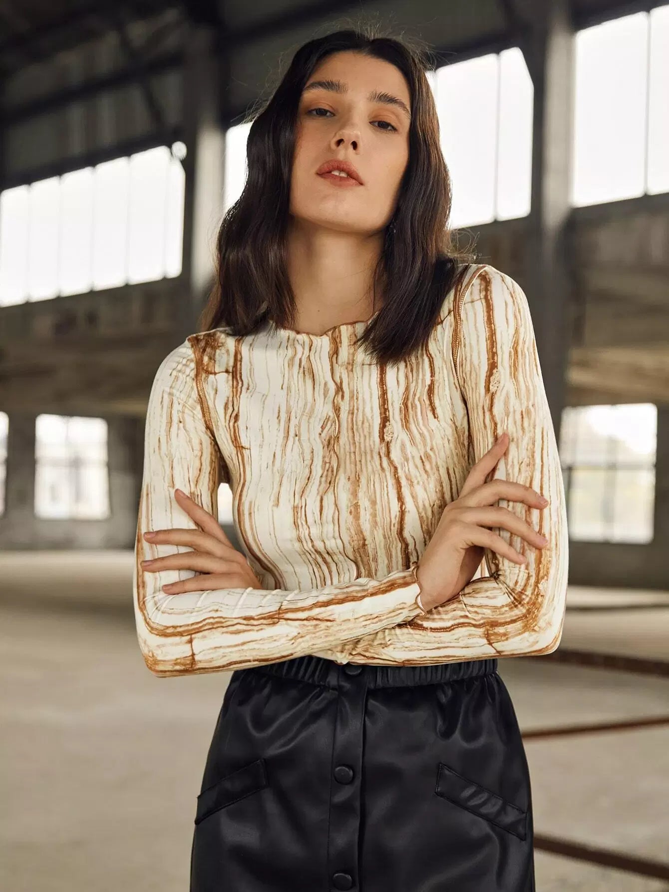 بلوزة بطبعة رخامية مع حواف من الخس