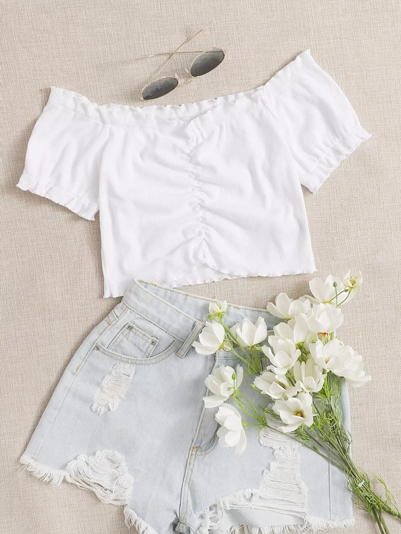 توب باردوت بحواف من الأمام مكشكشة من الخس
