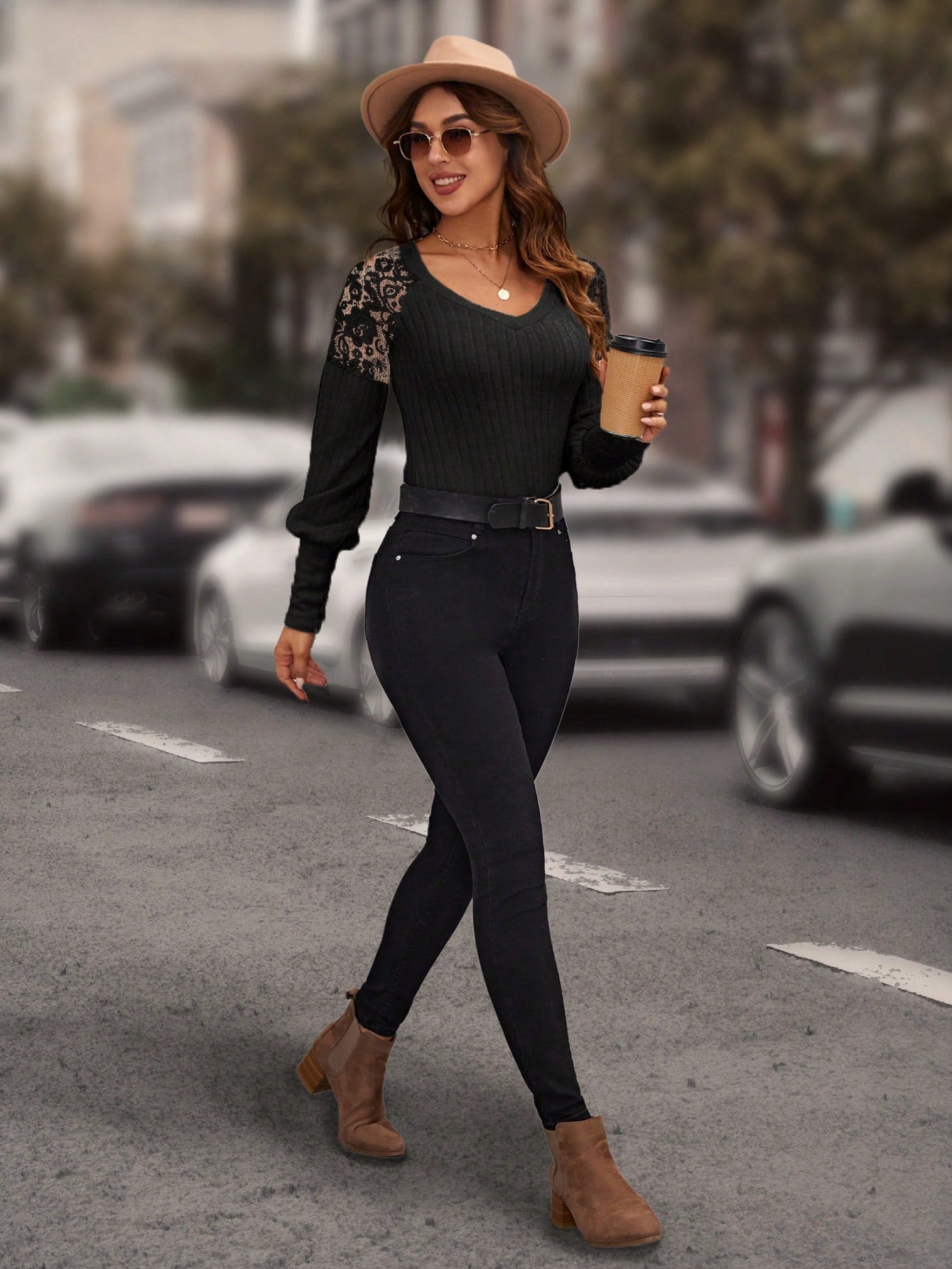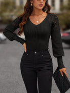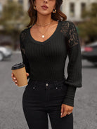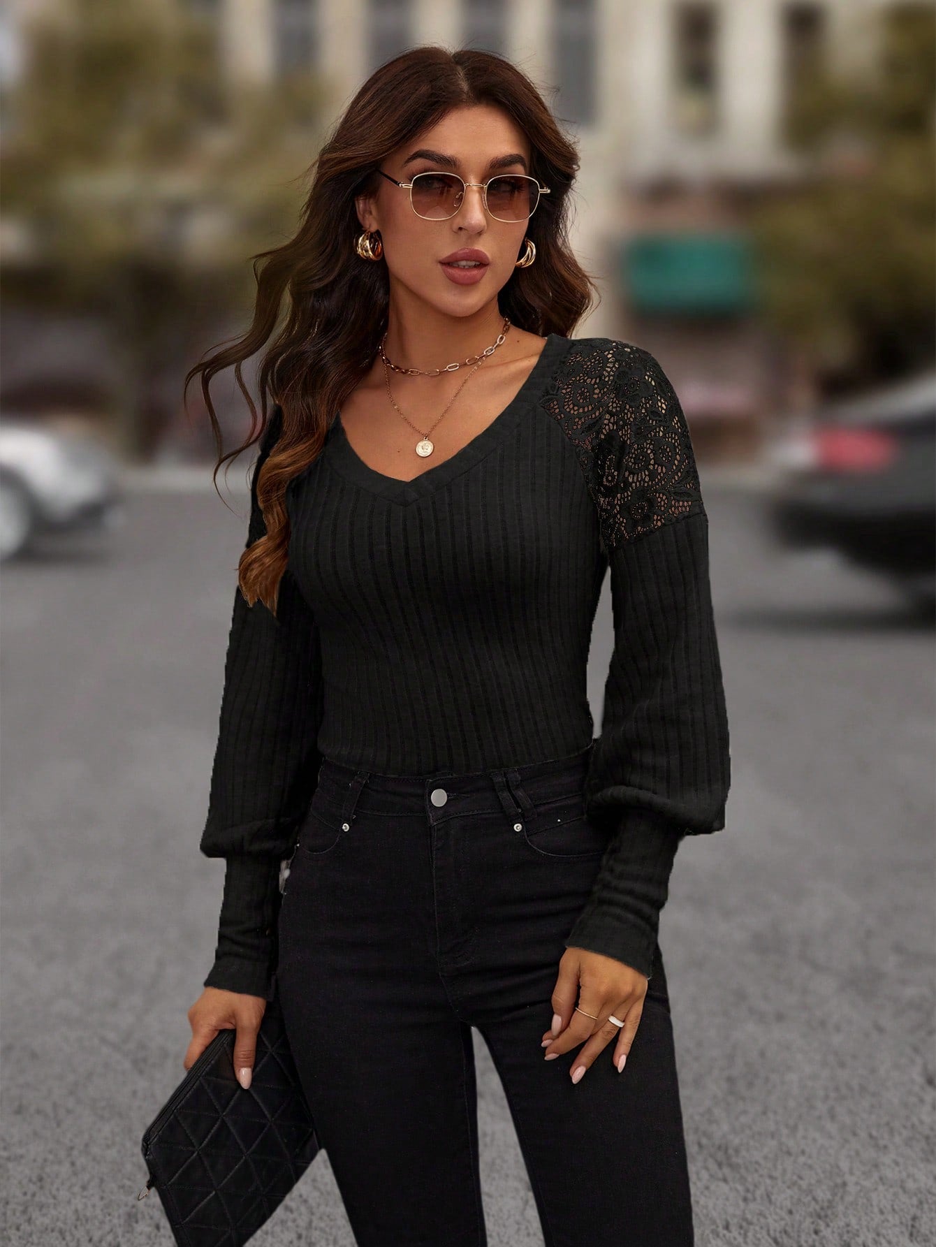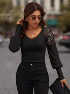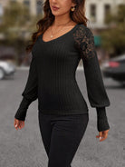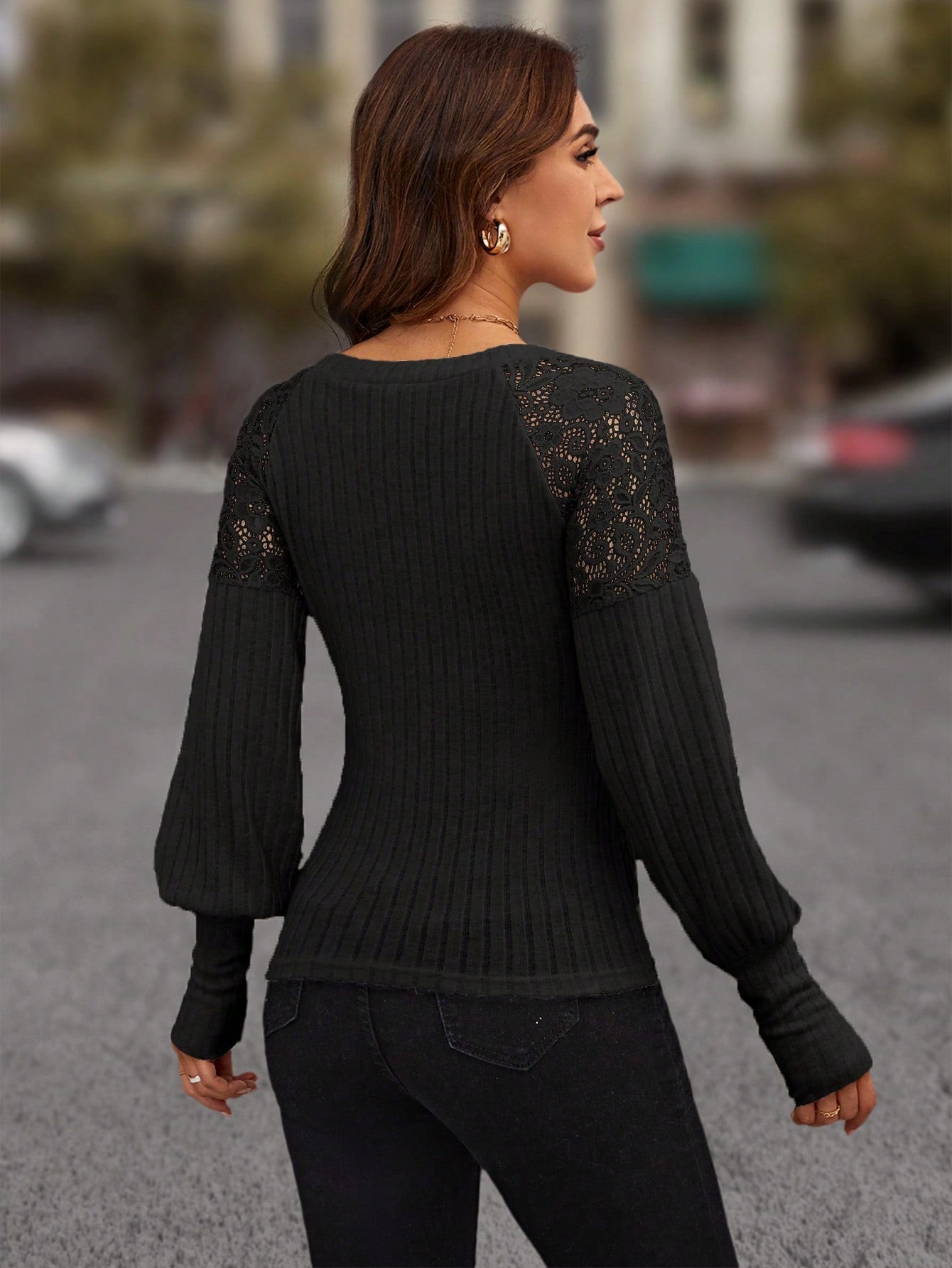 تي شيرت LUNE بأكمام فانوس من الدانتيل المتباين