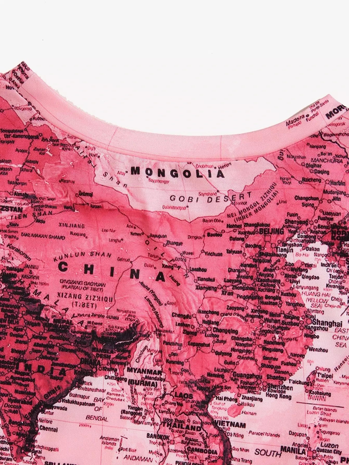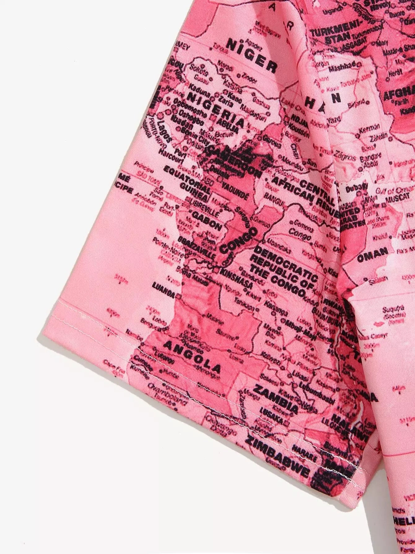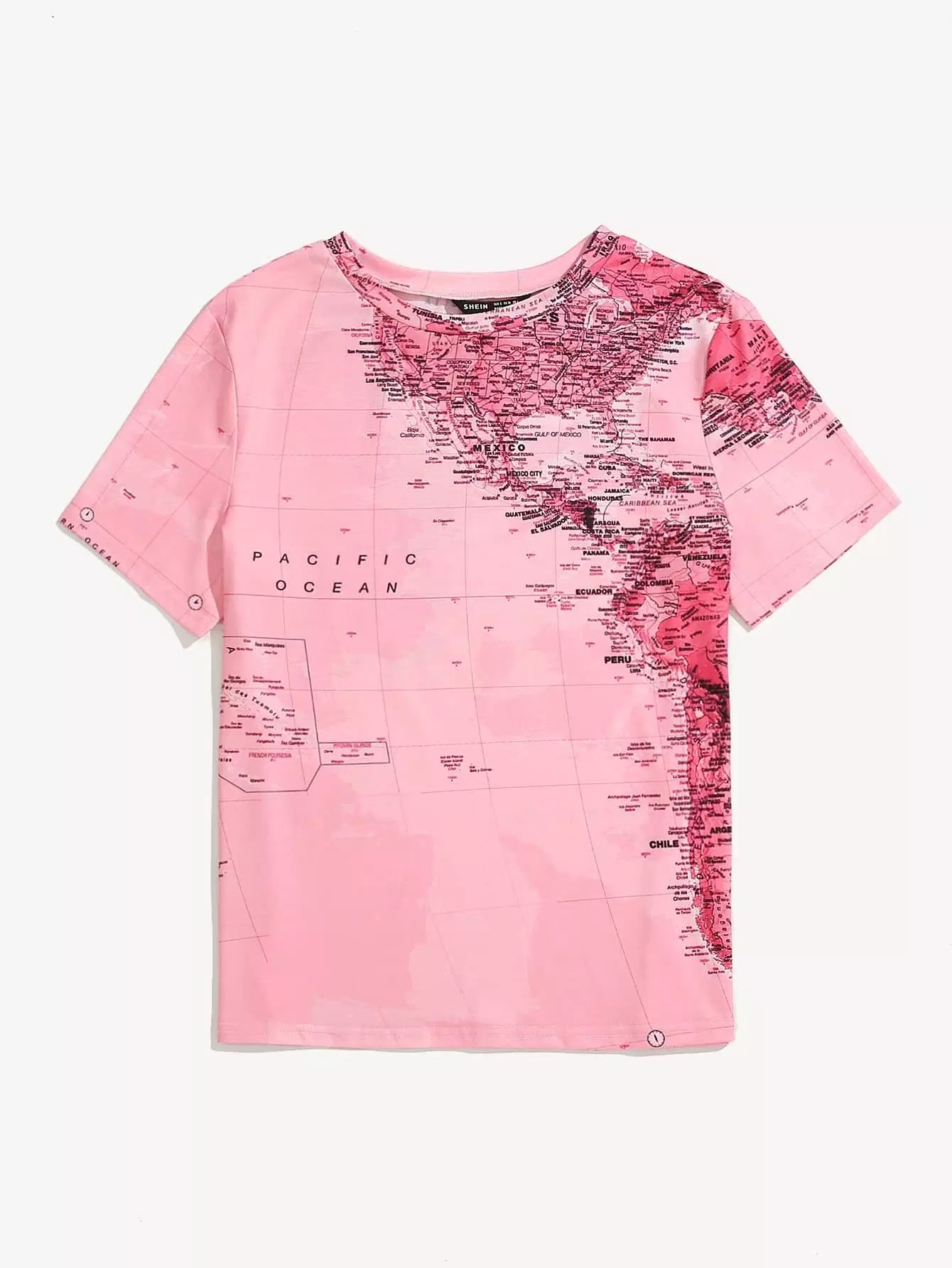 تي شيرت بأكمام قصيرة مطبوع عليه خريطة
