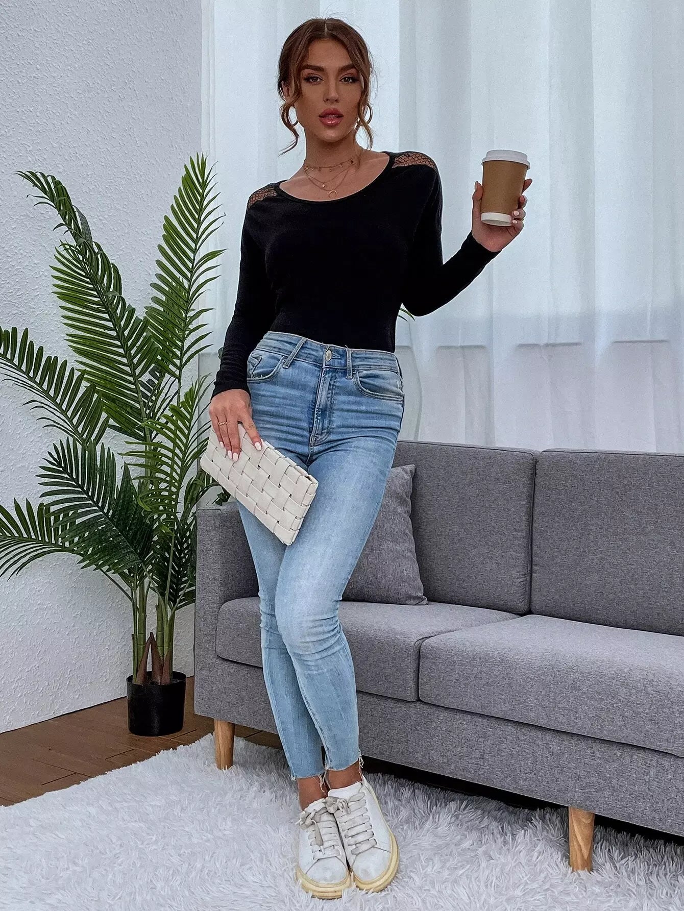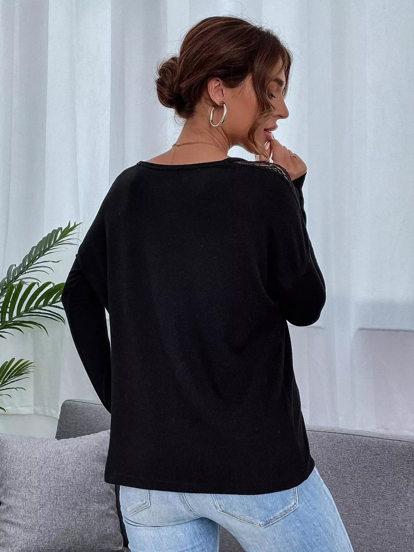 قميص تي شيرت سادة بجزء شبكي